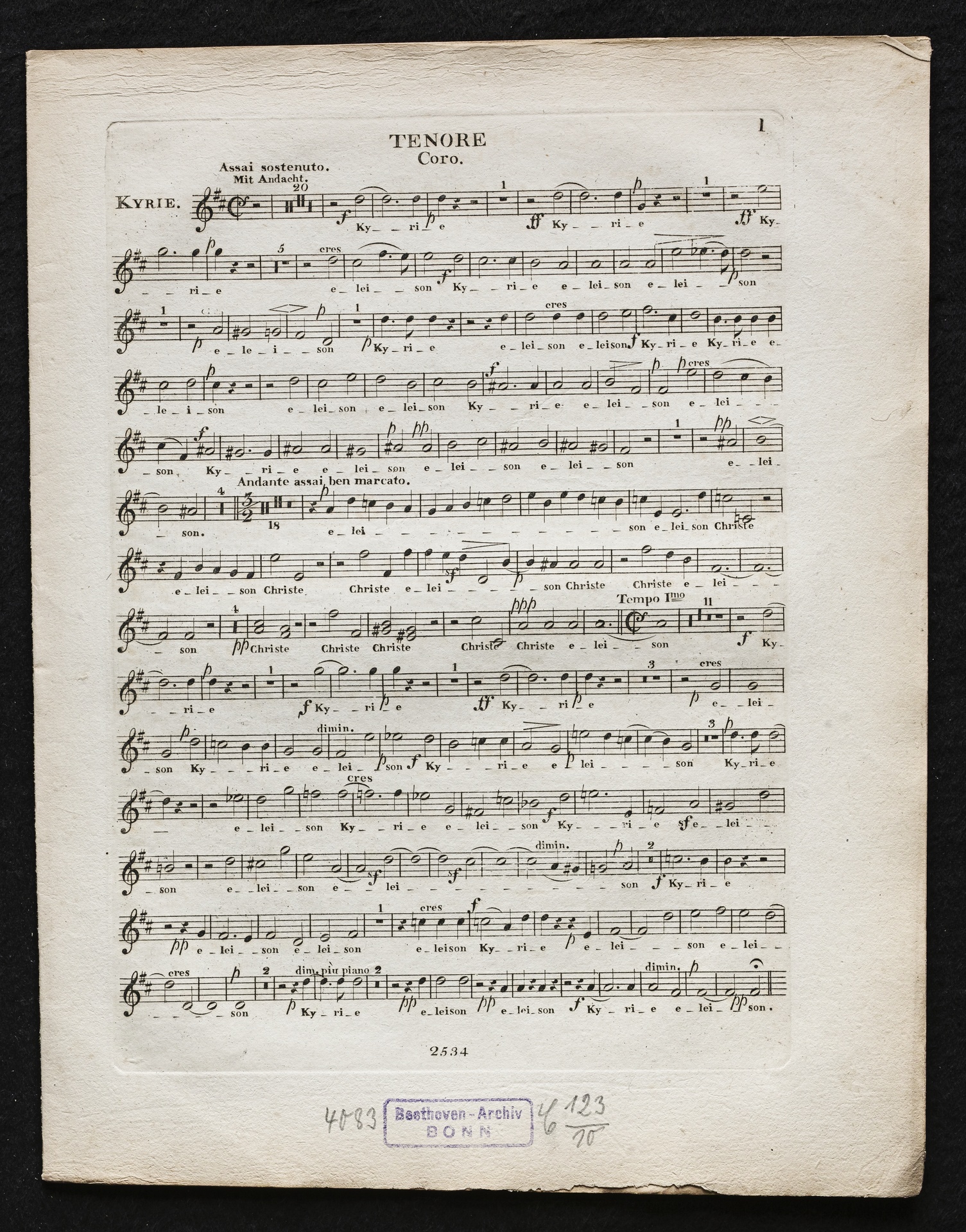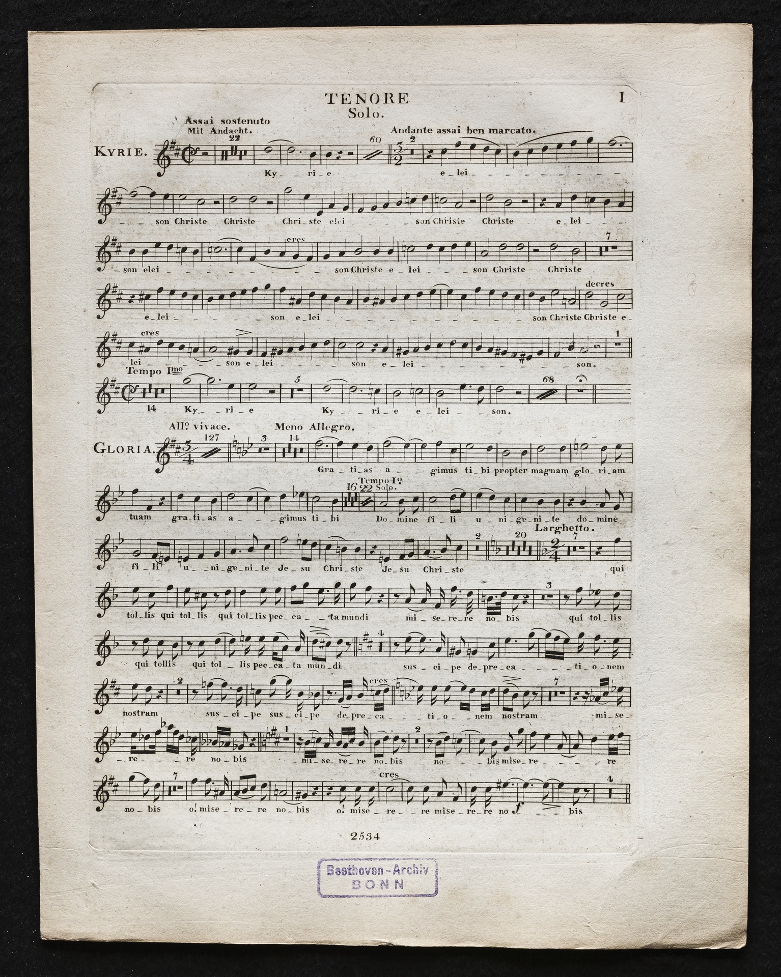 Ludwig van Beethoven, Messe für vier Solostimmen, Chor, Orchester und Orgel (D-Dur) op. 123 (Missa solemnis), Stimmen, Schott, 2534