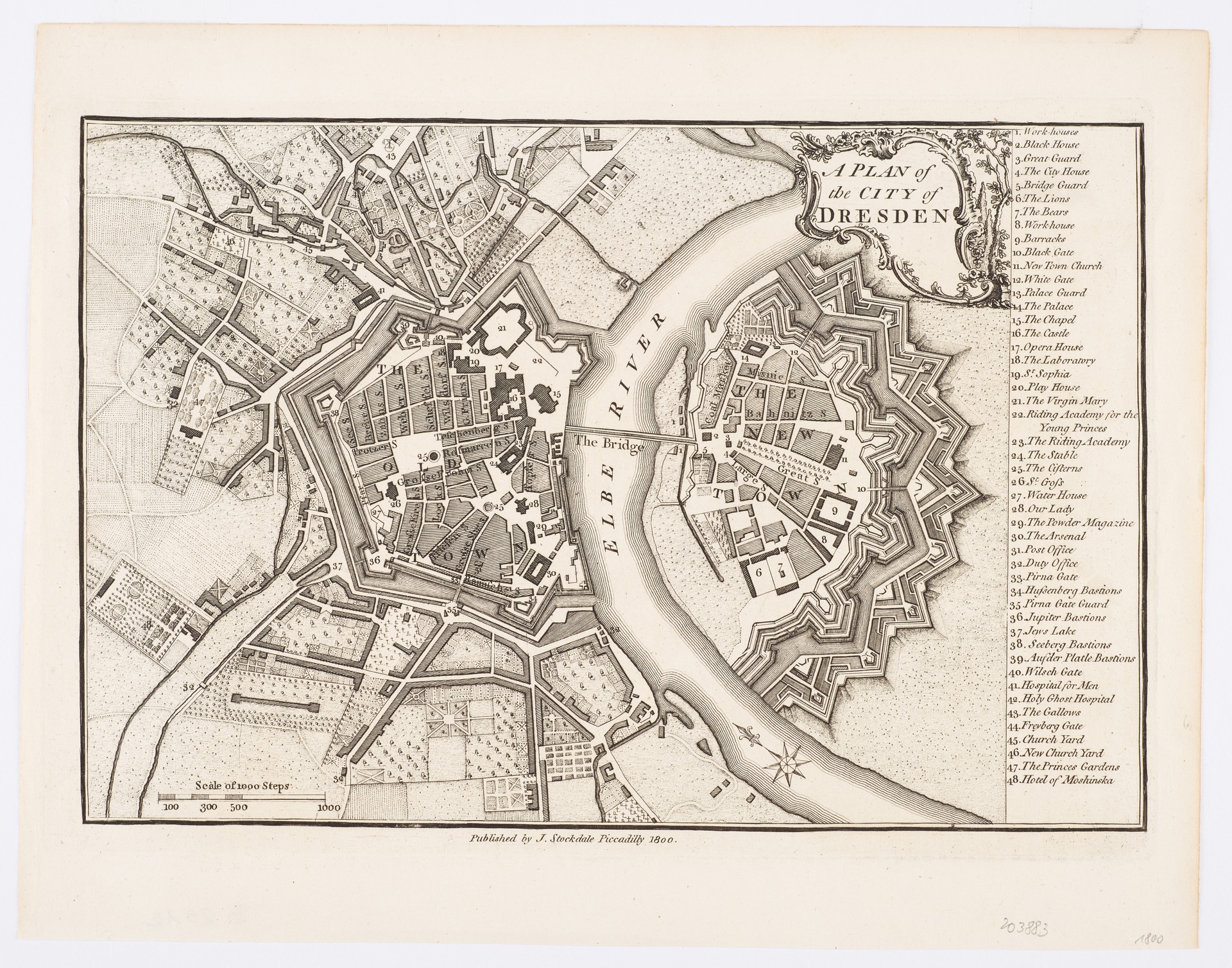 Karte der Stadt Dresden - Anonymer Kupferstich, veröffentlicht von John Stockdale, London, 1800