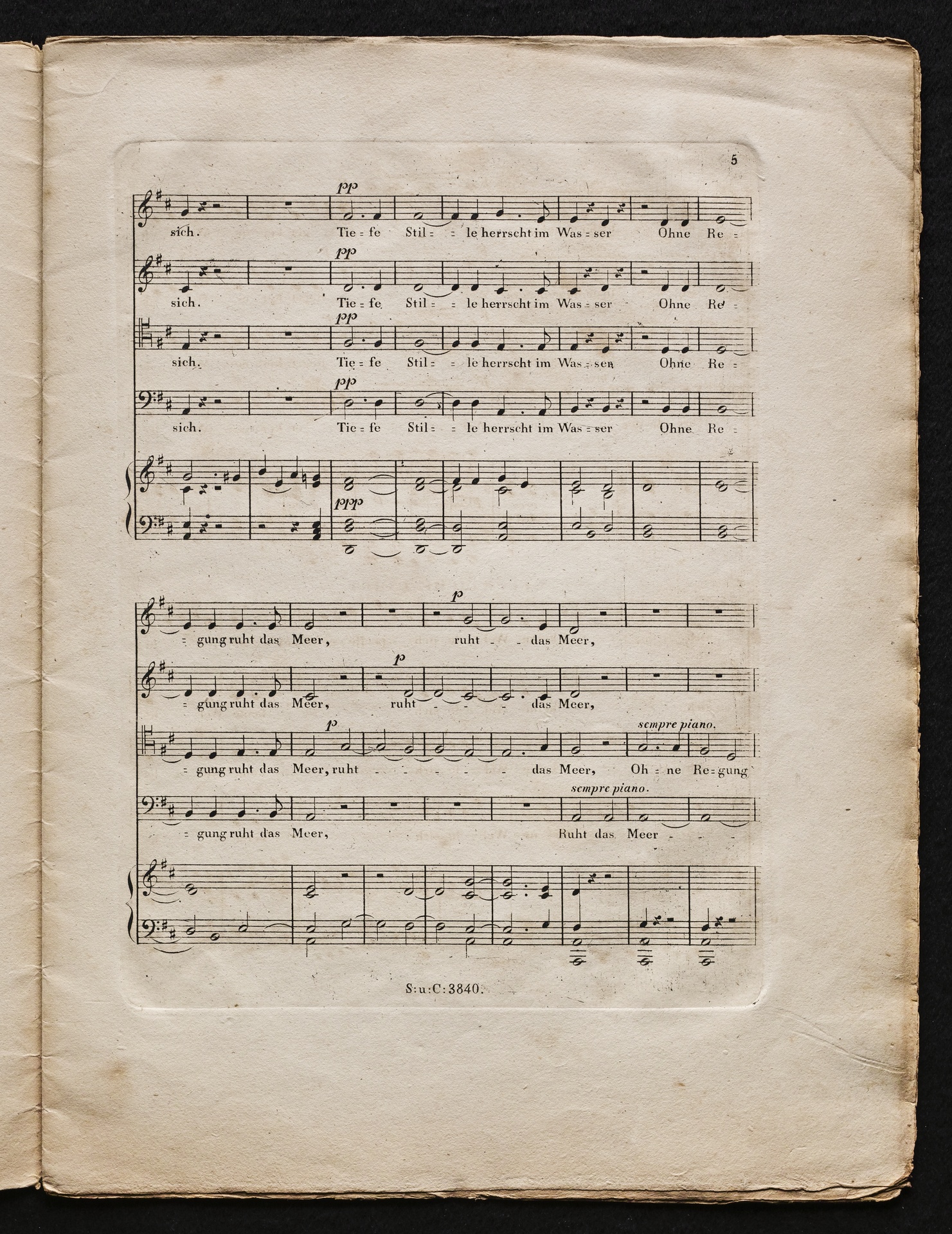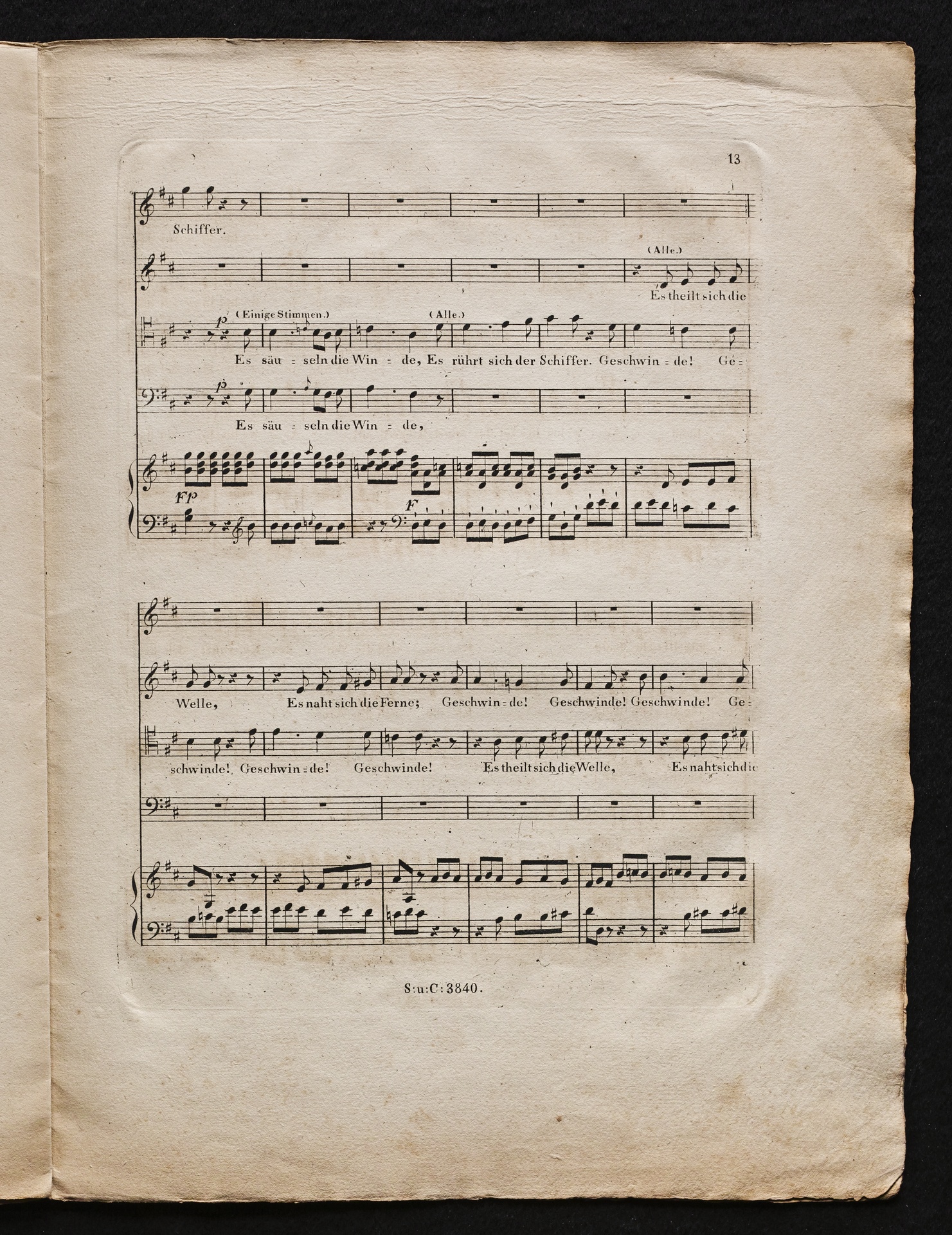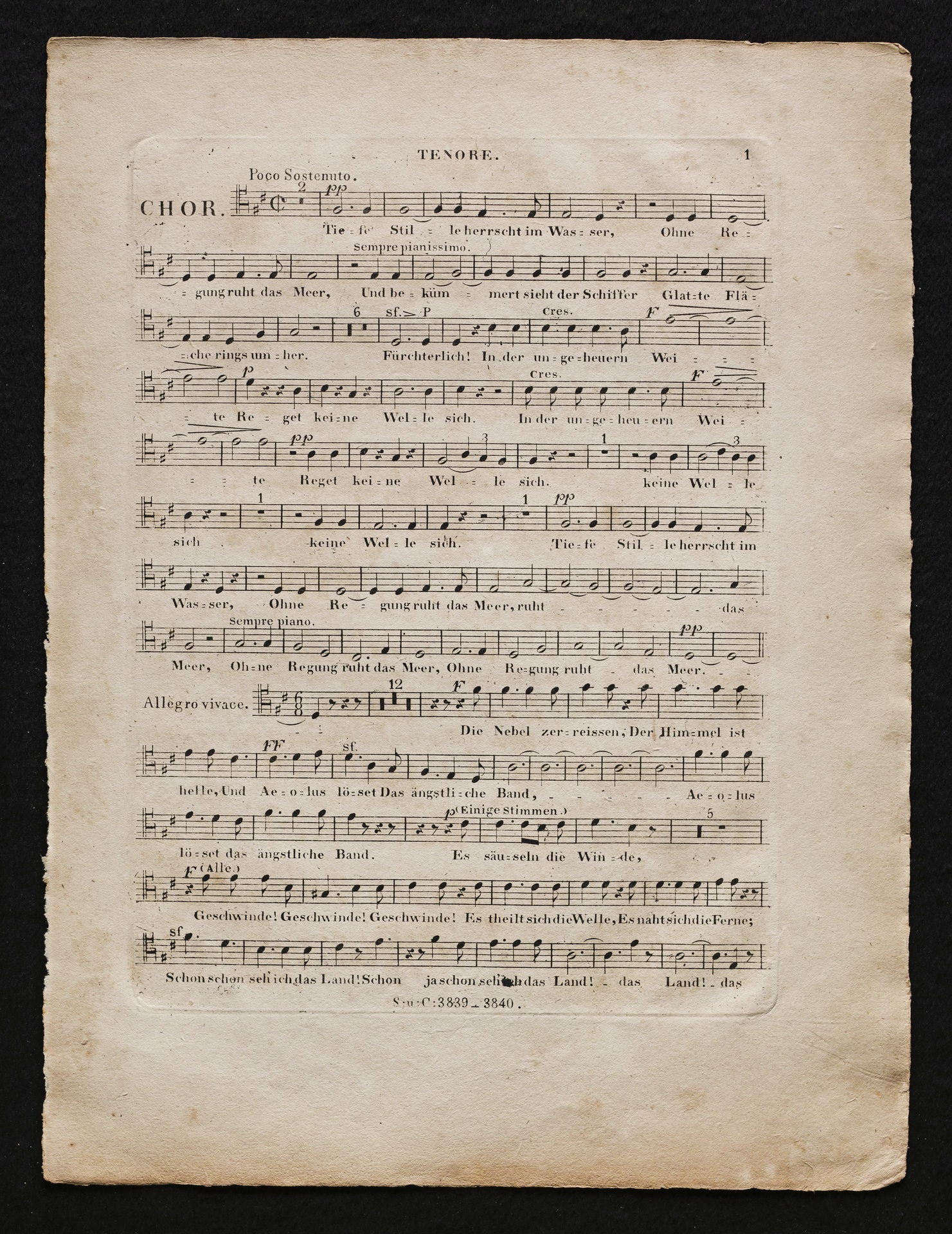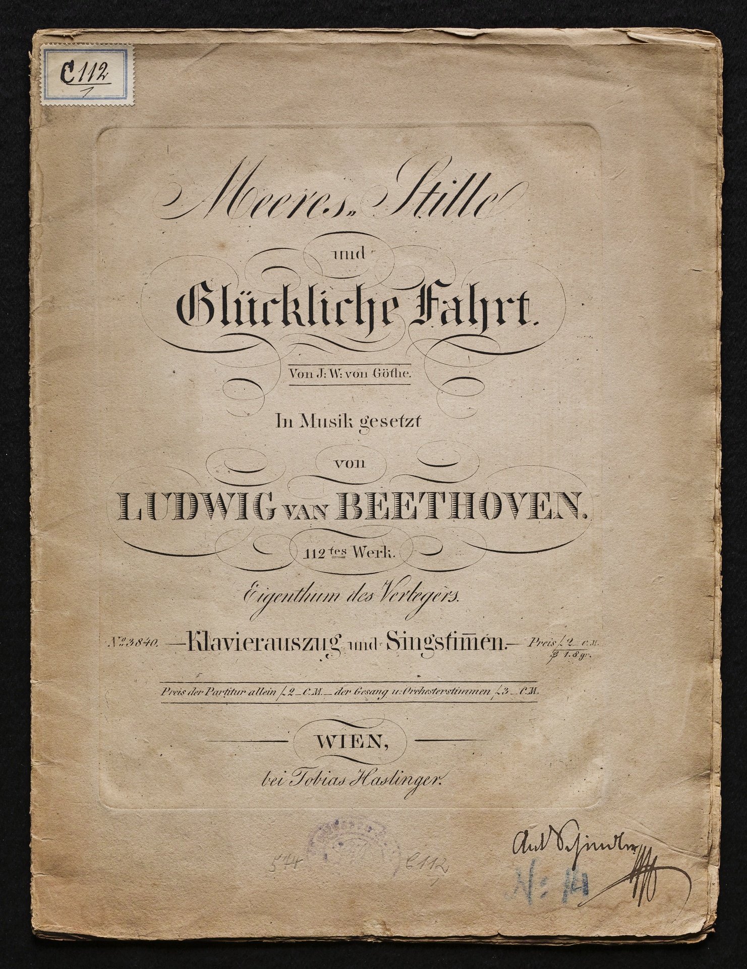 Ludwig van BeethovenJohann Wolfgang von Goethe, "Meeres Stille und Glückliche Fahrt" für Chor und Orchester op. 112, Klavierauszug und Singstimmen, Haslinger, 3840