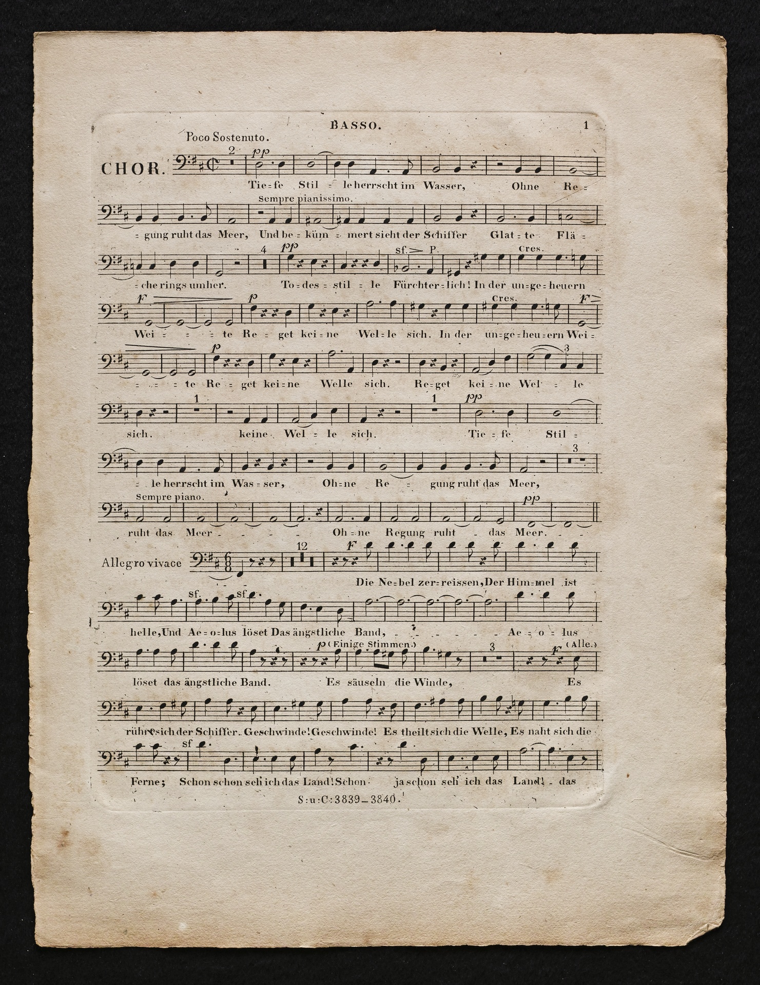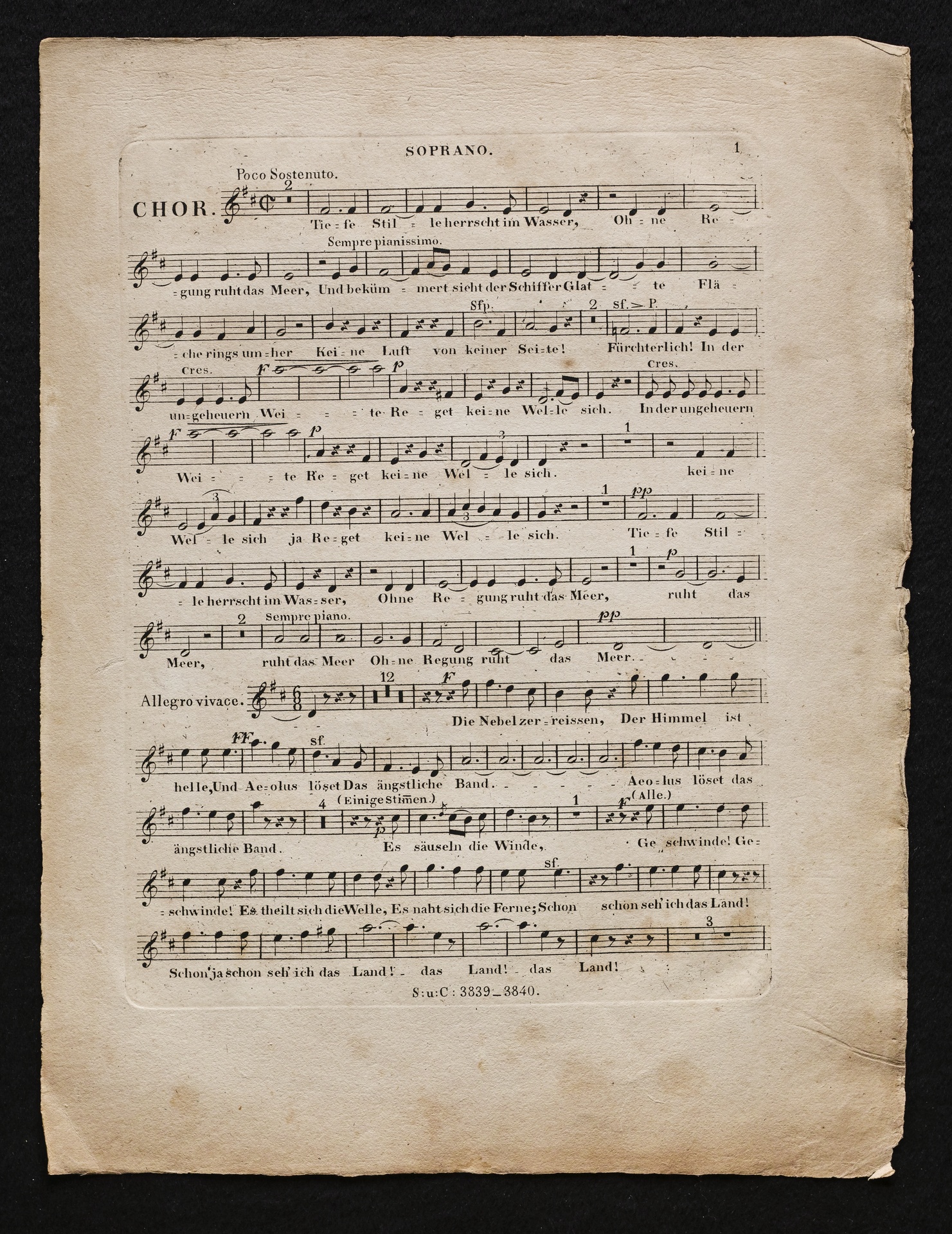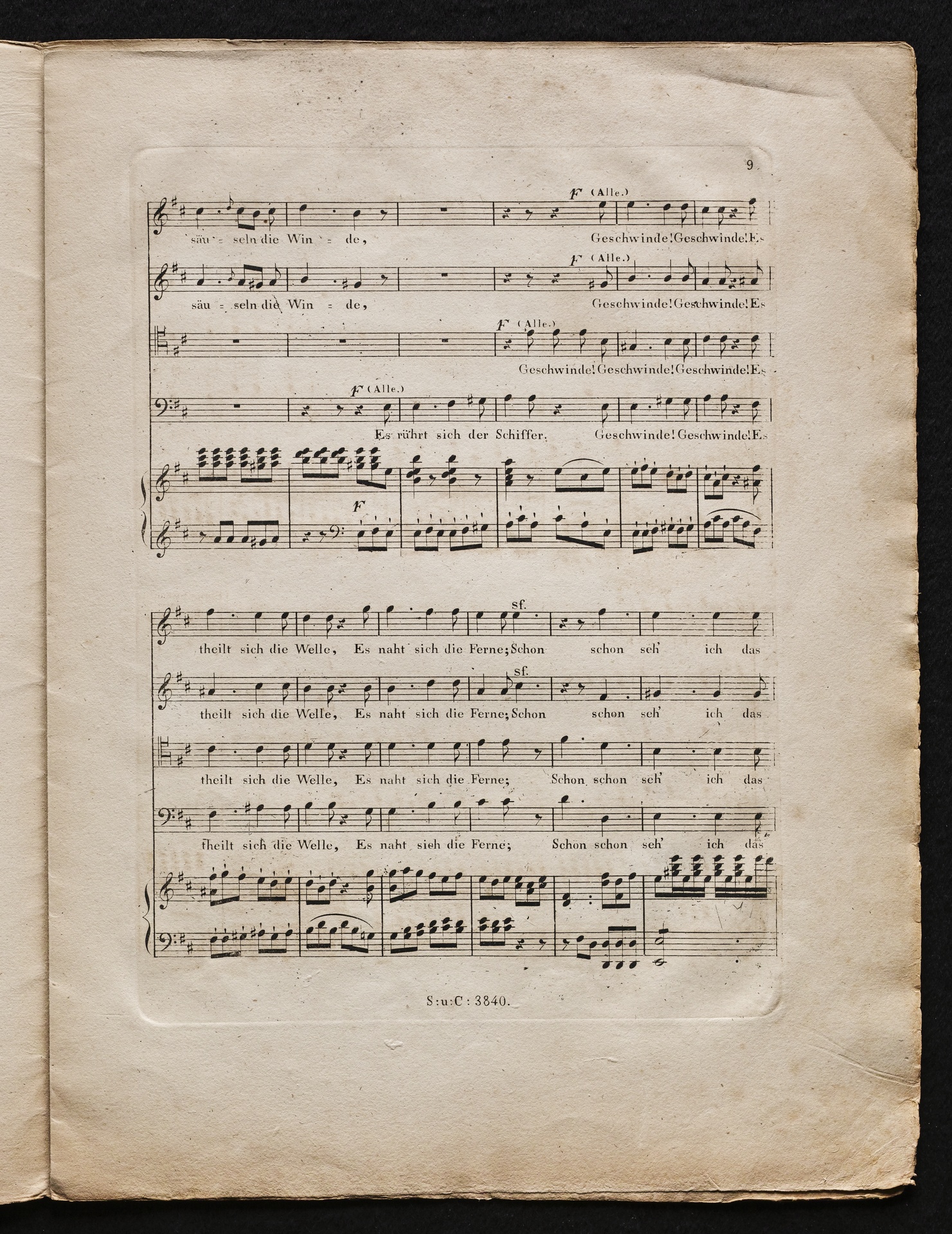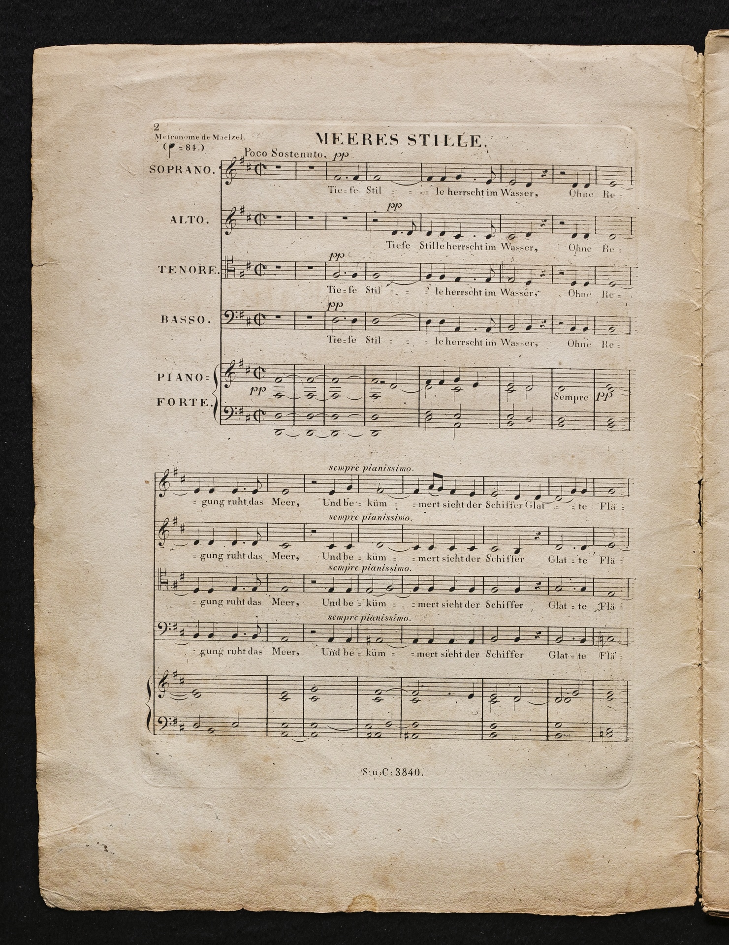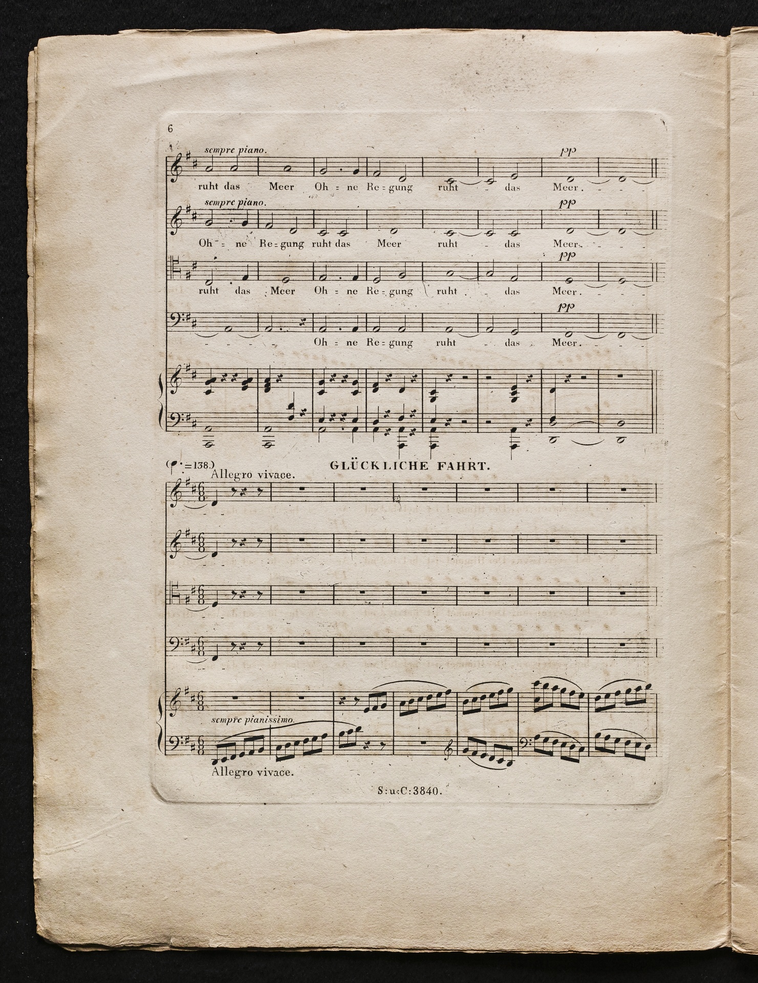 Ludwig van BeethovenJohann Wolfgang von Goethe, "Meeres Stille und Glückliche Fahrt" für Chor und Orchester op. 112, Klavierauszug und Singstimmen, Haslinger, 3840
