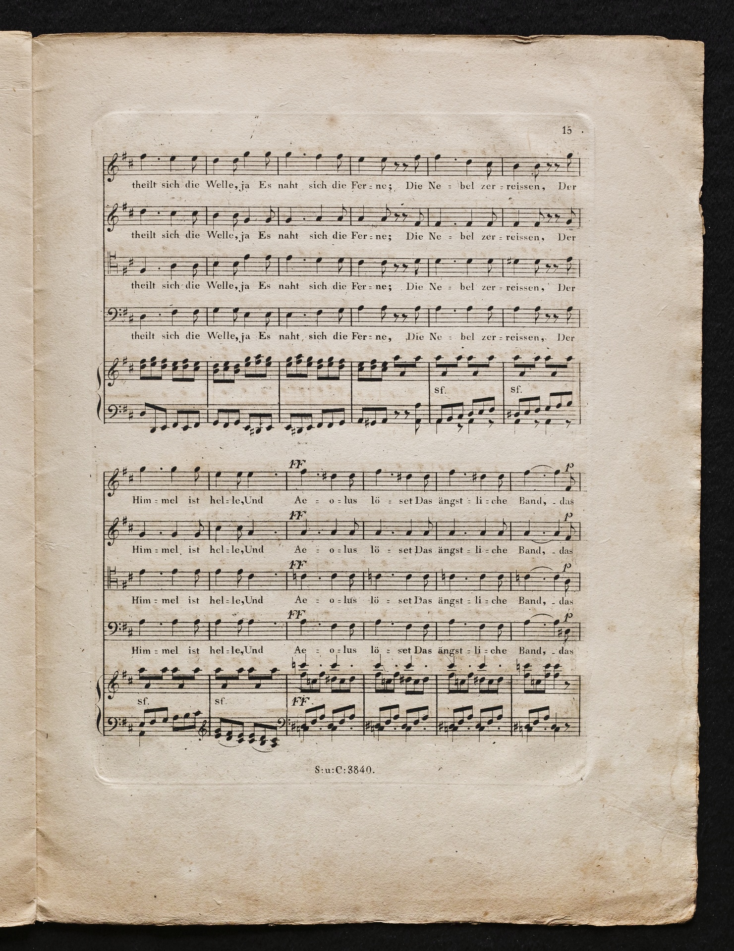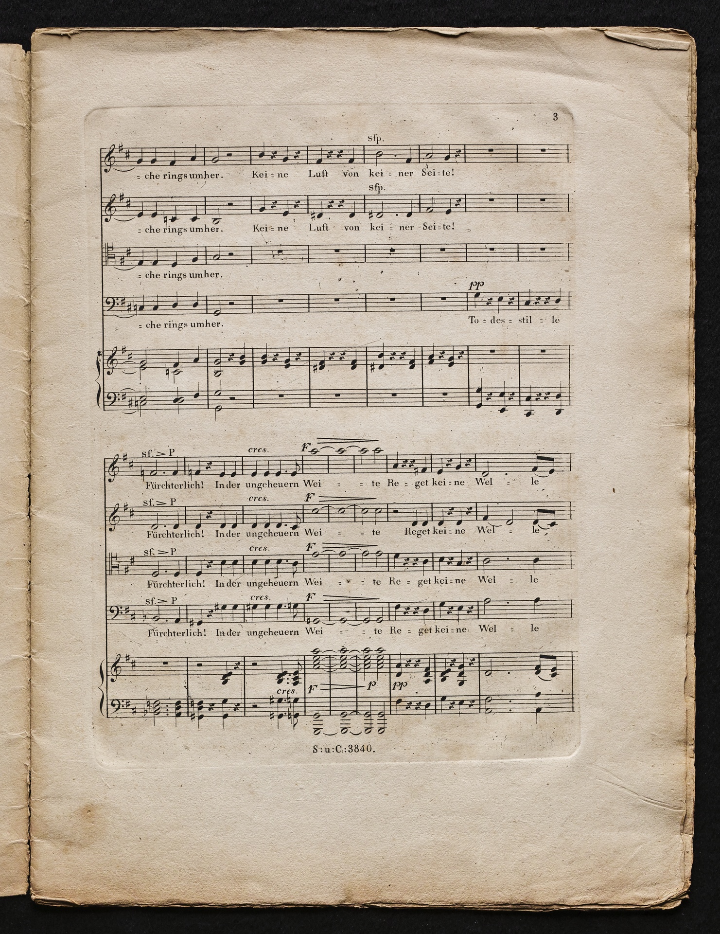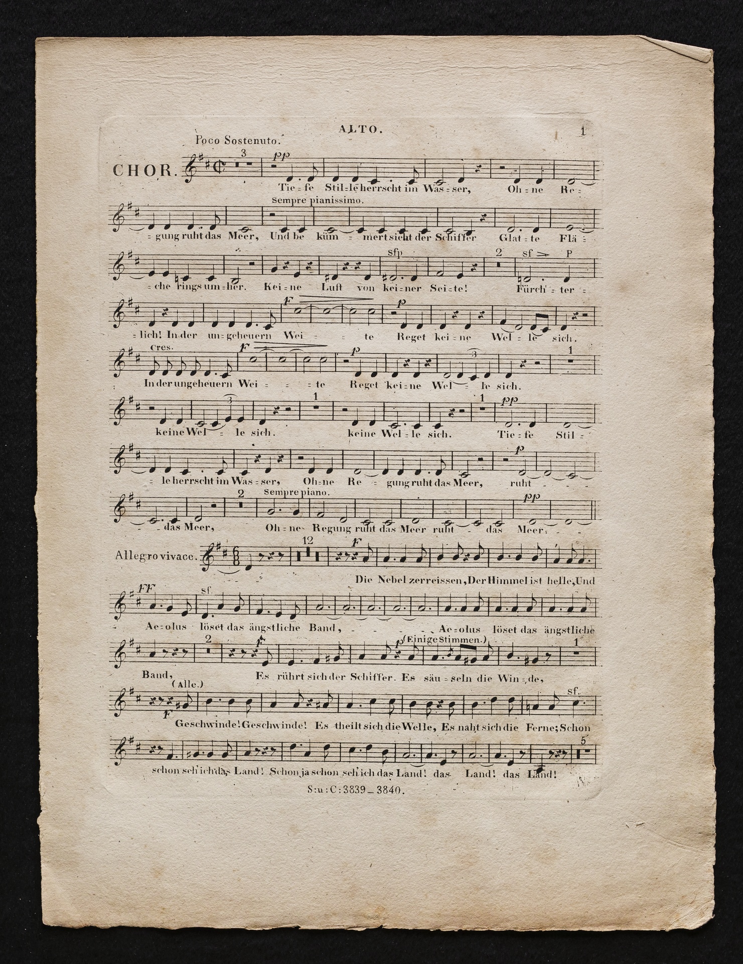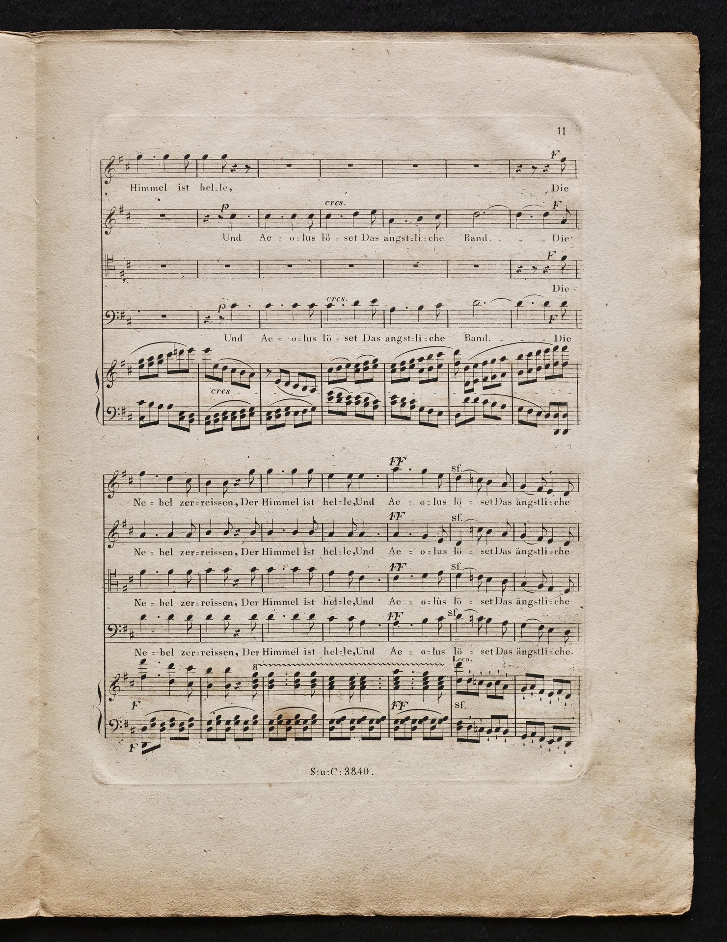 Ludwig van BeethovenJohann Wolfgang von Goethe, "Meeres Stille und Glückliche Fahrt" für Chor und Orchester op. 112, Klavierauszug und Singstimmen, Haslinger, 3840