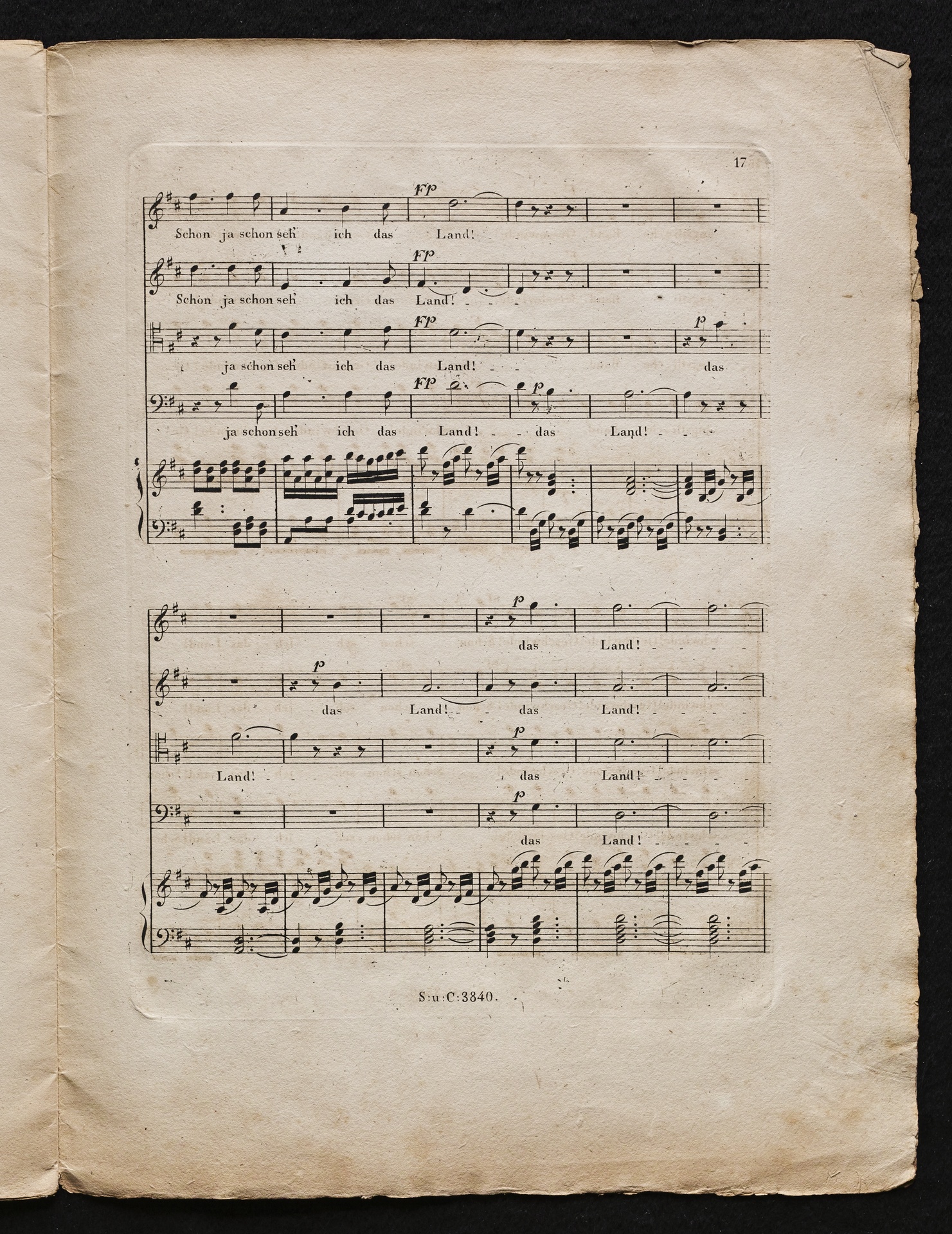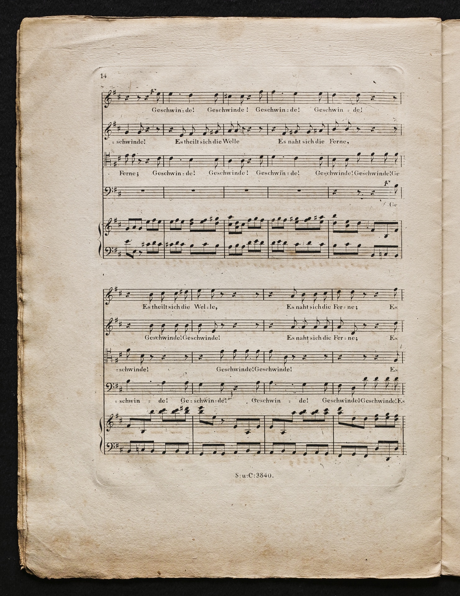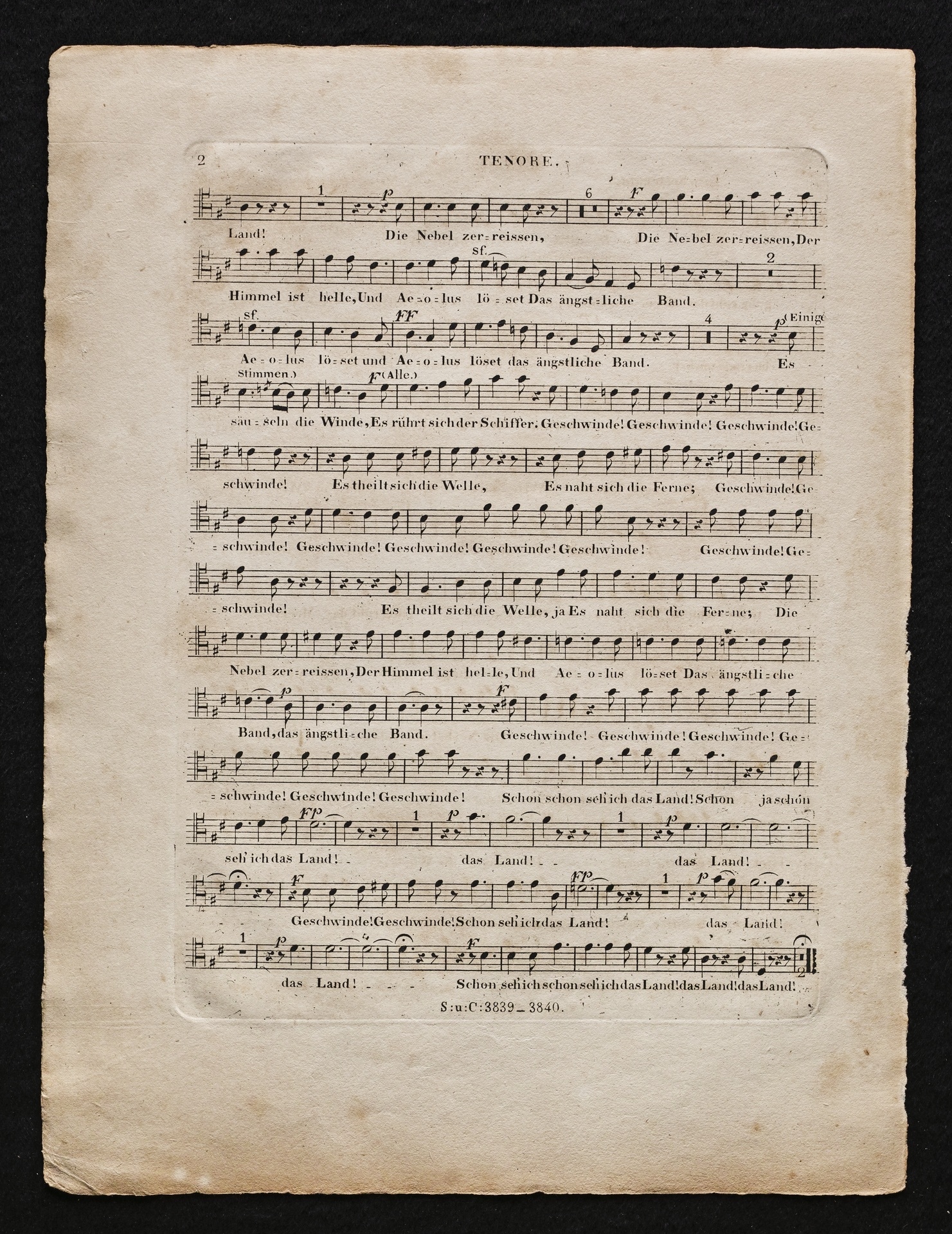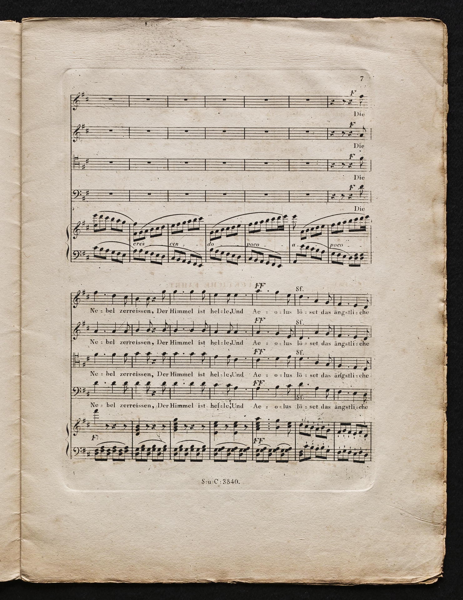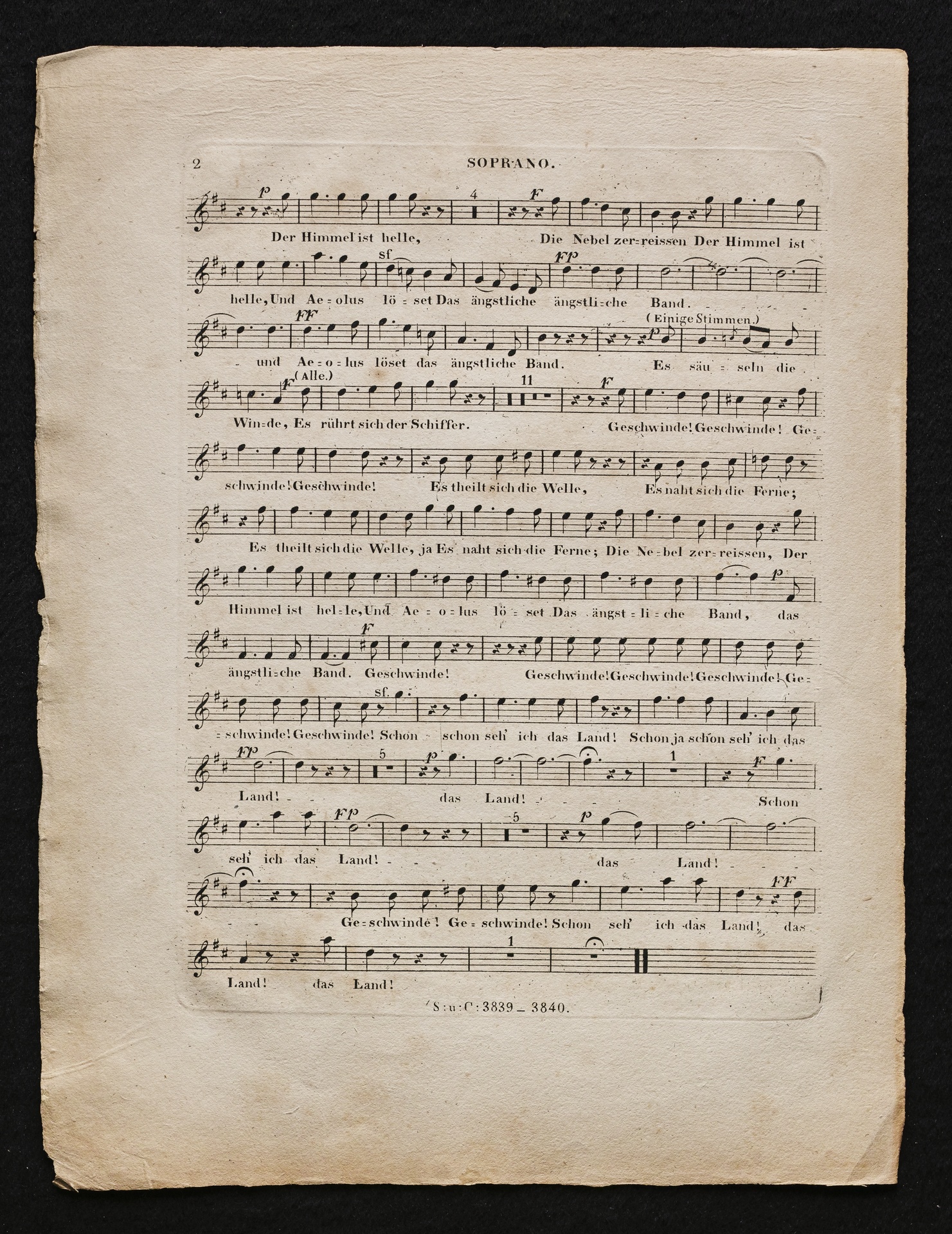 Ludwig van BeethovenJohann Wolfgang von Goethe, "Meeres Stille und Glückliche Fahrt" für Chor und Orchester op. 112, Klavierauszug und Singstimmen, Haslinger, 3840