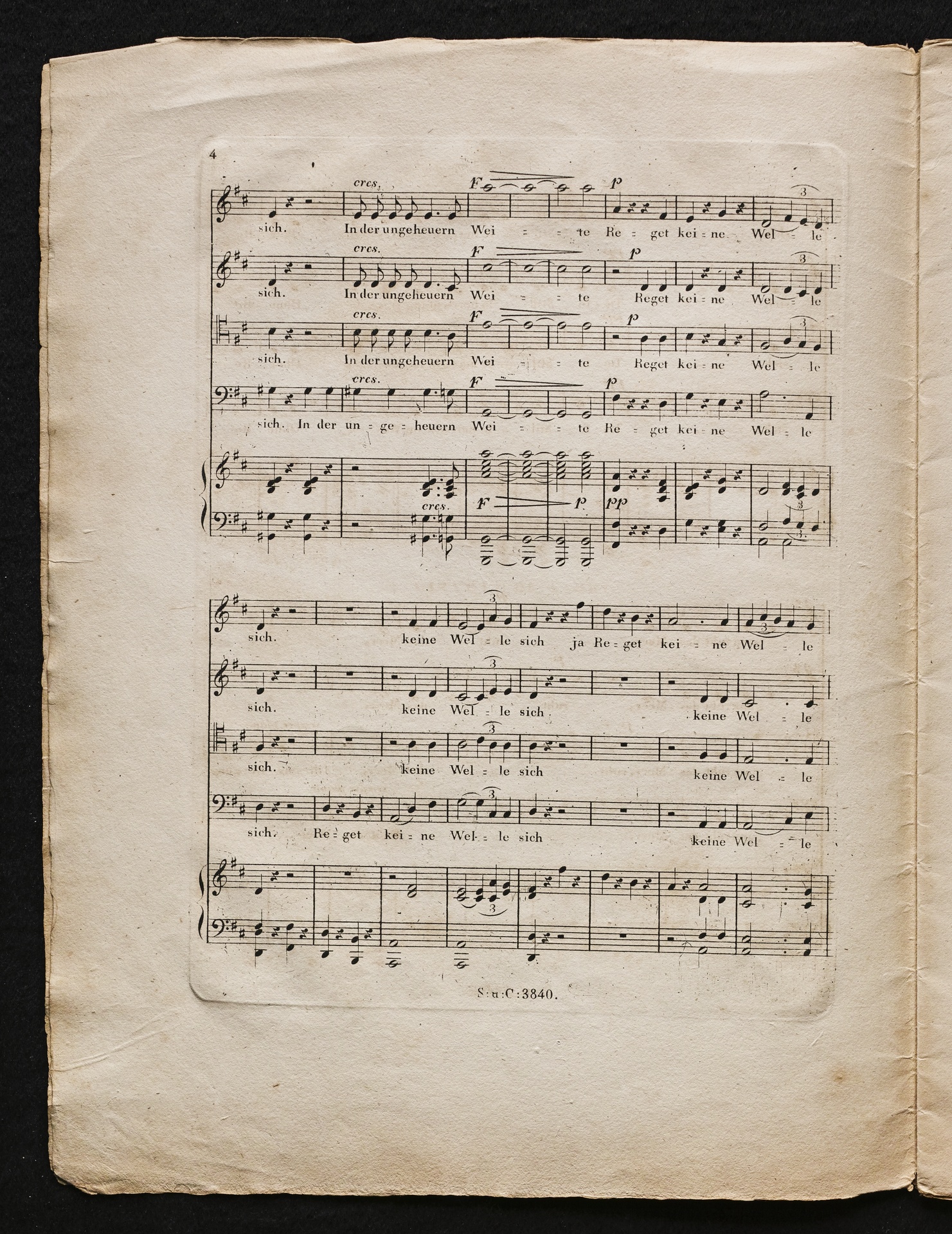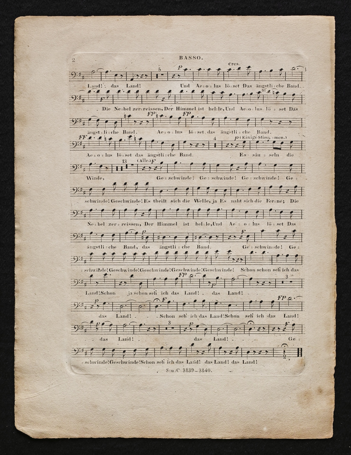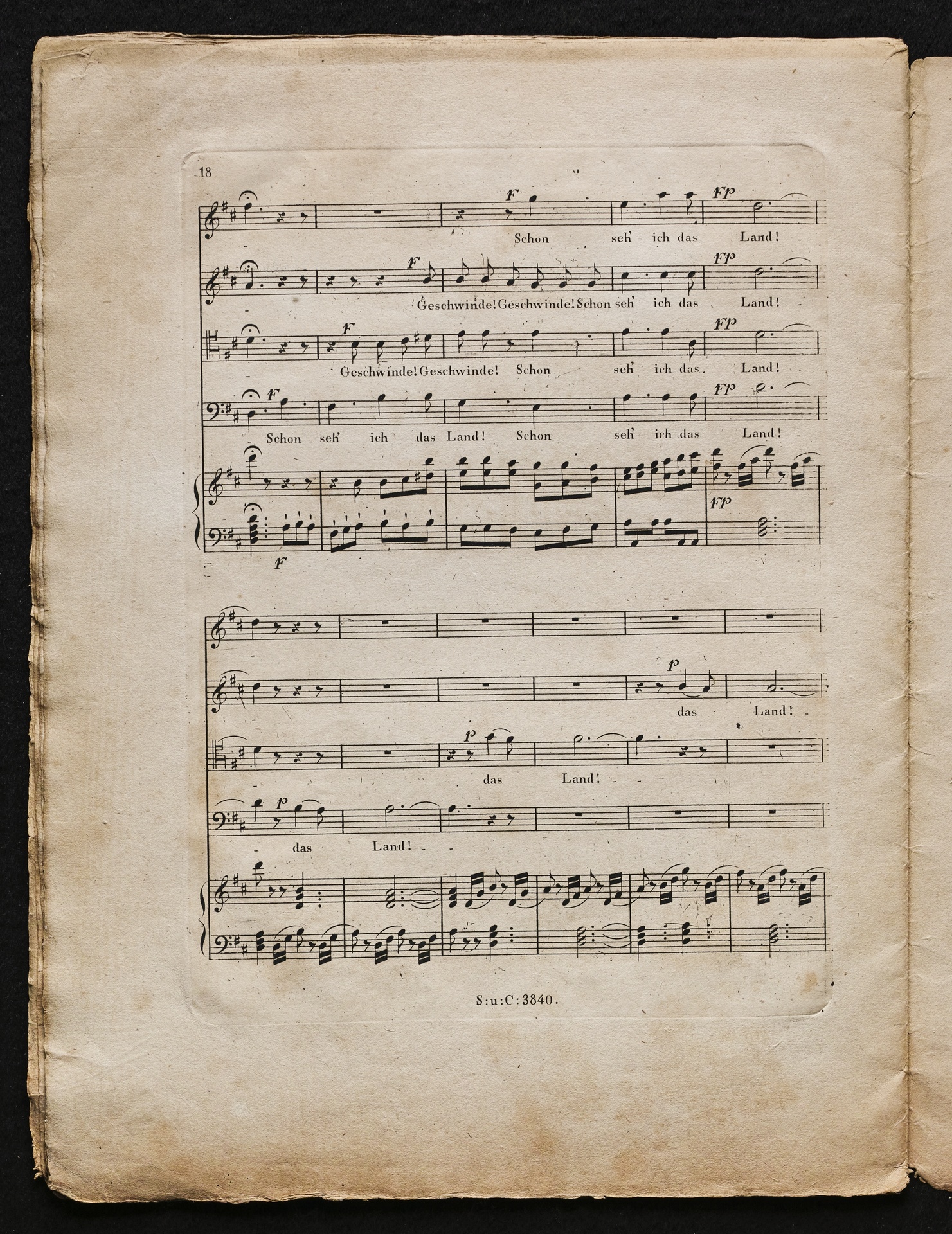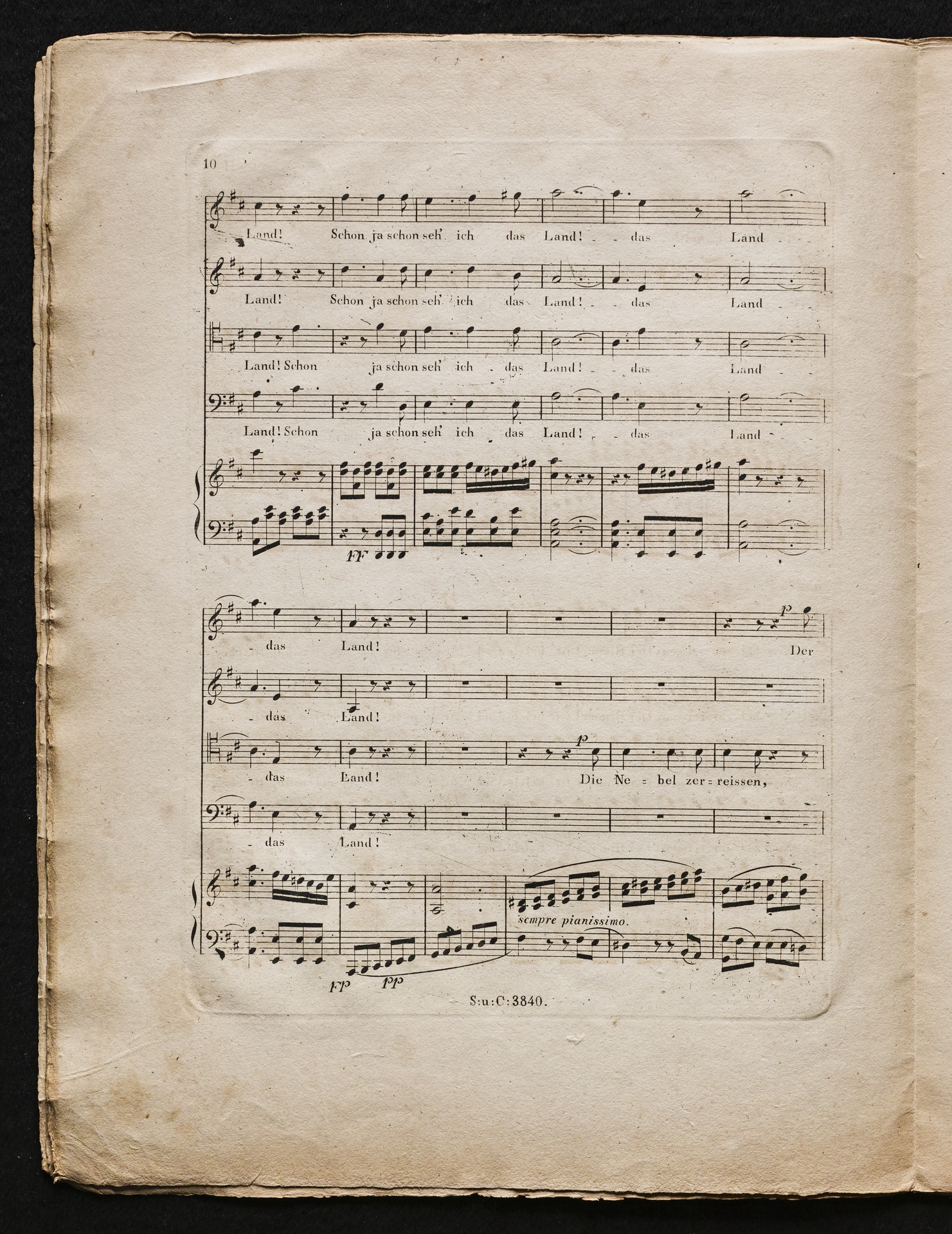 Ludwig van BeethovenJohann Wolfgang von Goethe, "Meeres Stille und Glückliche Fahrt" für Chor und Orchester op. 112, Klavierauszug und Singstimmen, Haslinger, 3840
