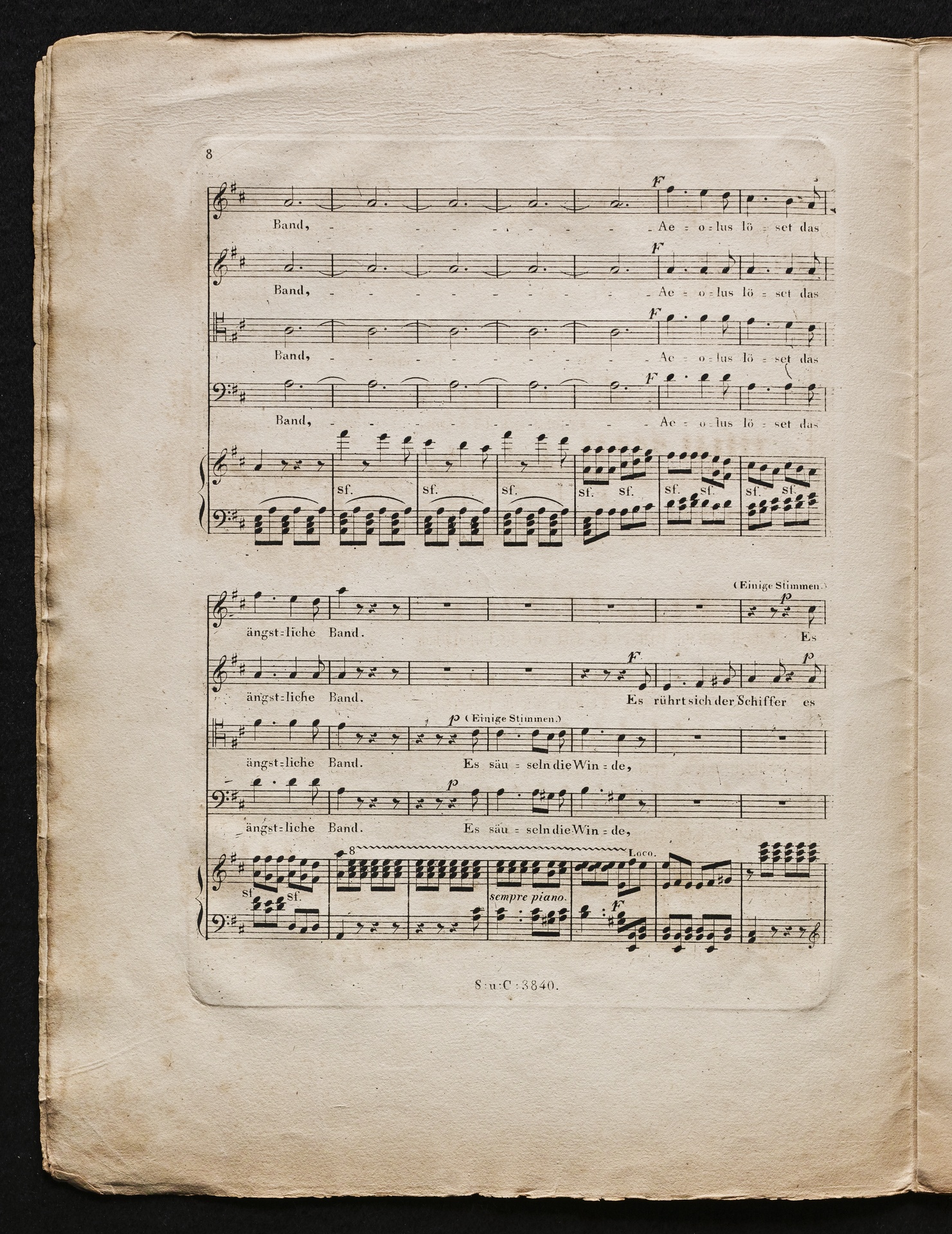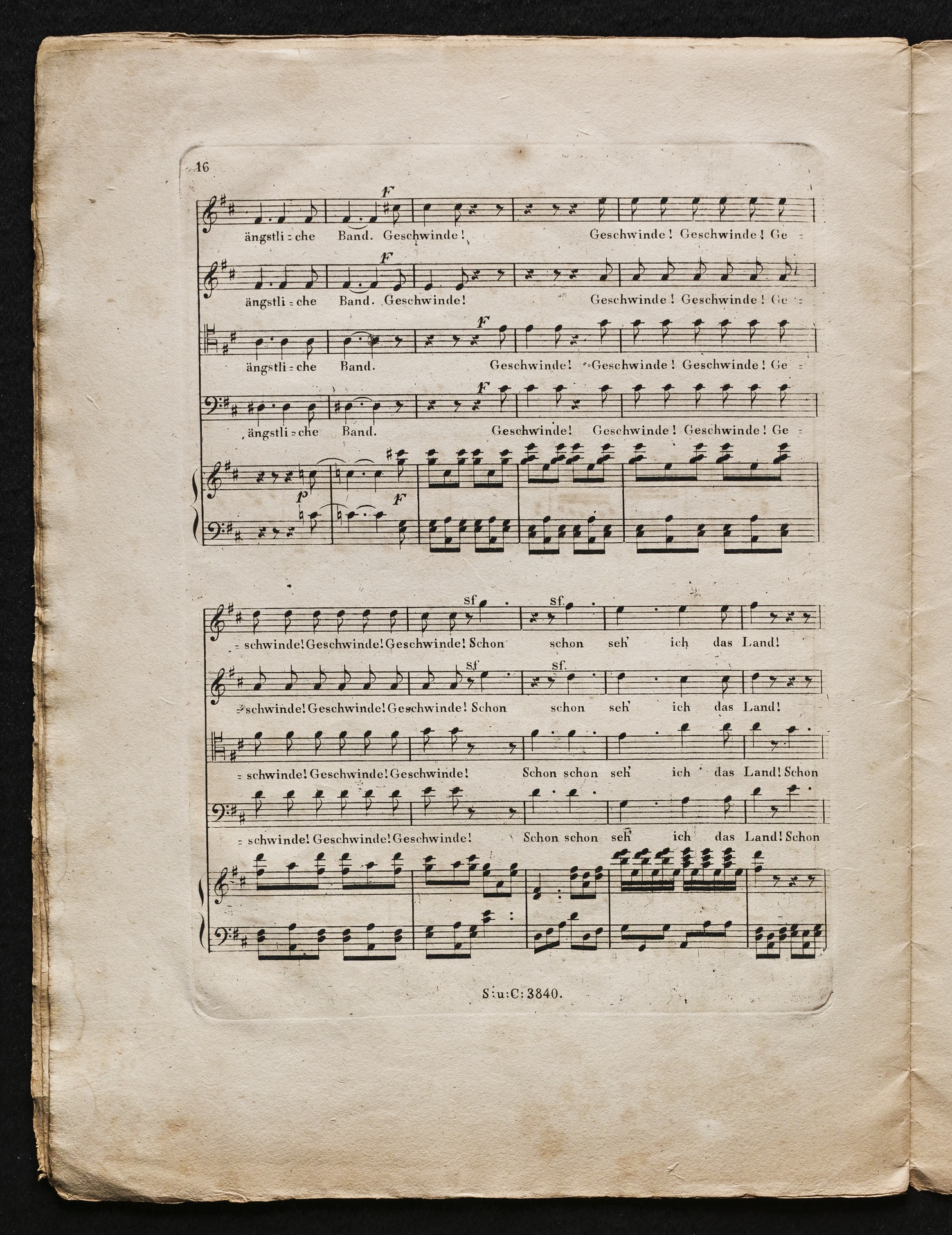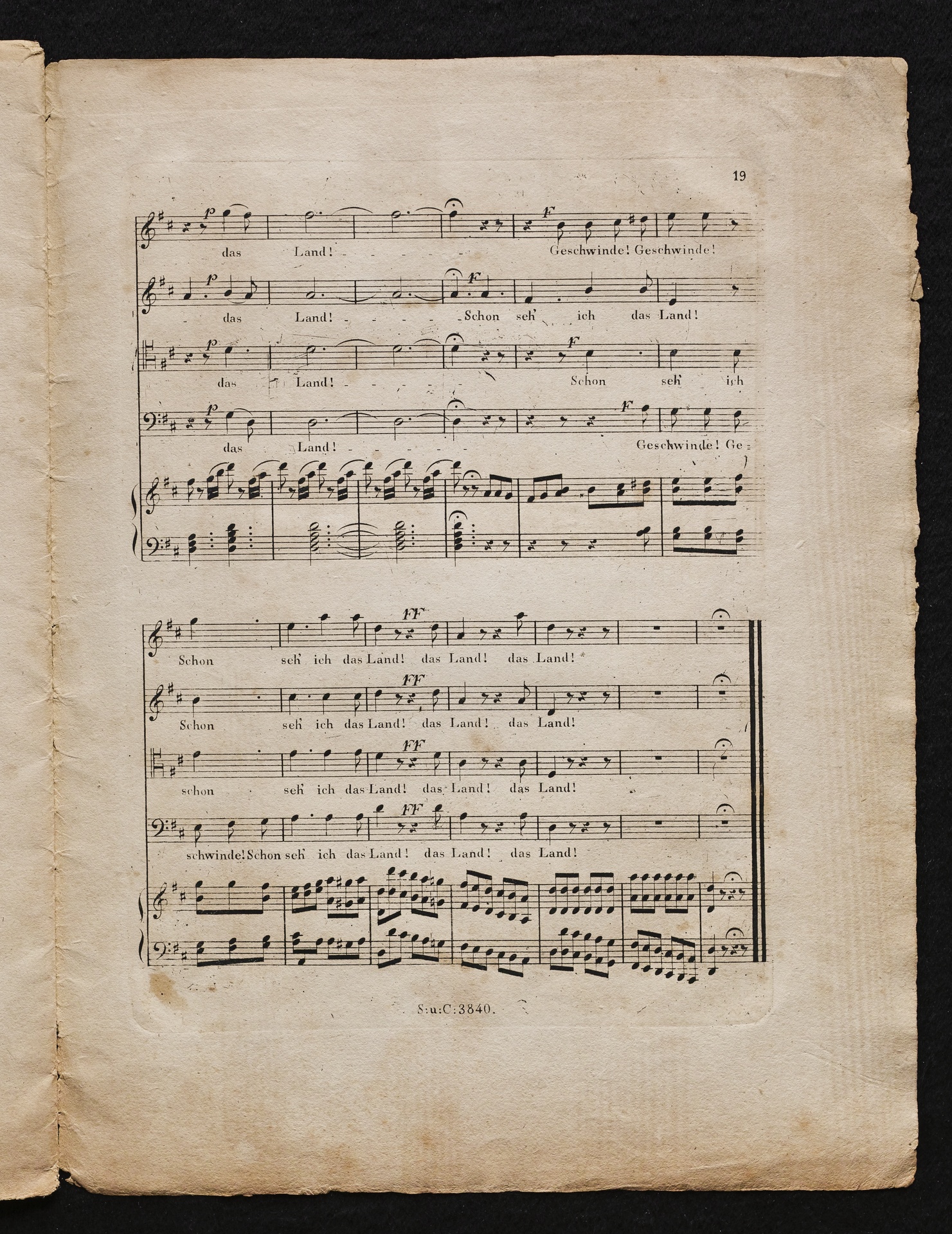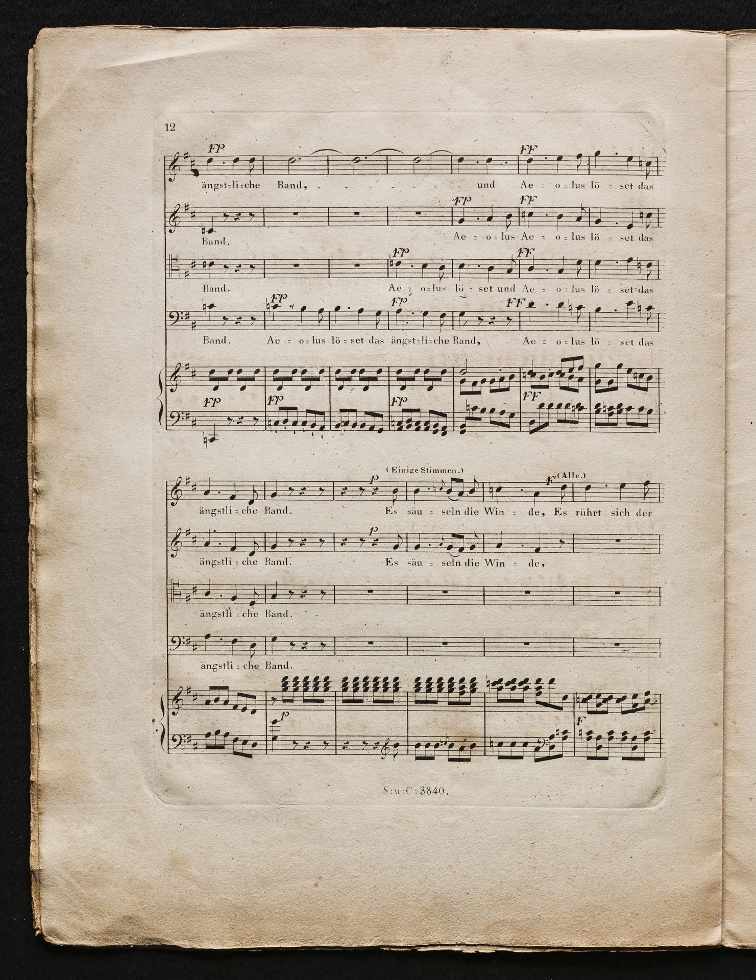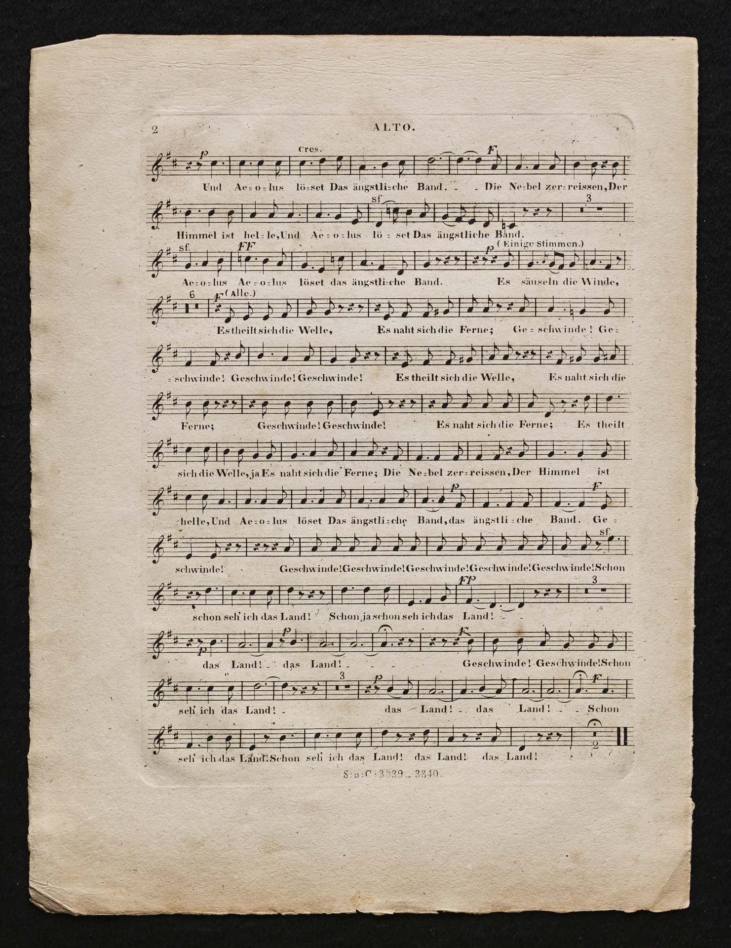 Ludwig van BeethovenJohann Wolfgang von Goethe, "Meeres Stille und Glückliche Fahrt" für Chor und Orchester op. 112, Klavierauszug und Singstimmen, Haslinger, 3840