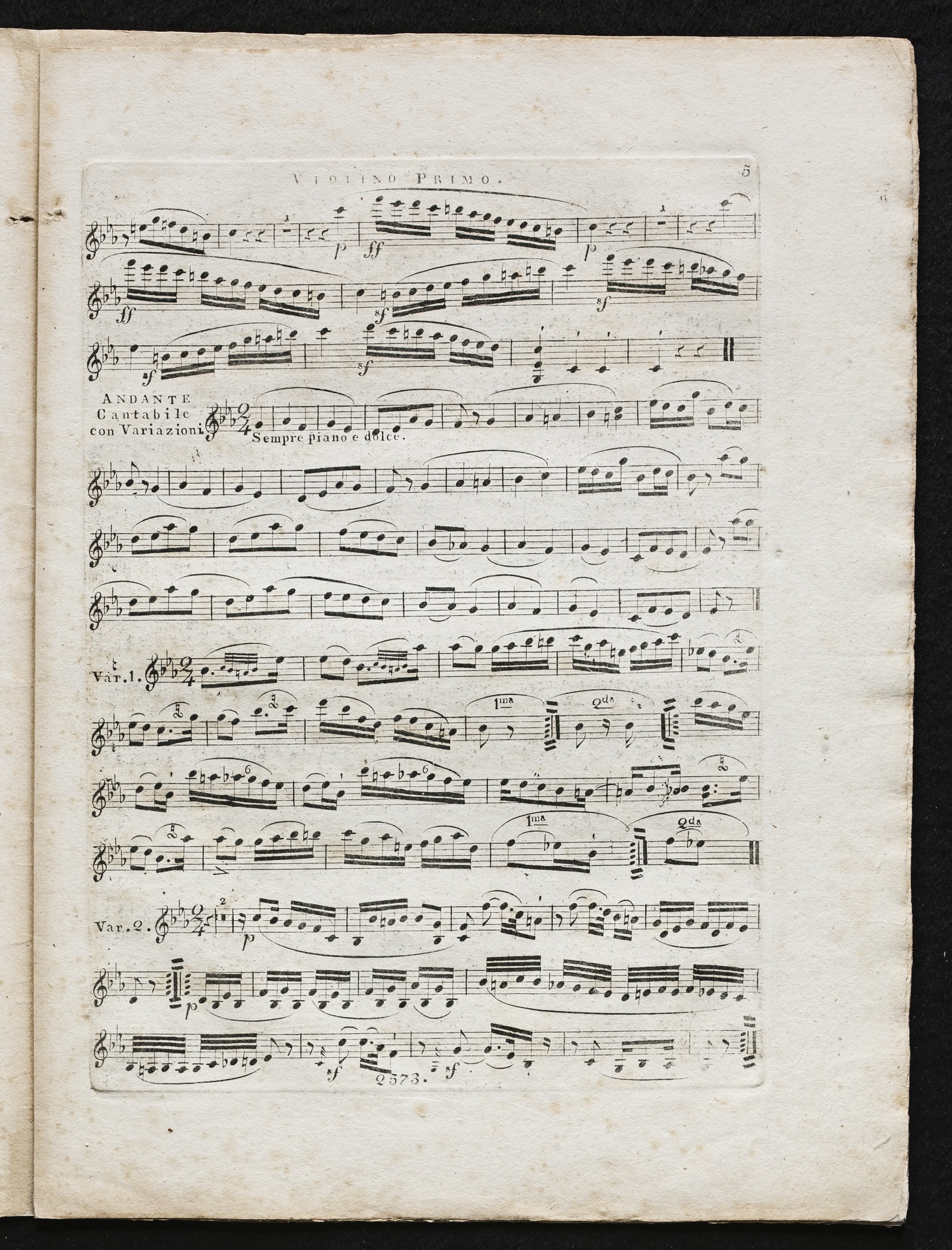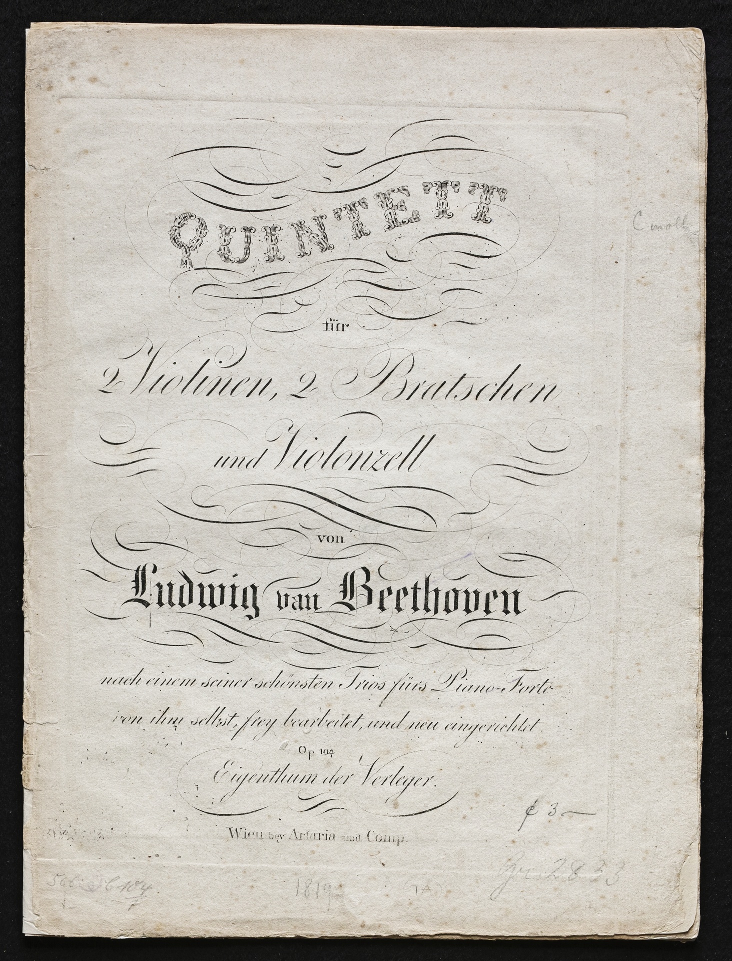 Ludwig van Beethoven, Quintett für 2 Violinen, 2 Violen, Violoncello (c-Moll) op. 104, Stimmen, Artaria, 2573