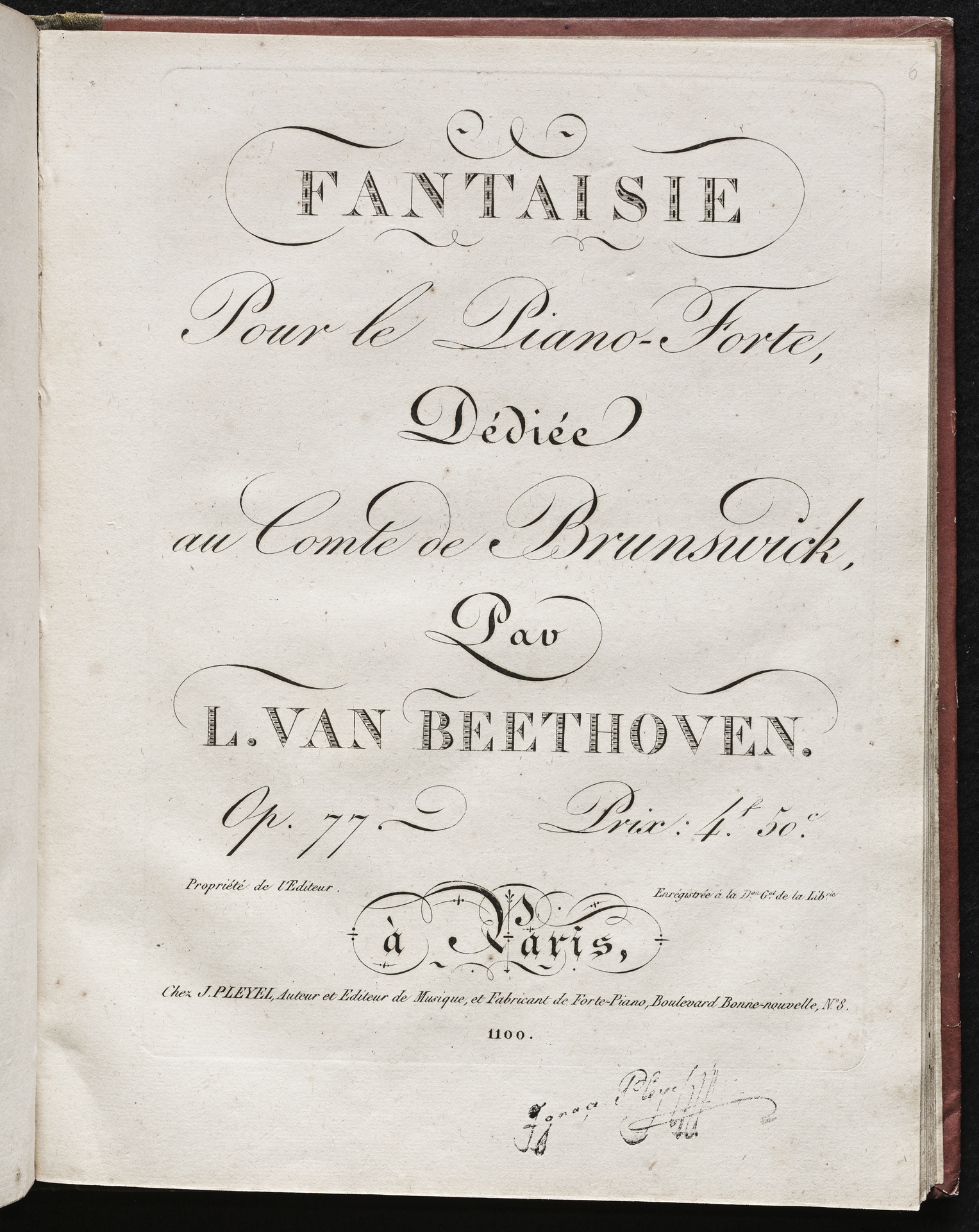 Ludwig van Beethoven, Fantasie für Klavier (H-Dur, Anfang in g-Moll) op. 77, Pleyel, 1100
