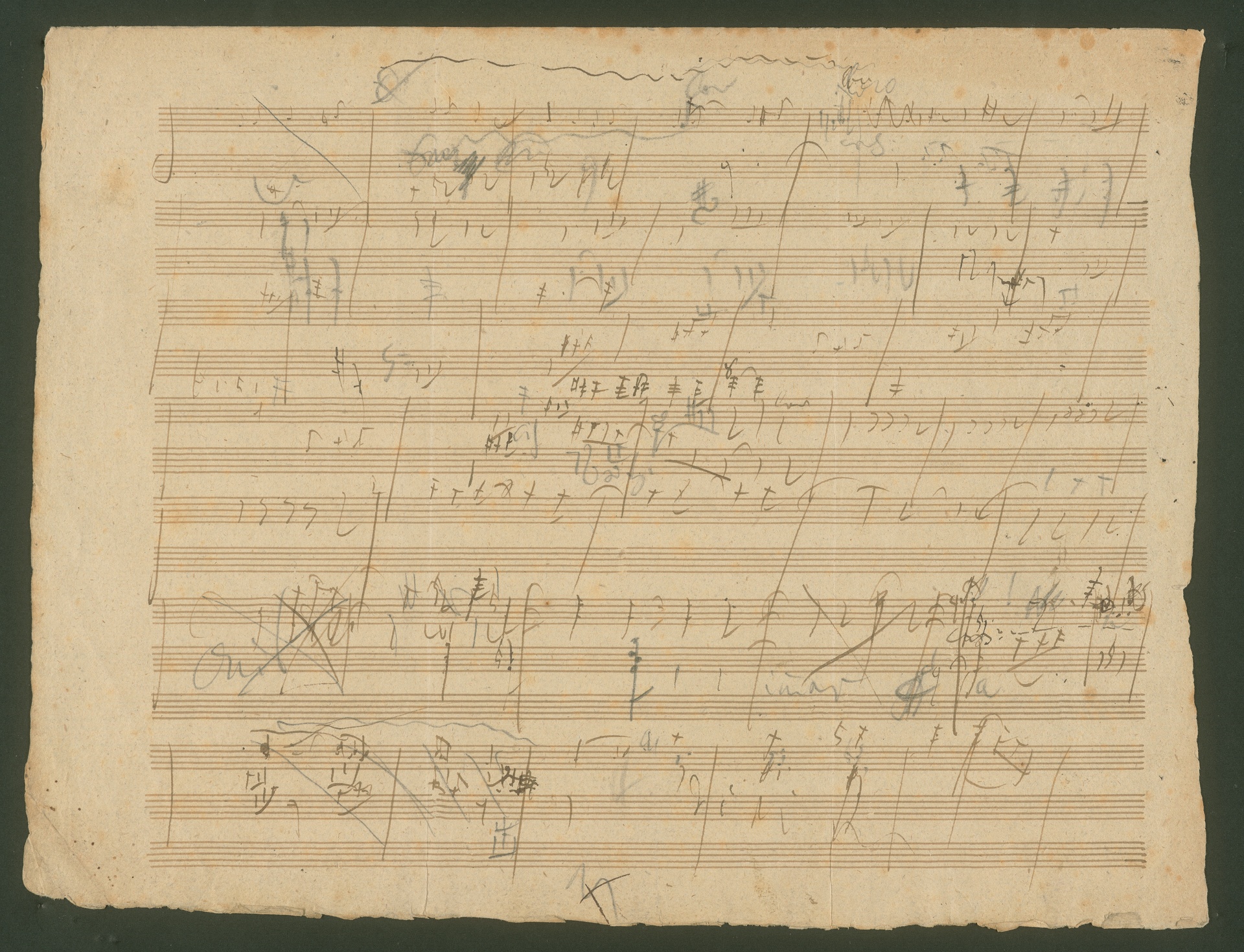 This single leaf contains sketches for the Piano Sonata op. 101. It previously belonged to a sketchbook which Beethoven used between 1815 and 1816. It is now known as the Scheide Sketchbook, named after its current owner William Scheide.