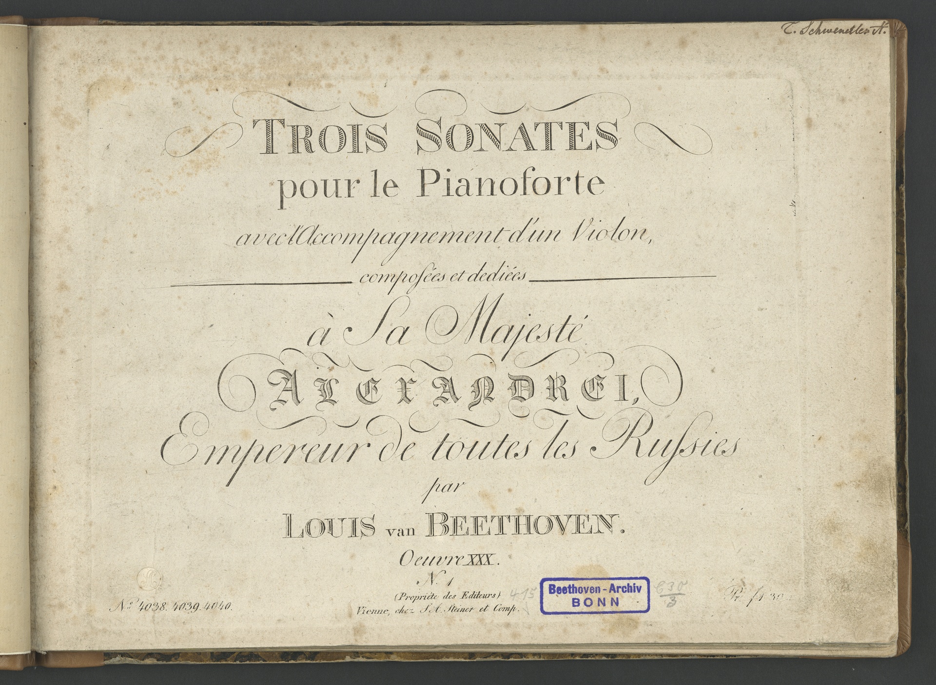 Ludwig van Beethoven, Sonaten für Klavier und Violine (A-Dur, c-Moll, G-Dur) op. 30, 1-3, Stimmen, Steiner, 4038-4040