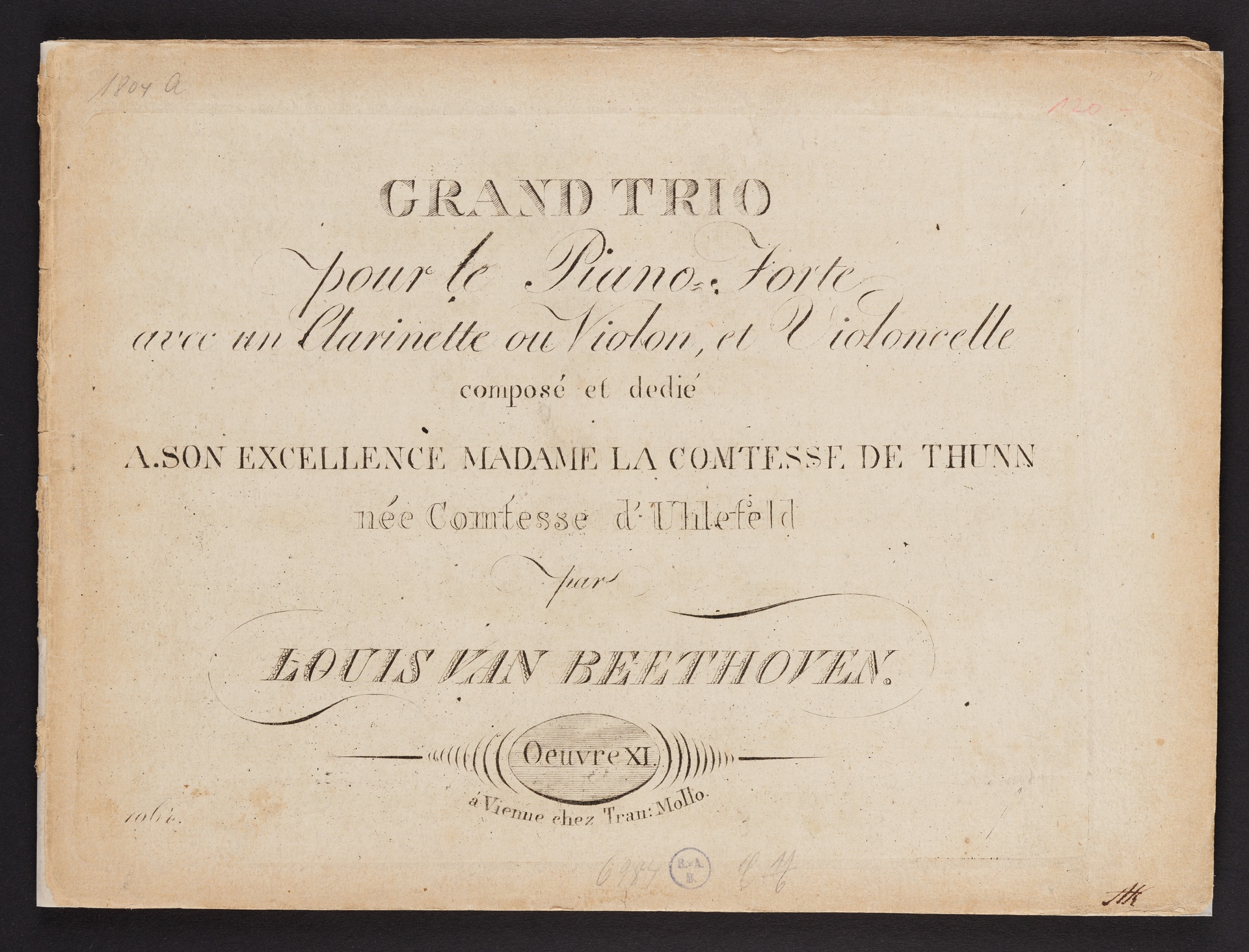 Ludwig van Beethoven, Trio für Klavier, Klarinette (Violine), Violoncello (B-Dur) op. 11, Stimmen, Mollo, 1064