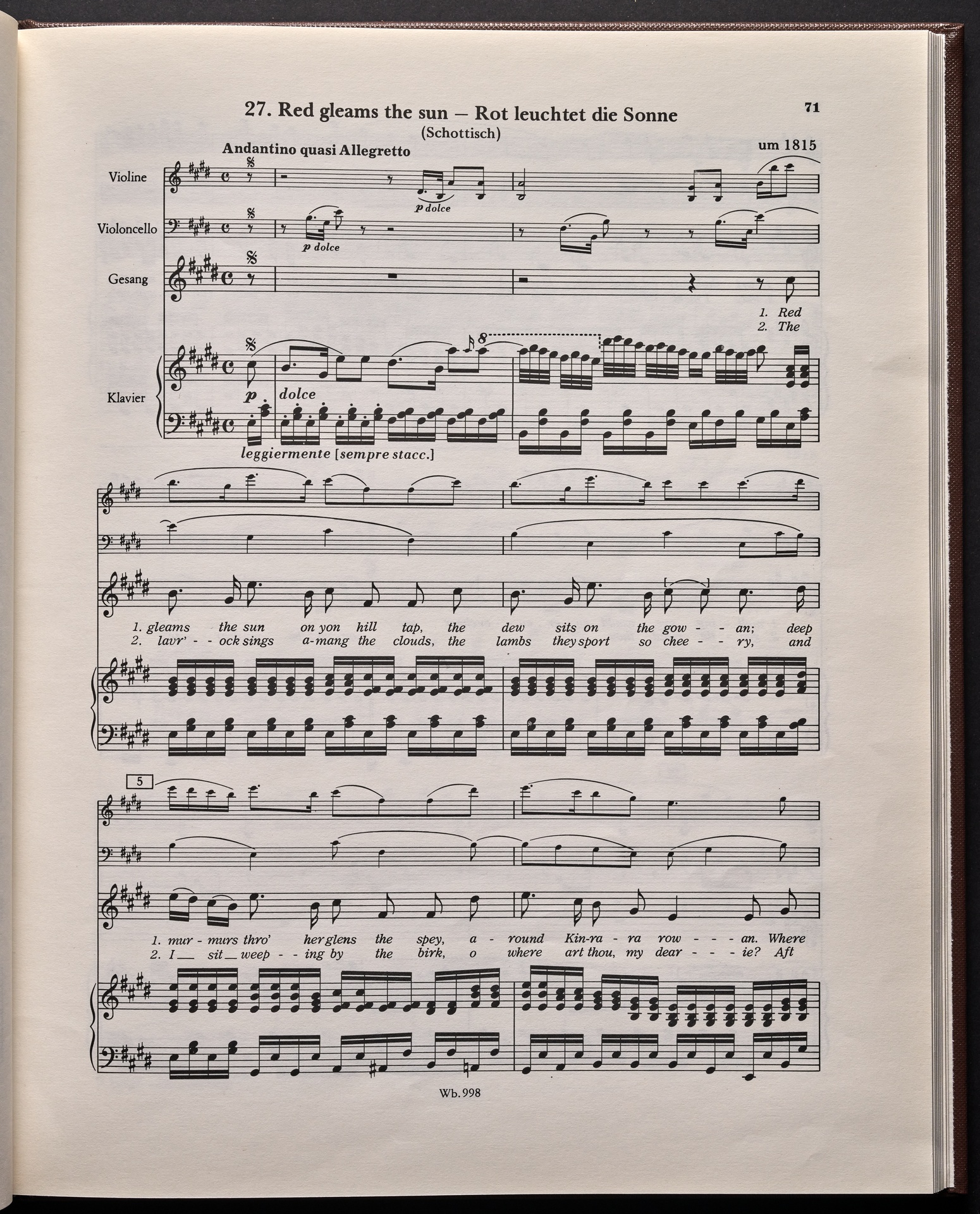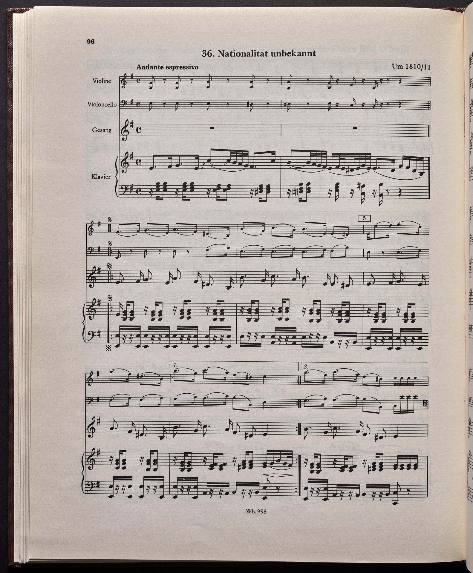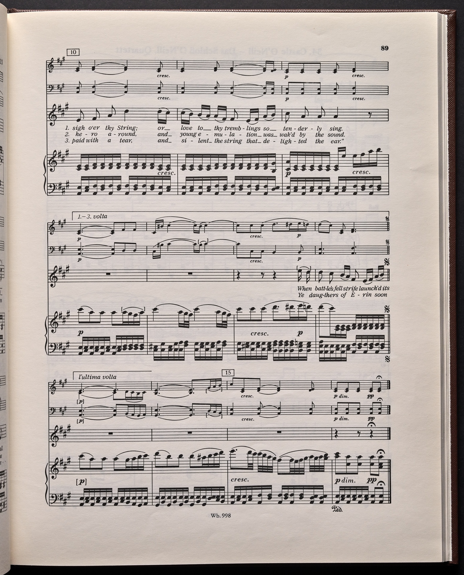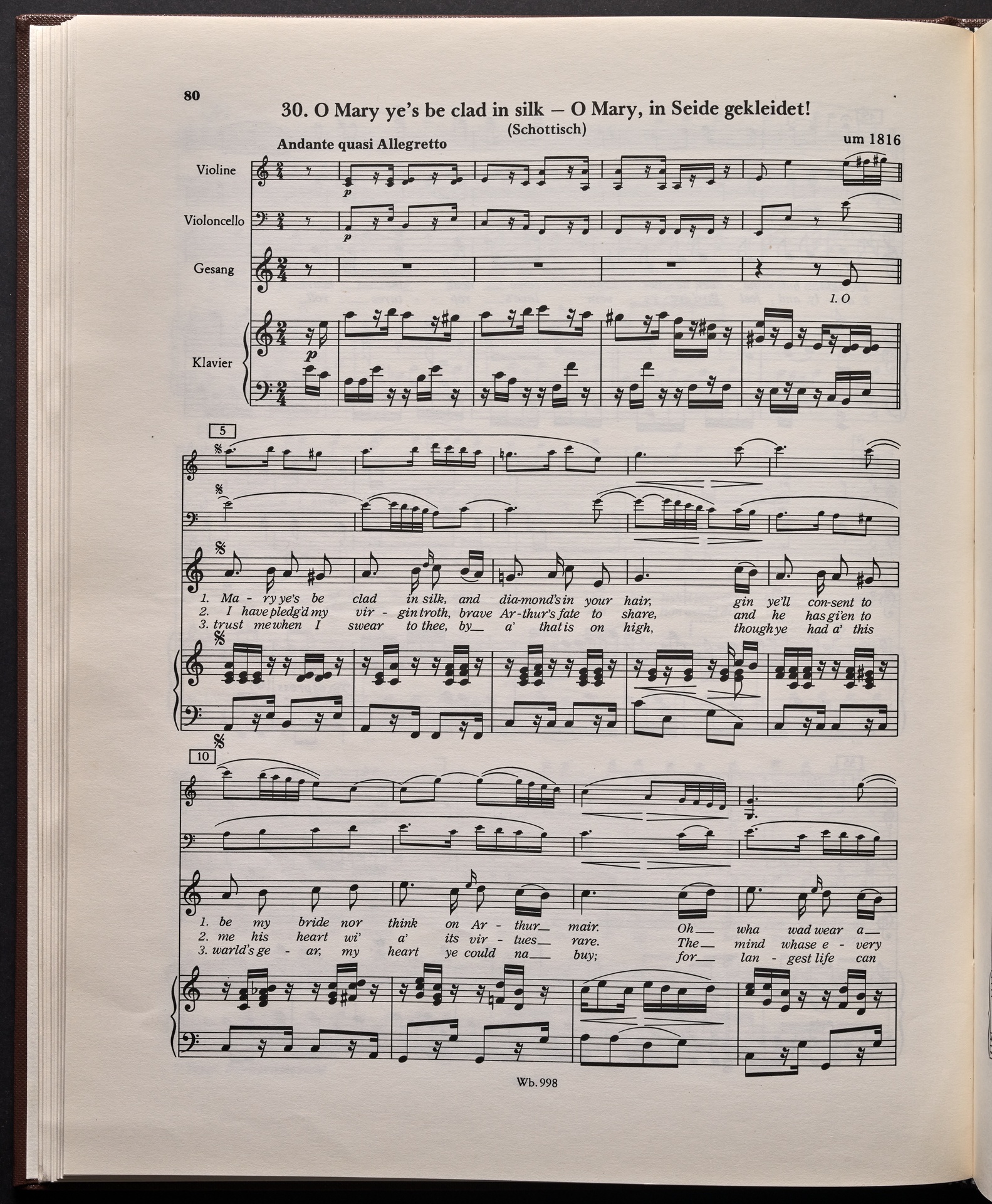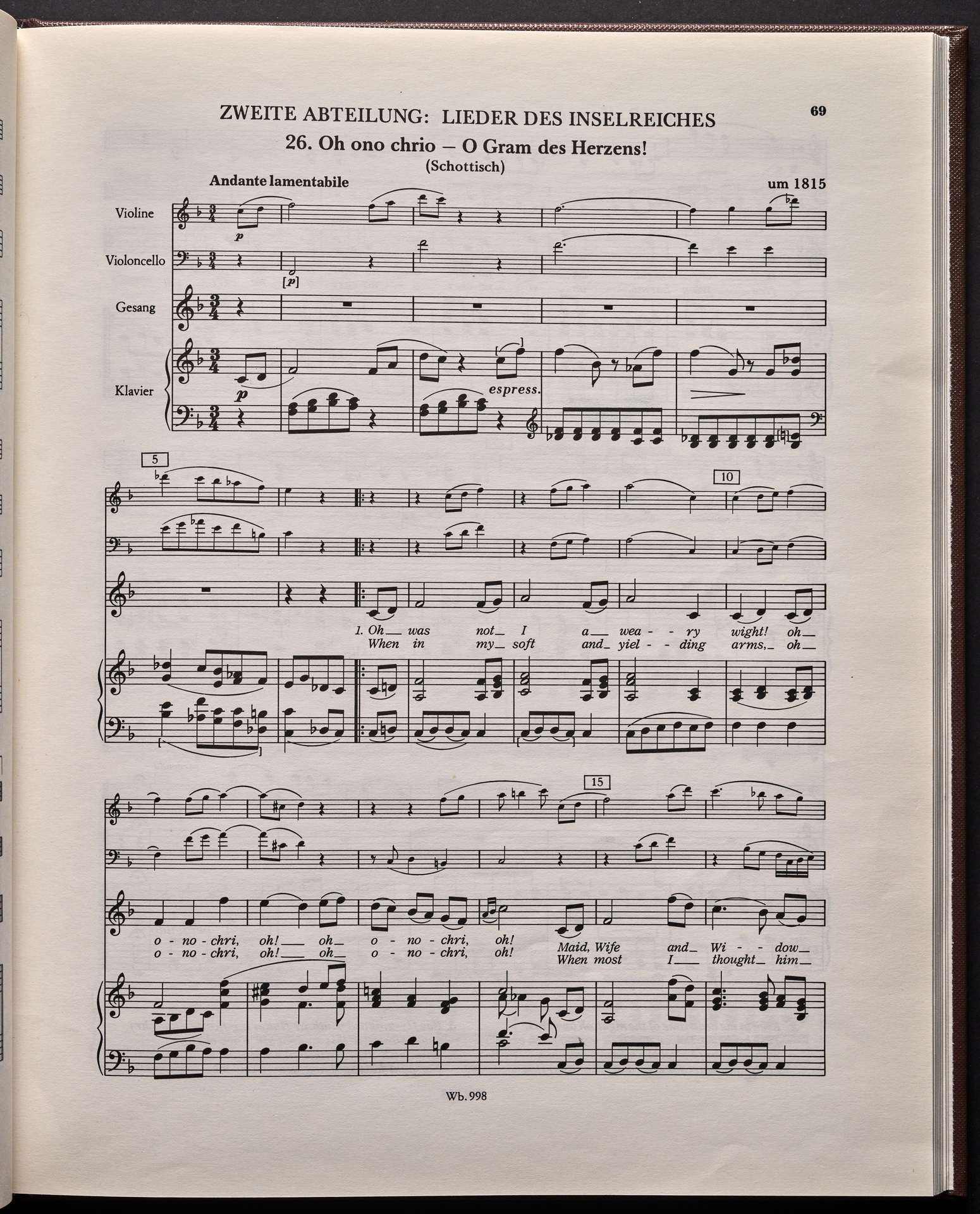 Ludwig van Beethoven, "Castle O'Neill", Lied für 4 Singstimmen, Violine, Violoncello und Klavier WoO 154, 62, Breitkopf und Härtel, 998