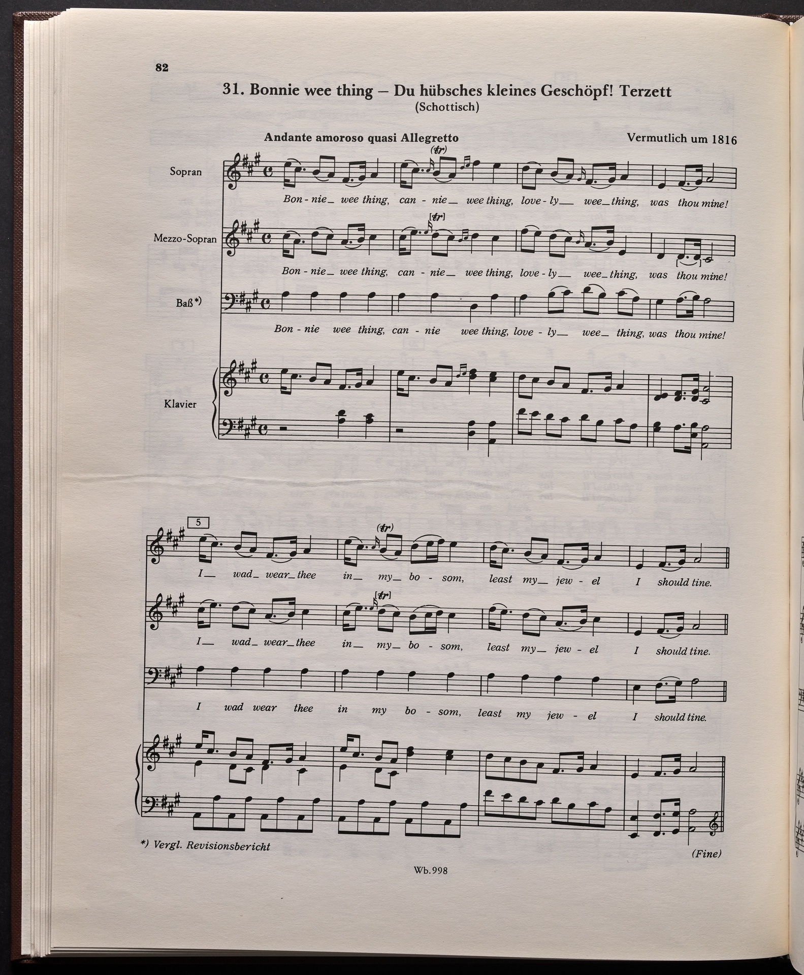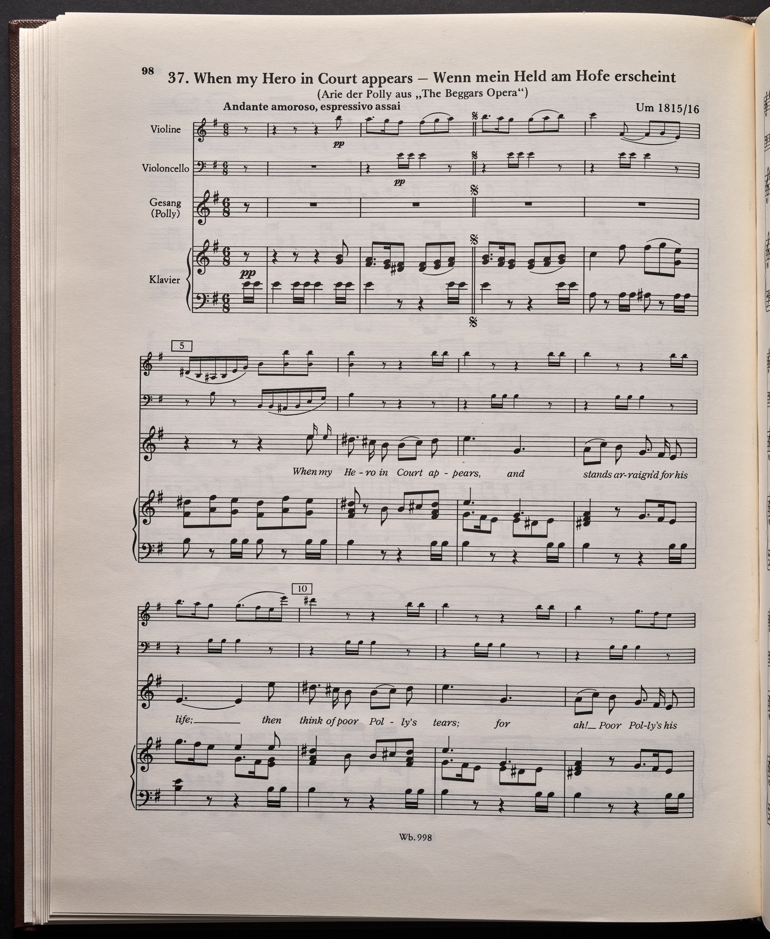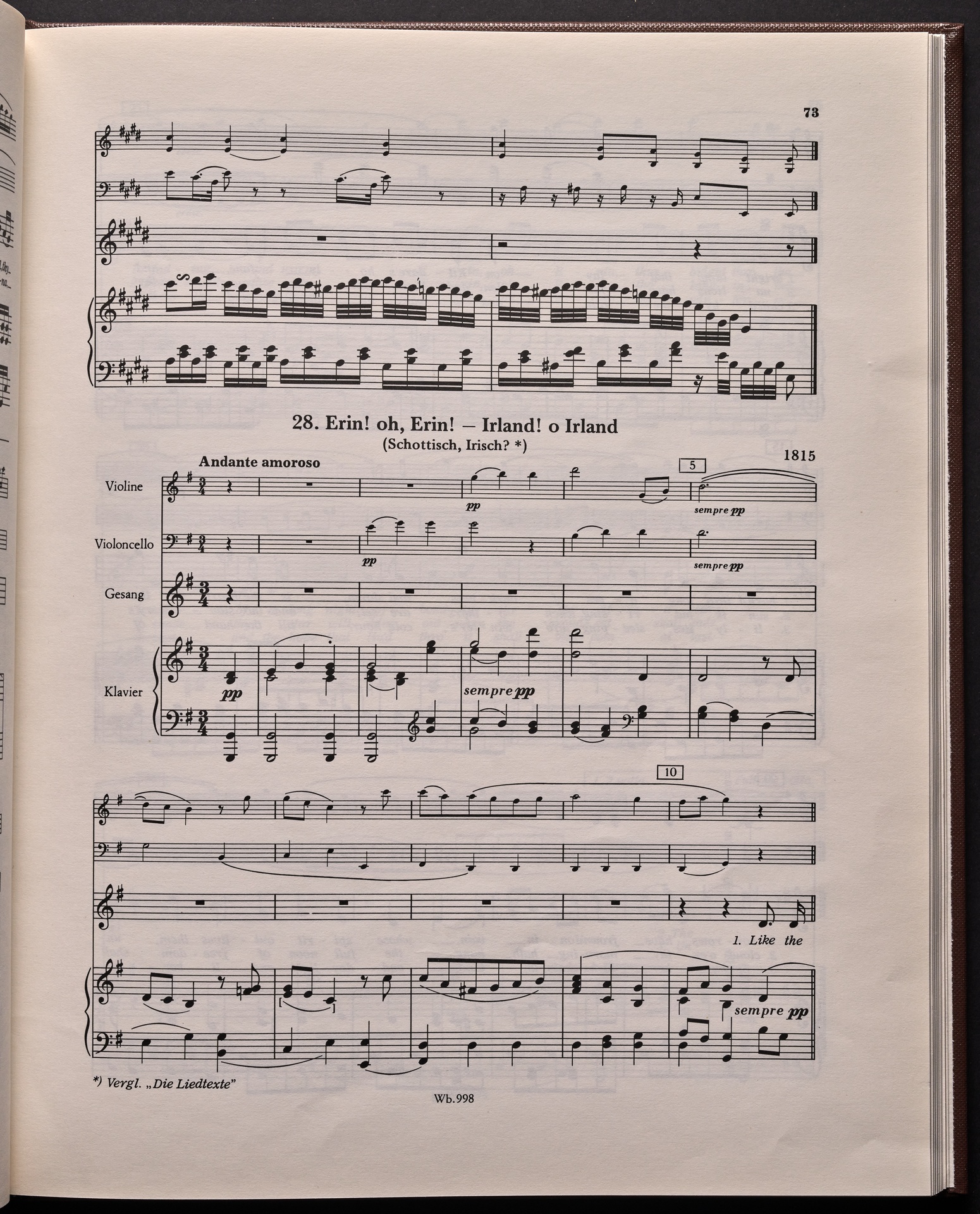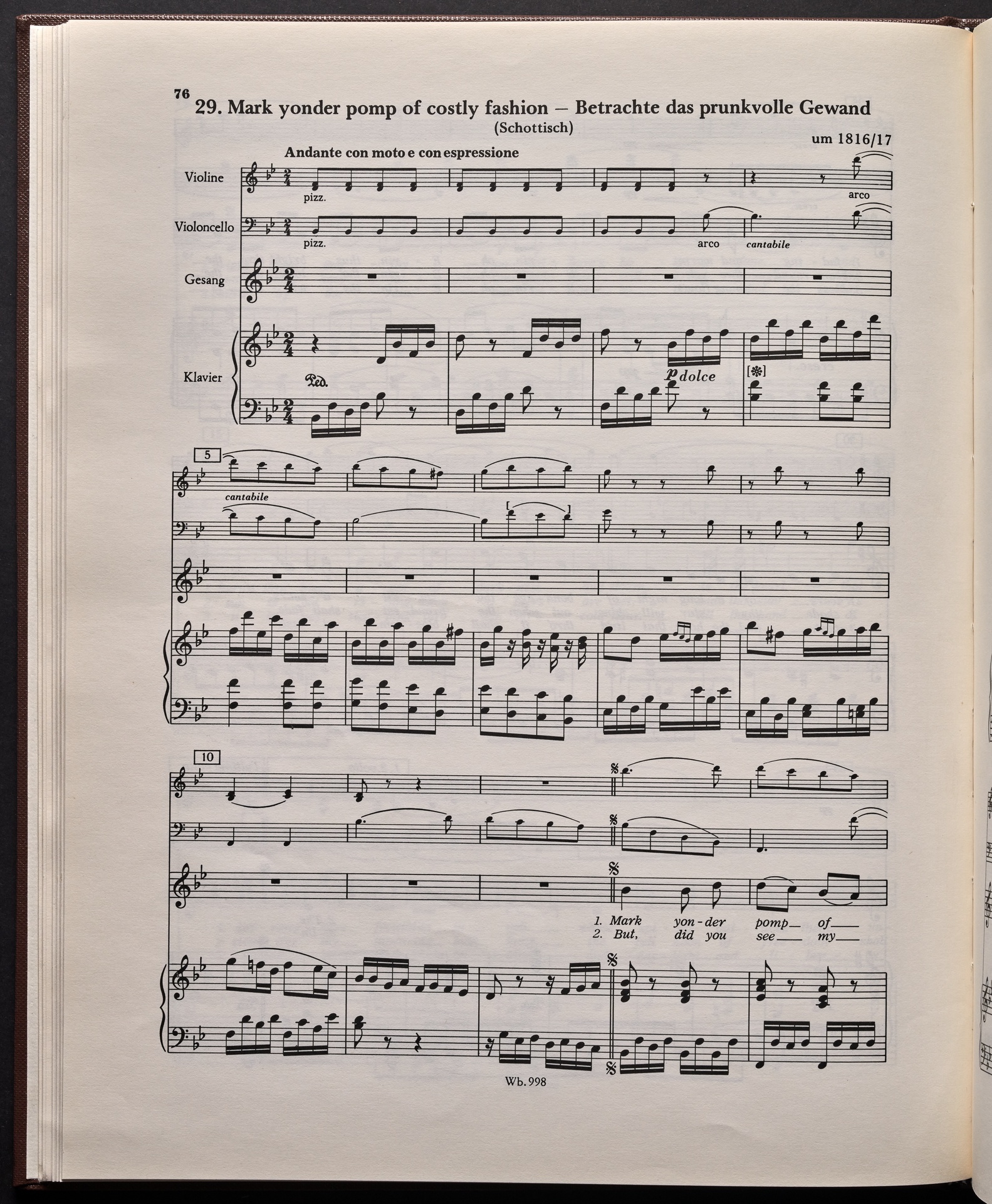 Ludwig van Beethoven, "Castle O'Neill", Lied für 4 Singstimmen, Violine, Violoncello und Klavier WoO 154, 62, Breitkopf und Härtel, 998