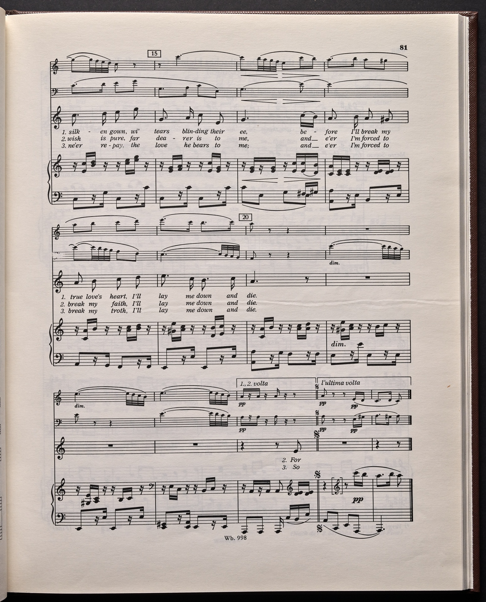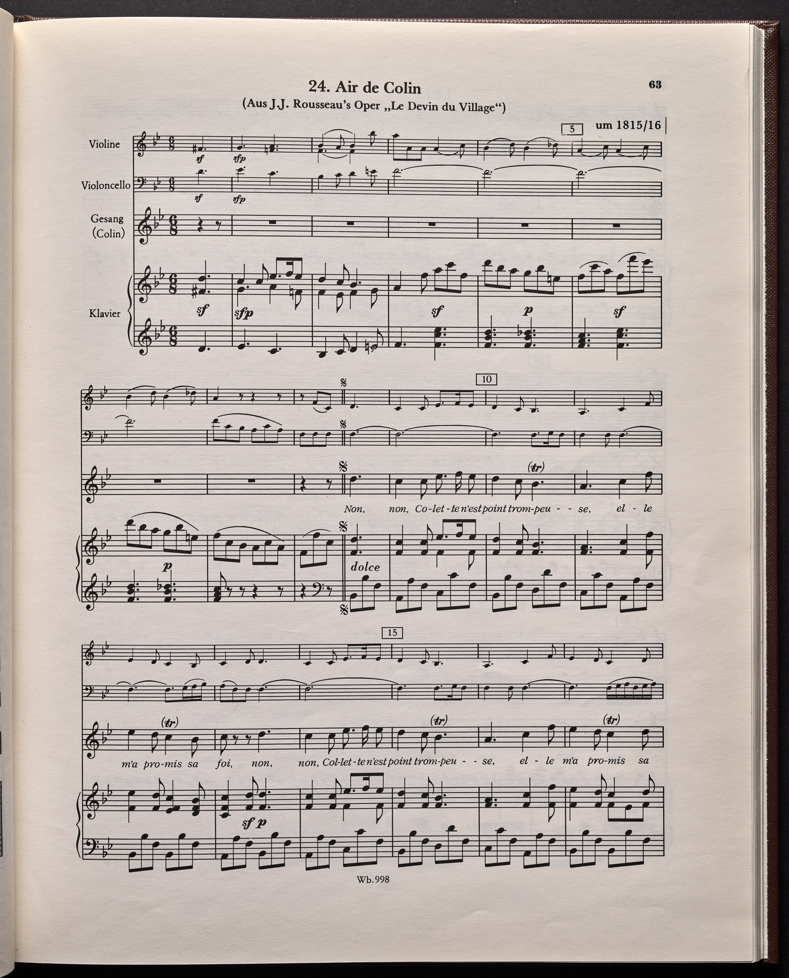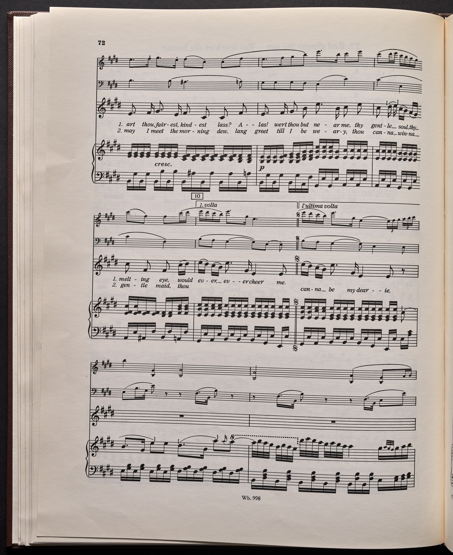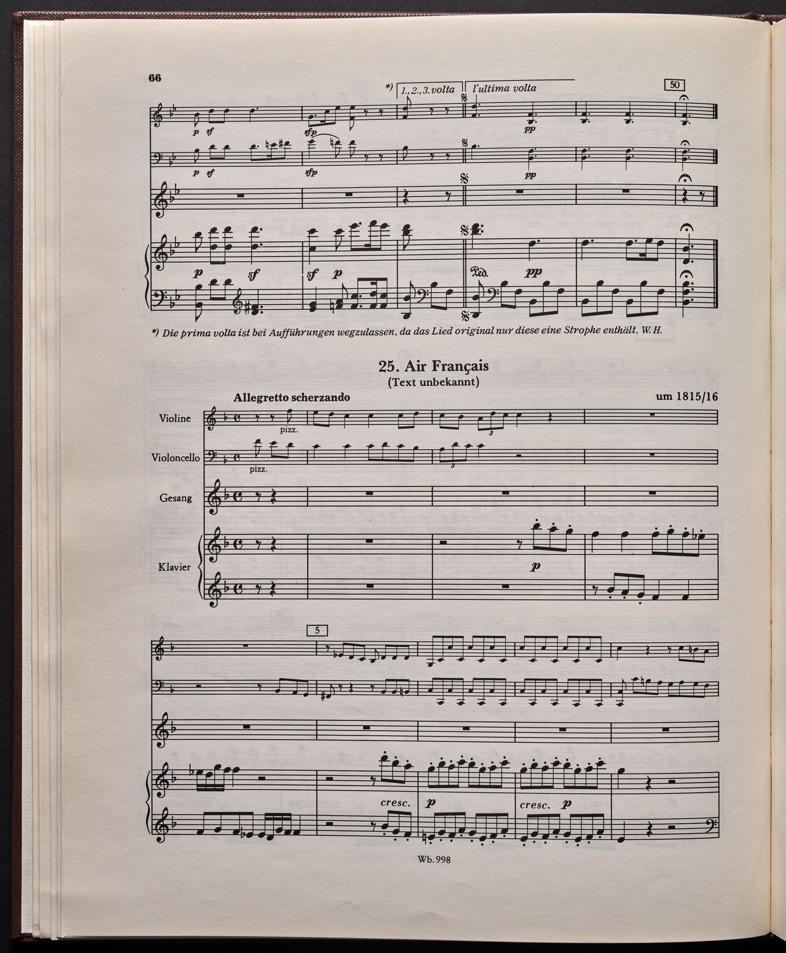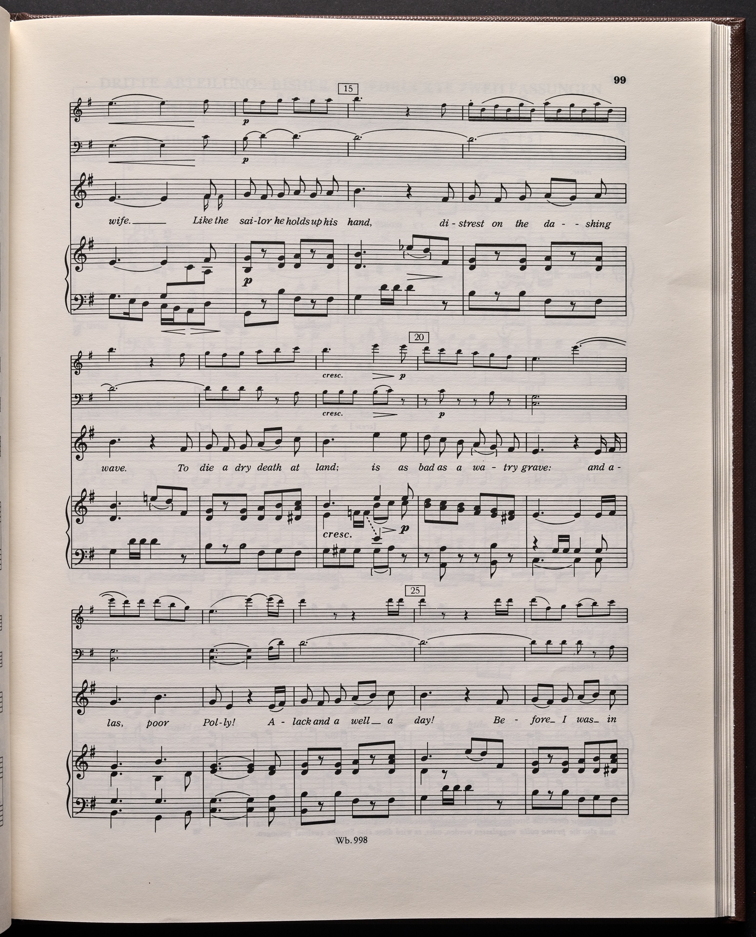 Ludwig van Beethoven, "Castle O'Neill", Lied für 4 Singstimmen, Violine, Violoncello und Klavier WoO 154, 62, Breitkopf und Härtel, 998
