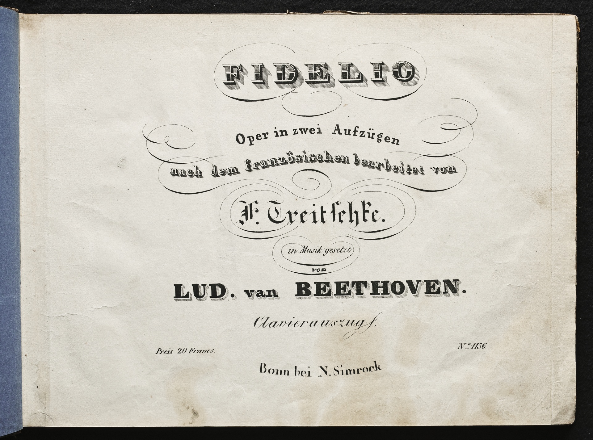 Ludwig van BeethovenGeorg Friedrich Treitschke, Fidelio op. 72, 3. Fassung 1814, Klavierauszug, Simrock, 1136