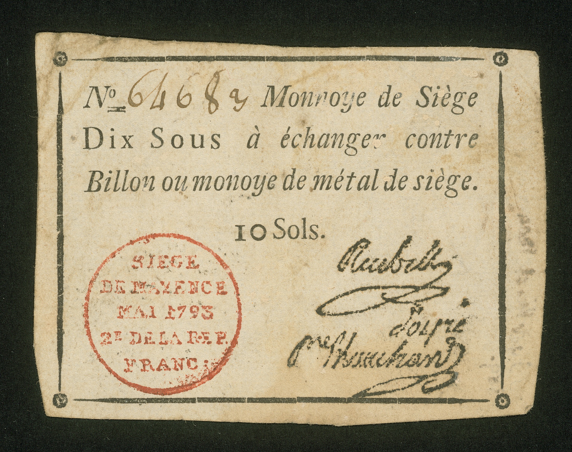 Banknote der Mainzer Republik über 10 Sous, 1793