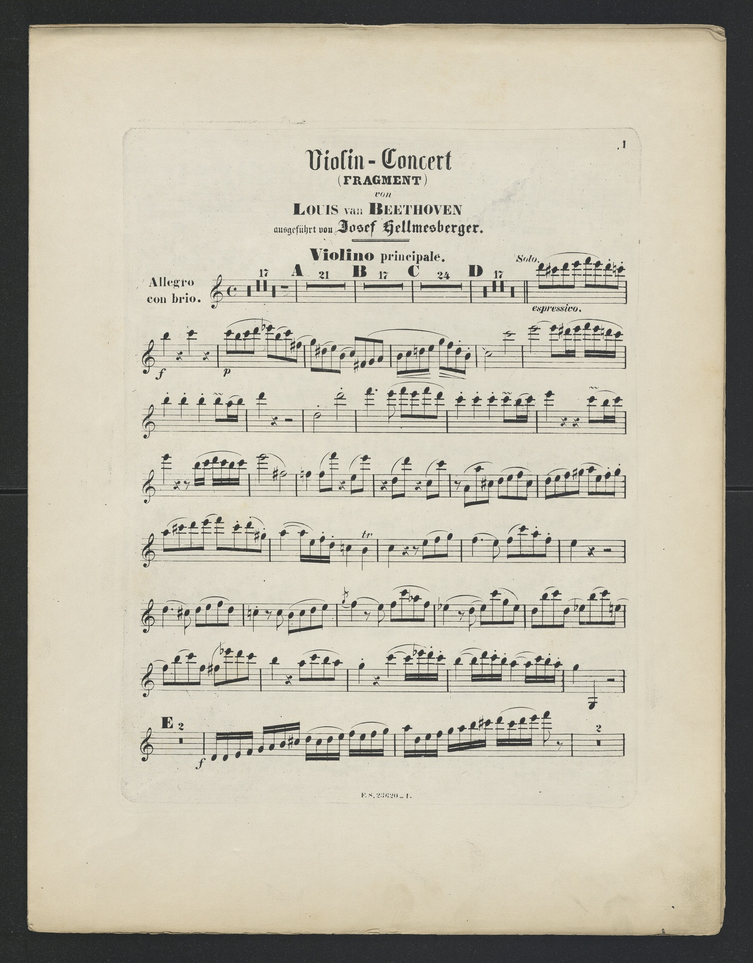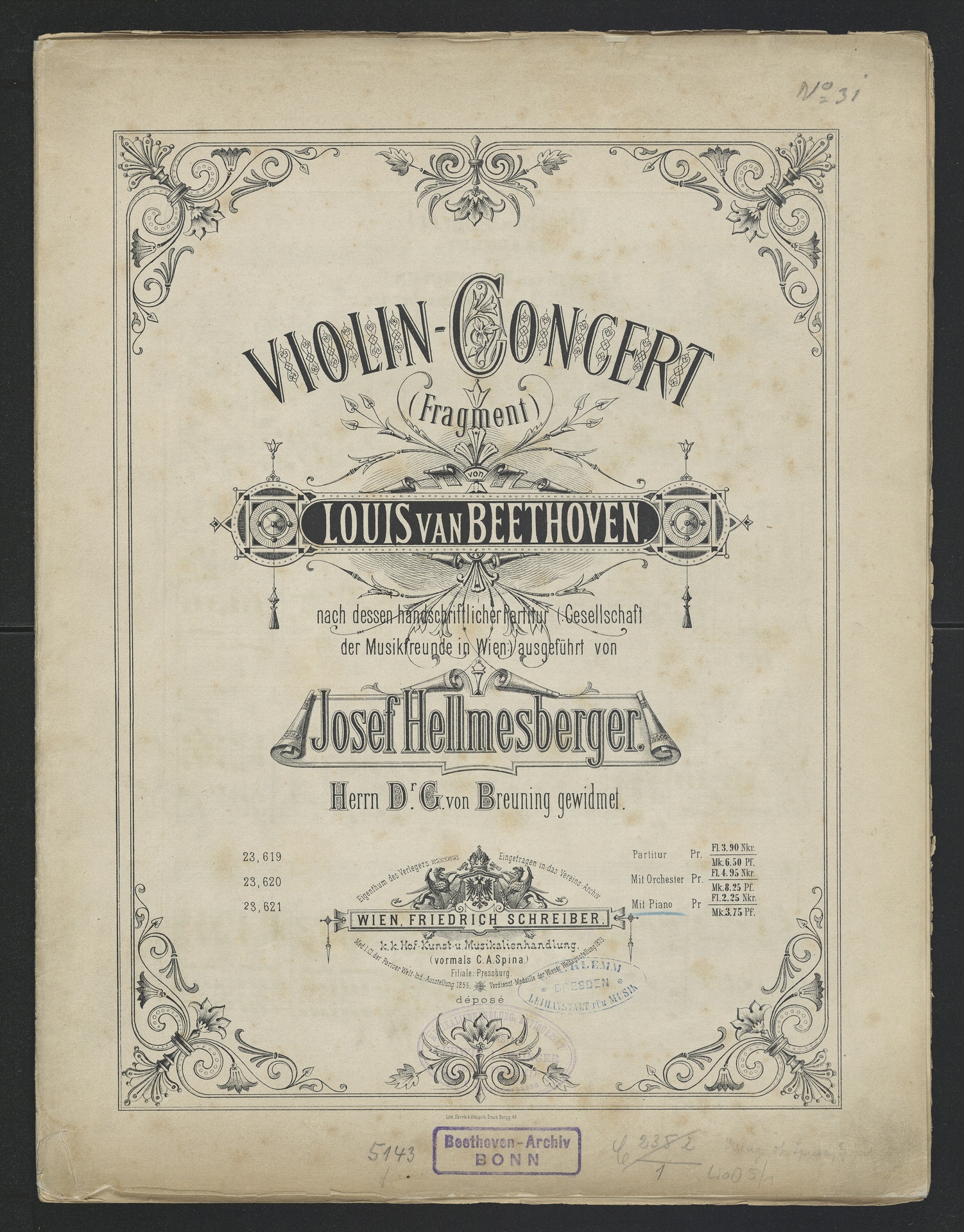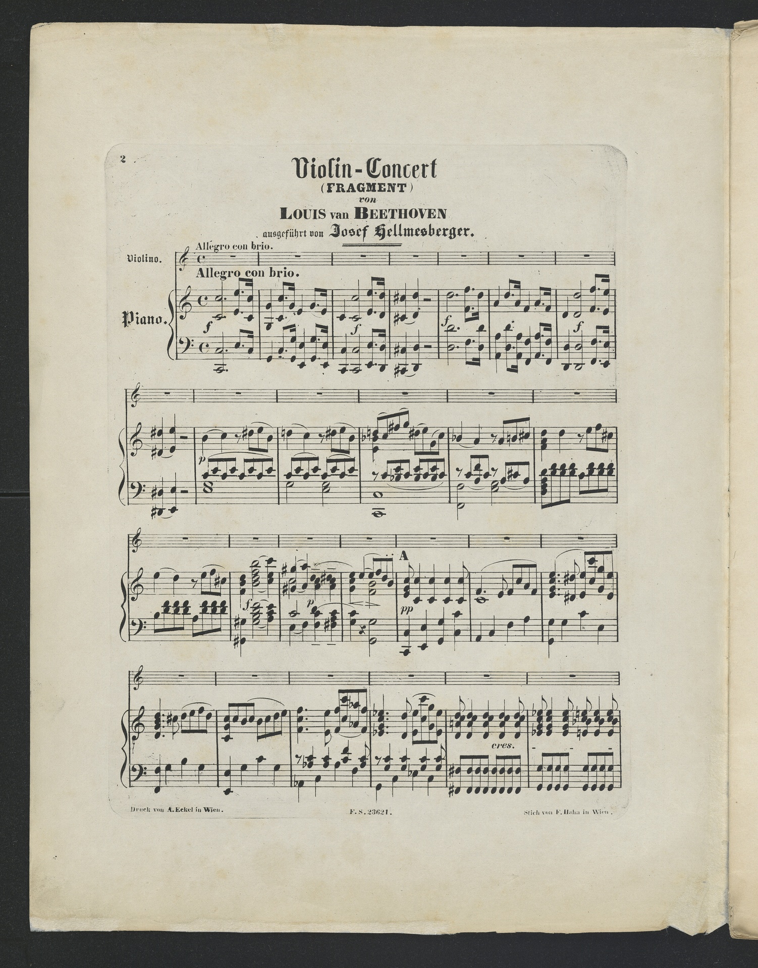 Ludwig van Beethoven, Konzertsatz für Violine und Orchester (C-Dur) WoO 5, Bearbeitung für Klavier, Schreiber, 23621