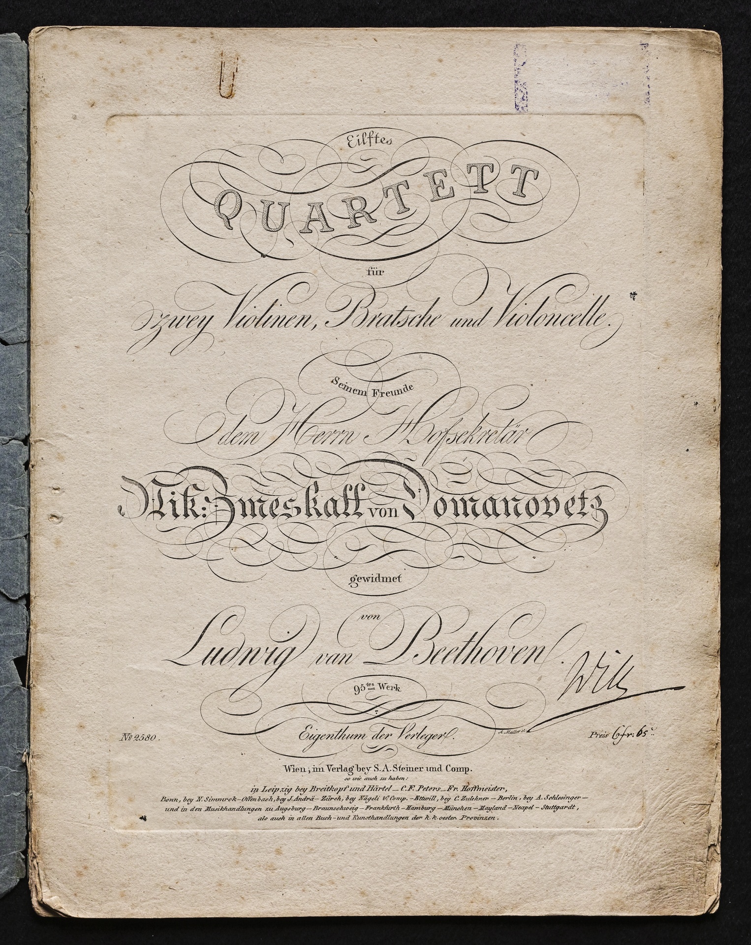Ludwig van Beethoven, Quartett für 2 Violinen, Viola, Violoncello (f-Moll) op. 95, Stimmen, Steiner, 2580