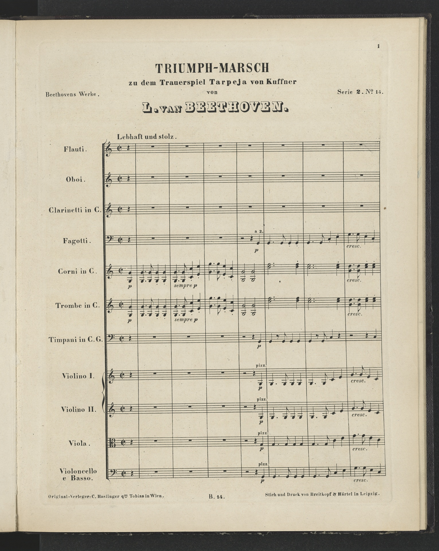 Ludwig van Beethoven, Triumphmarsch zu Christoph Kuffners Trauerspiel "Tarpeja" (C-Dur) WoO 2a, Partitur, Breitkopf und Härtel, 14