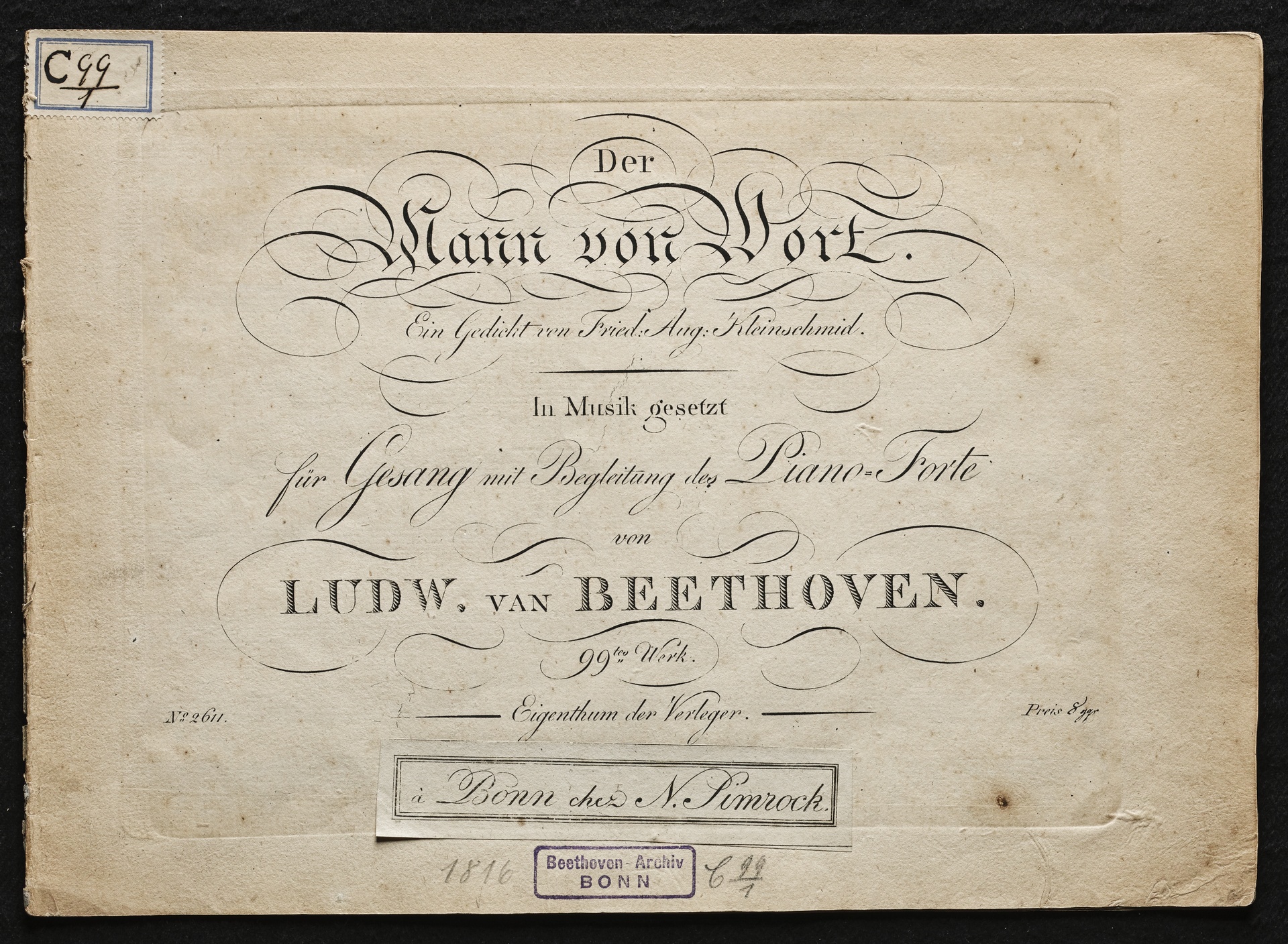 Ludwig van BeethovenFriedrich August Kleinschmid, "Der Mann von Wort", Lied für Singstimme und Klavier op. 99, Steiner, 2611