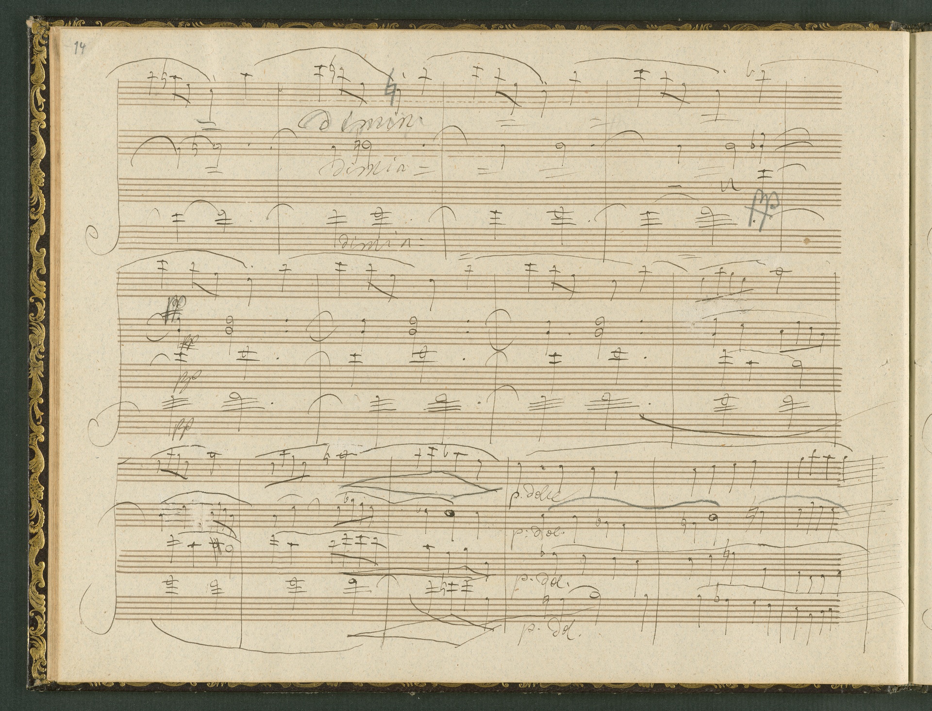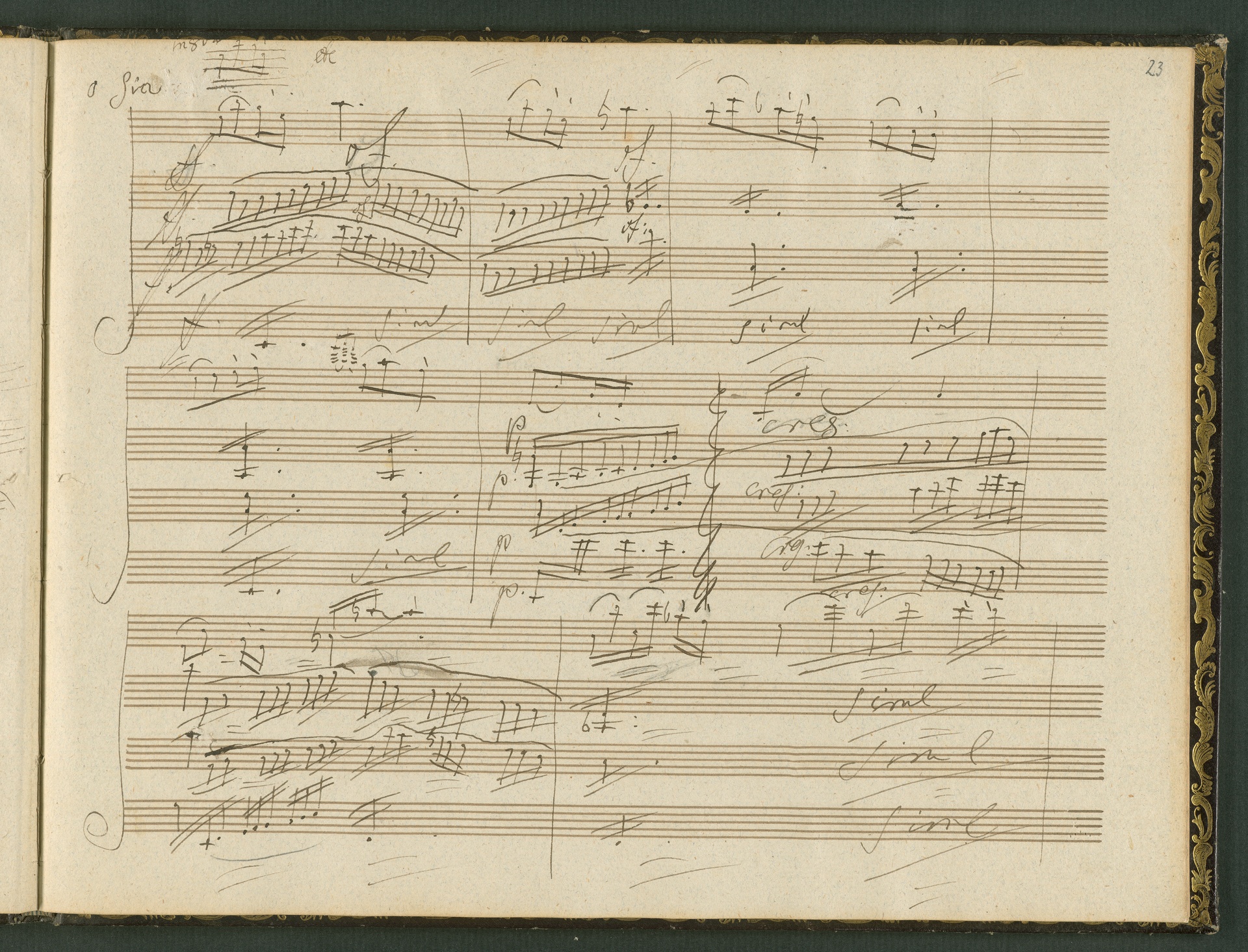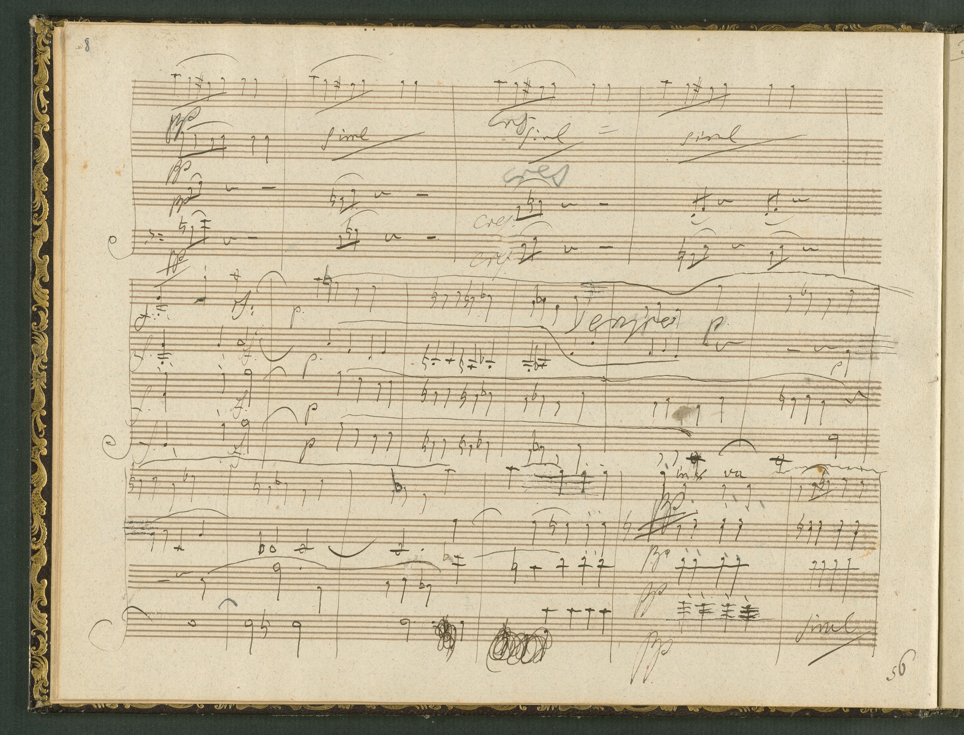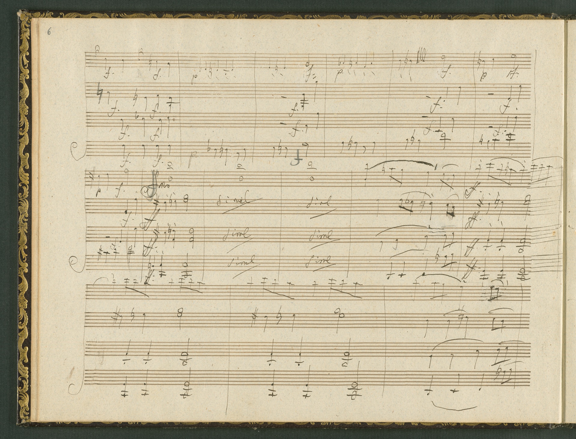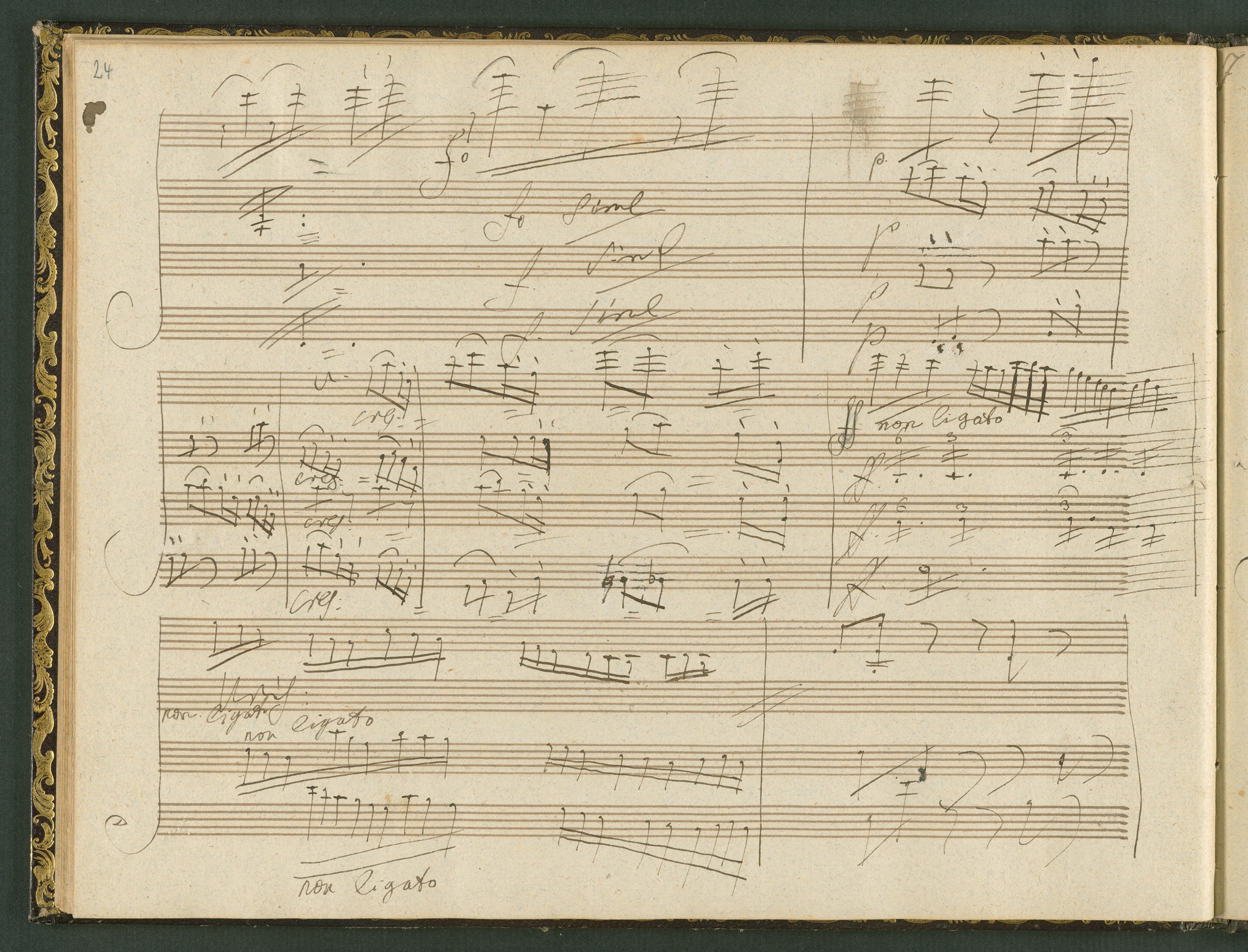 The autograph score of the String Quartet op. 127 (the last movement of which can be seen here) was probably acquired by Domenico Artaria, a Viennese publisher and music dealer, at the auction of Beethoven's estate following the composer's death. At this time the manuscript was still complete. Artaria, who bought a great deal of music at the auction, probably hoped to make some money by printing unknown works by the composer. The autograph scores could also be sold to collectors, which is what happened to the String Quartet op. 127. In the years that followed he sold it piece by piece to different interested parties. This is why the individual movements are now preserved in collections held at different libraries. The manuscript is a clean copy: it is very clear, contains almost no corrections, is legible and relatively consistent. (J.R.)