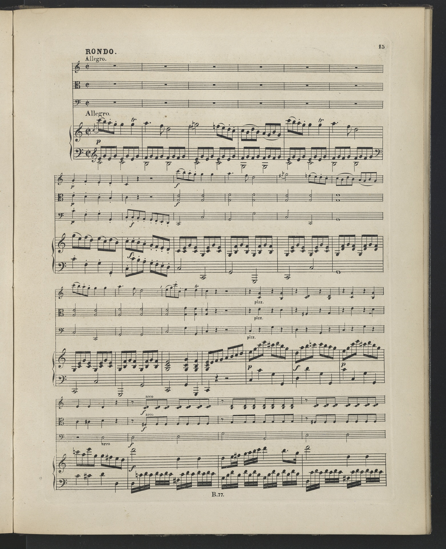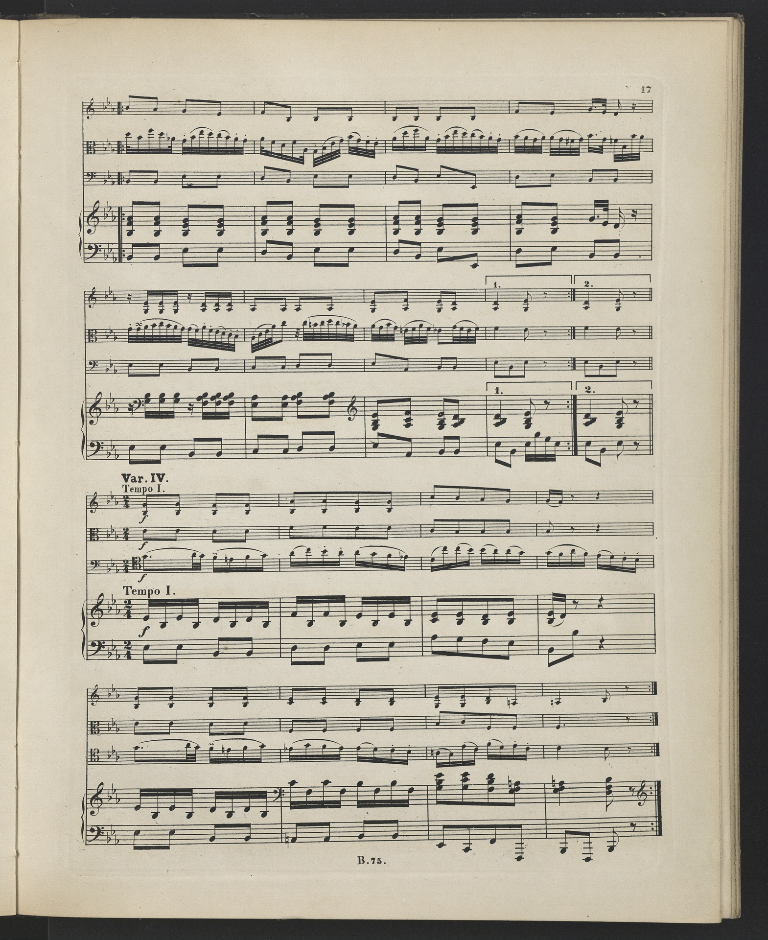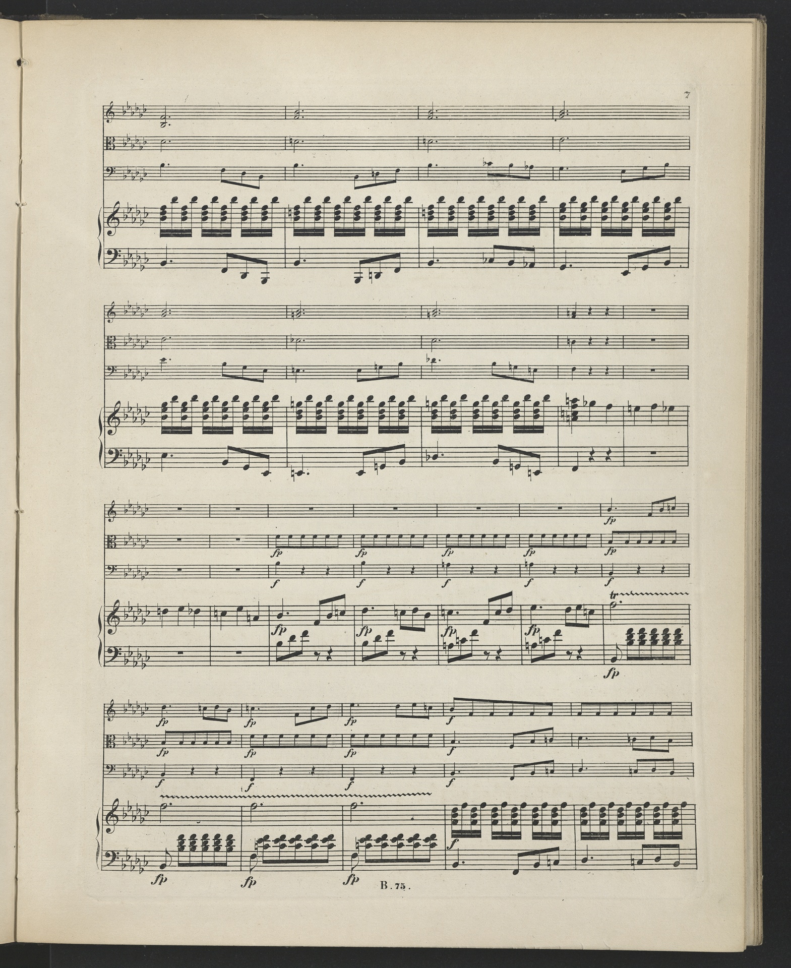 Ludwig van Beethoven, Quartette für Klavier, Violine, Viola, Violoncello (Es-Dur, D-Dur, C-Dur) WoO 36, 1-3, Partitur, Breitkopf und Härtel, 75-77