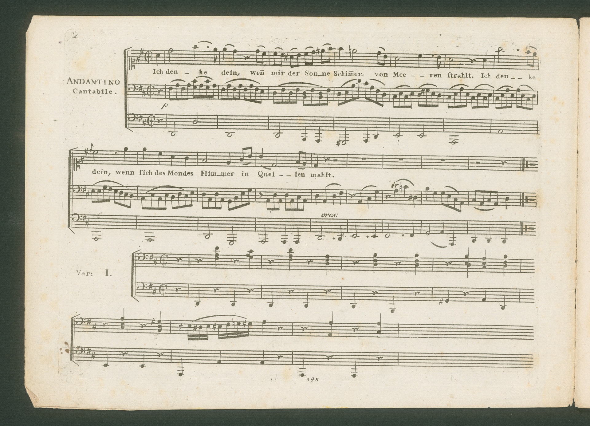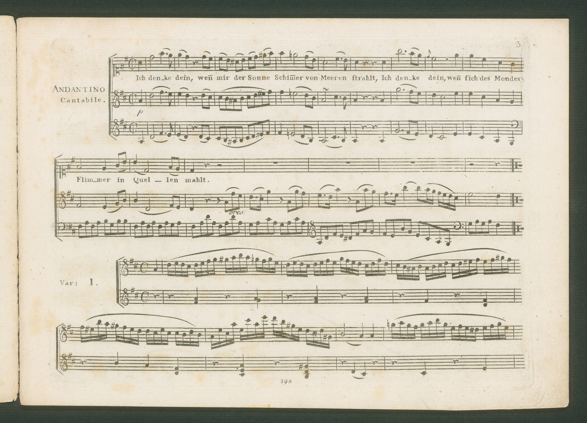 Ludwig van Beethoven, "Ich denke dein", Lied für Singstimme und Klavier zu 4 Händen und Variationen für Klavier zu 4 Händen (D-Dur) WoO 74, Bureau des Arts et d'Industrie, 398