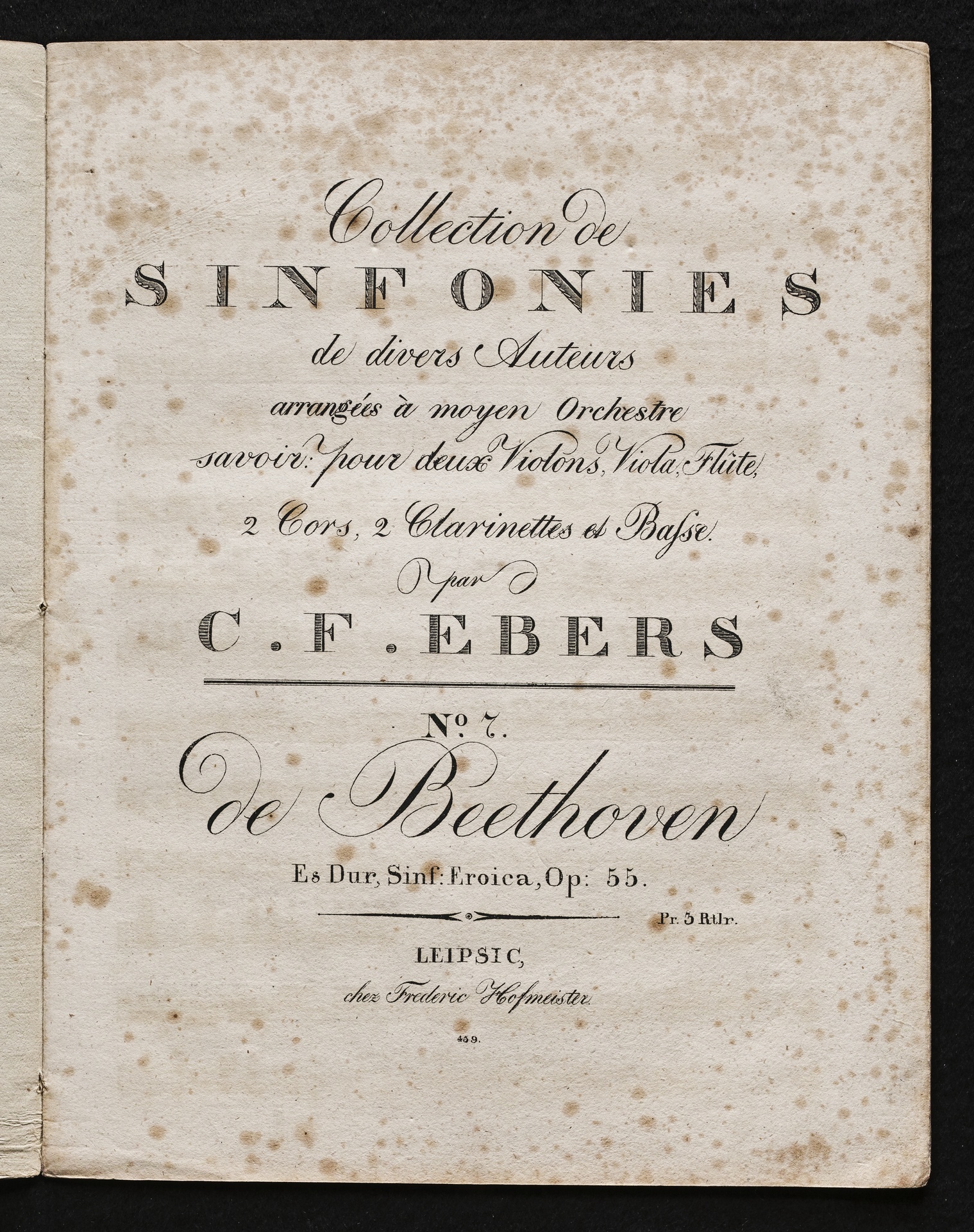 Ludwig van Beethoven, Sinfonie Nr. 3 (Es-Dur) op. 55 (Eroica), Bearbeitung für Nonett von Carl Friedrich Ebers, Stimmen, Hofmeister, 439
