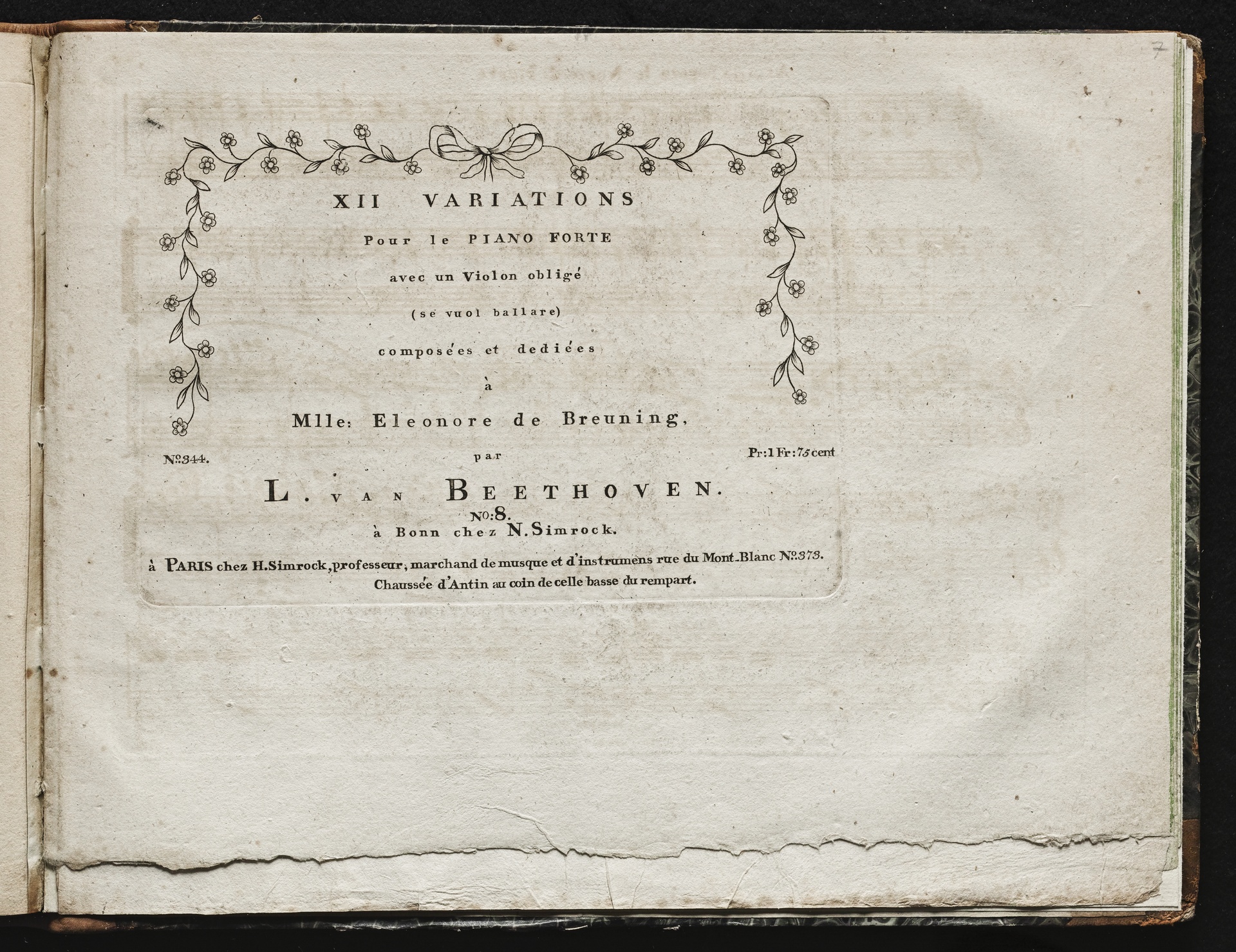 Ludwig van Beethoven, Variationen über die Cavatina "Se vuol ballare" aus Wolfgang Amadeus Mozarts Oper "Le nozze di Figaro" für Klavier und Violine (F-Dur) WoO 40, Stimmen, Simrock, 344