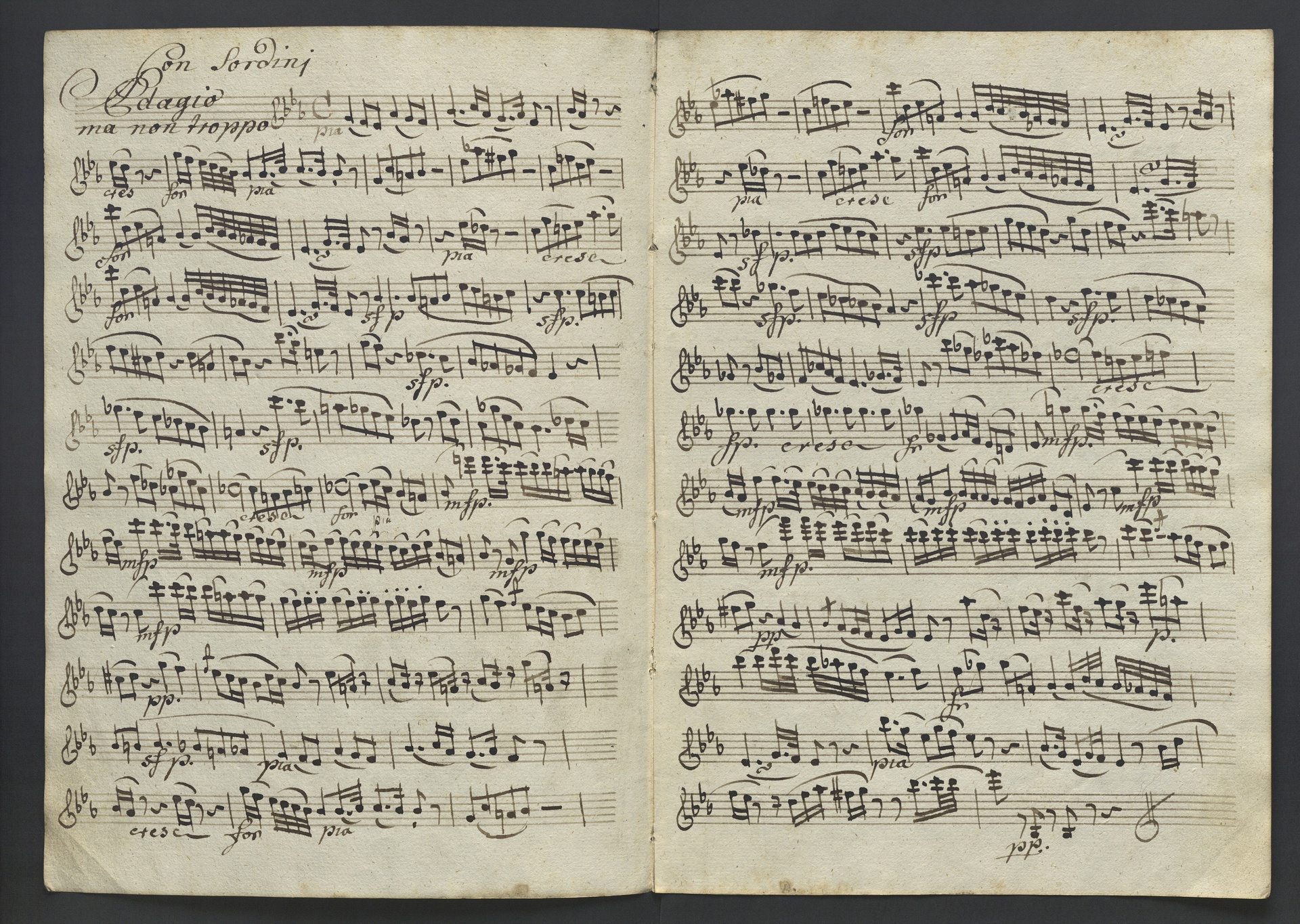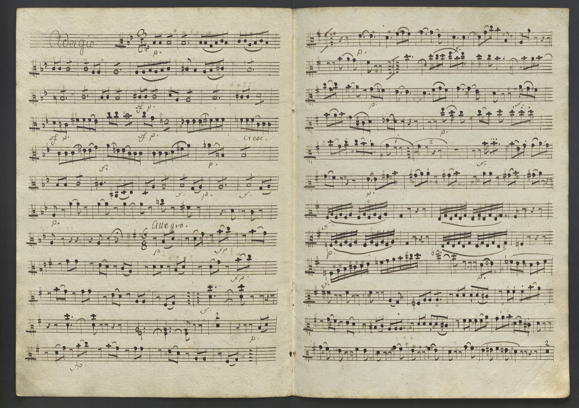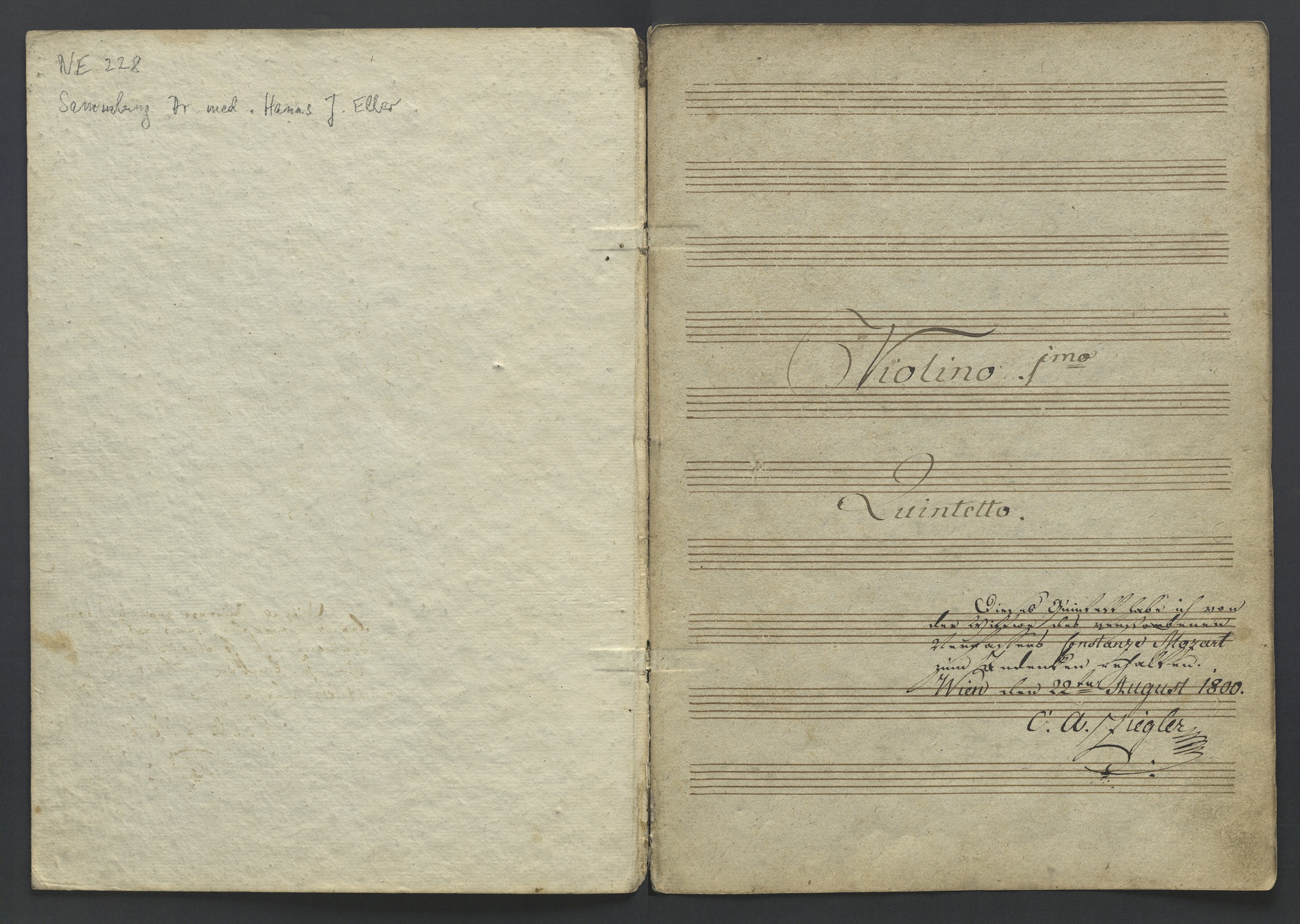 Wolfgang Amadeus Mozart, Zwei Quintette für zwei Violinen, zwei Violen und Violoncello (C-Dur, g-Moll) KV 515-516, Stimmen, Abschrift