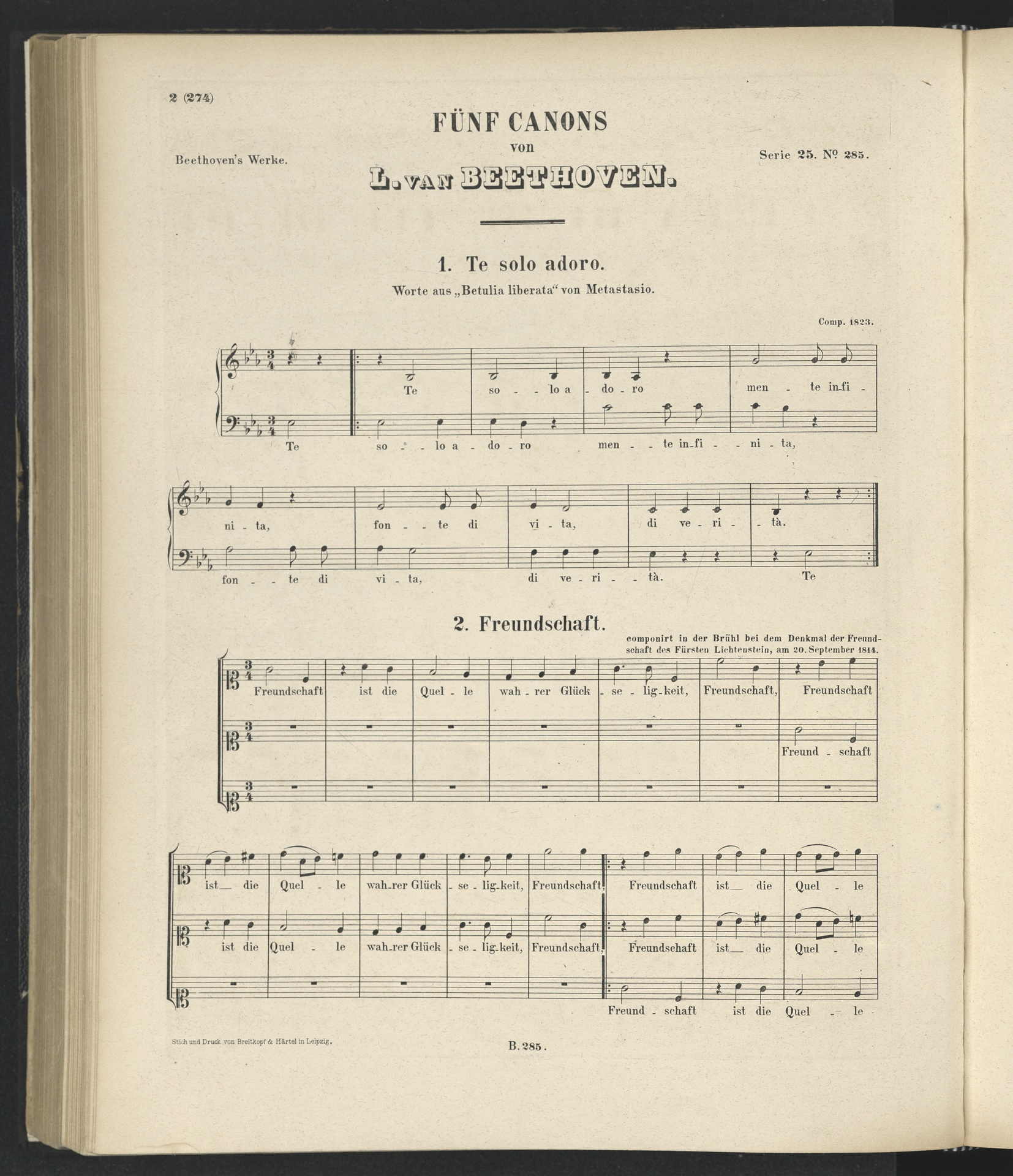 Ludwig van BeethovenPietro Metastasio, "Te solo adoro", zweistimmiger Kanon WoO 186, Partitur, Breitkopf und Härtel, 285