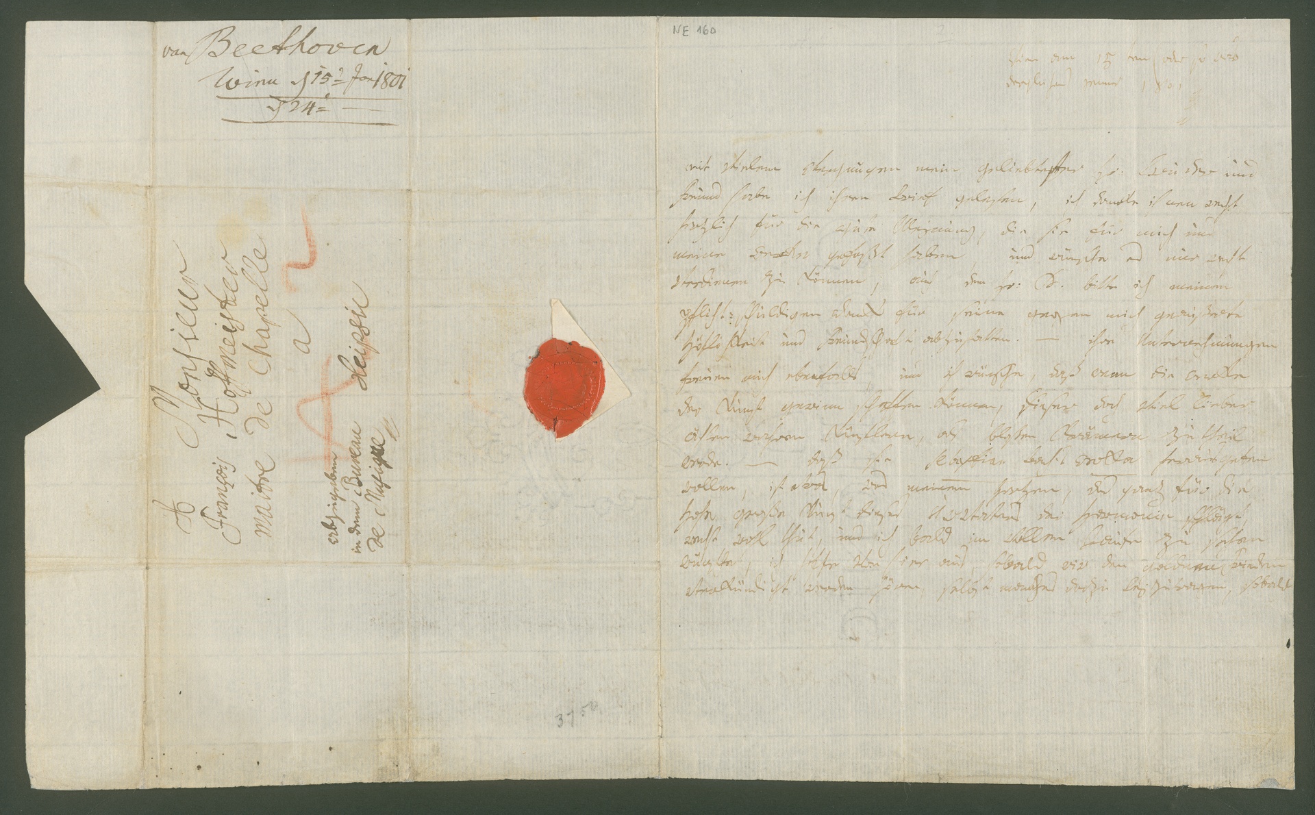 Ludwig van Beethoven, Brief an Franz Anton Hoffmeister in Leipzig, Wien, 15. Januar 1801, Autograph