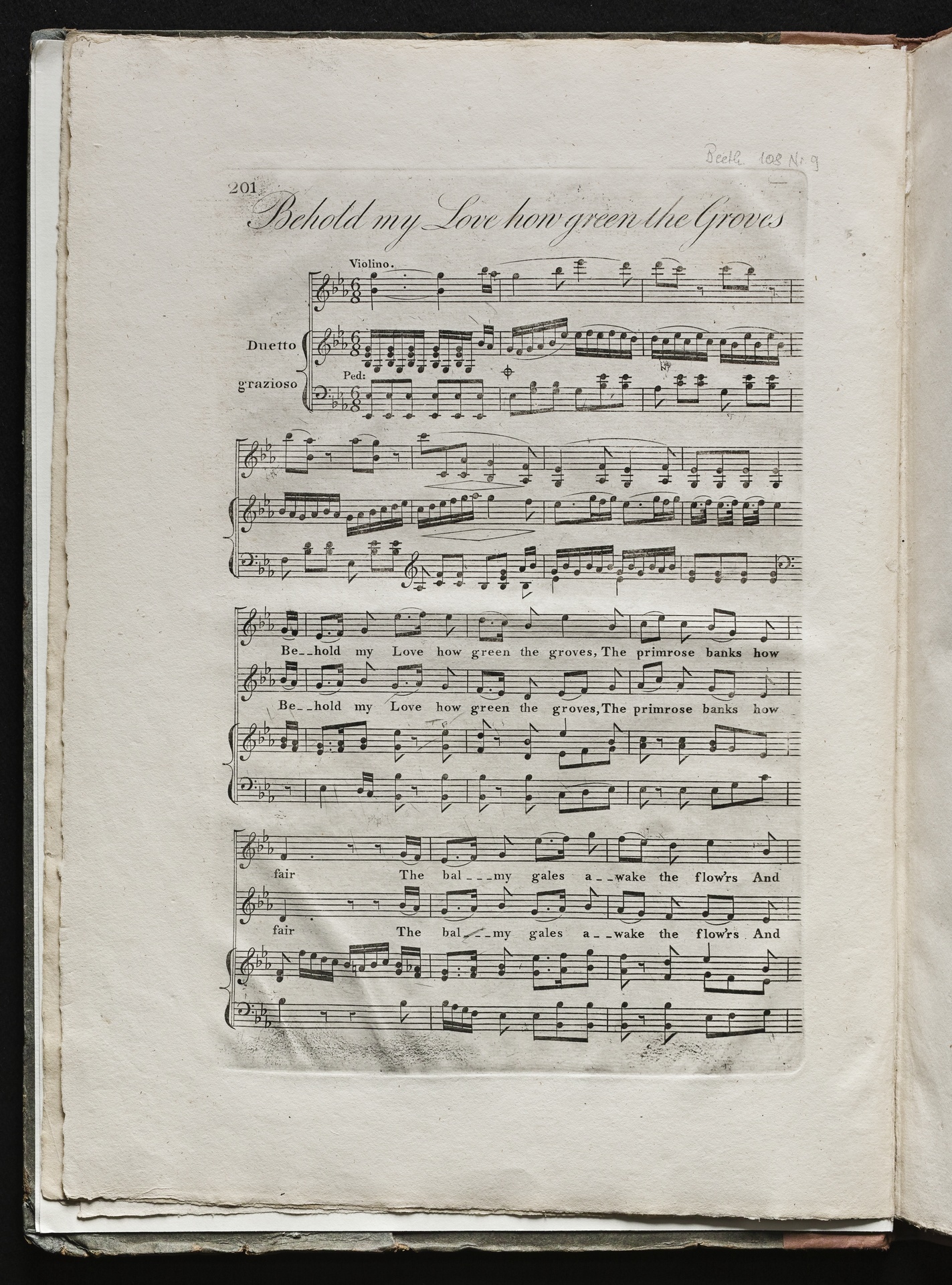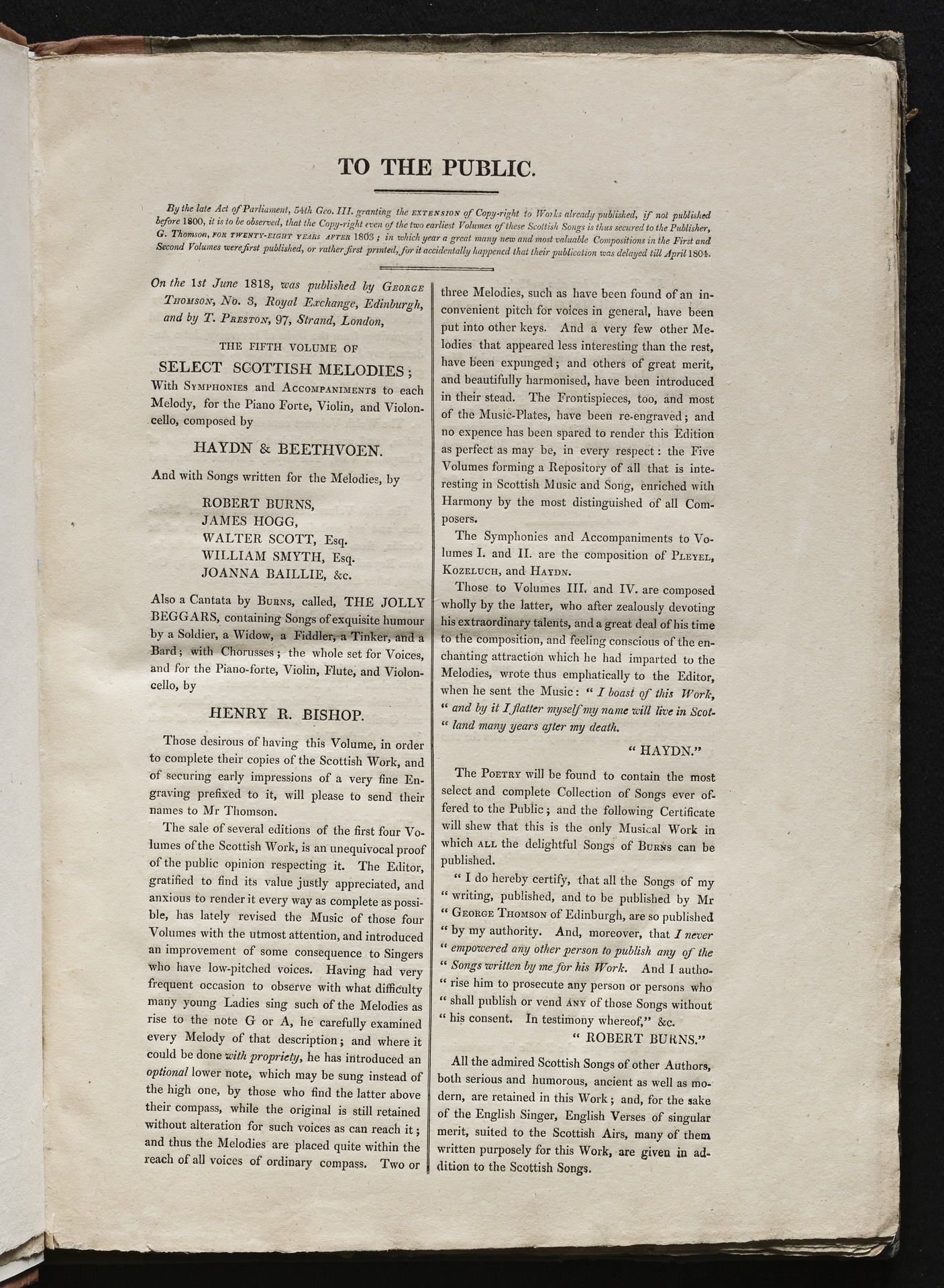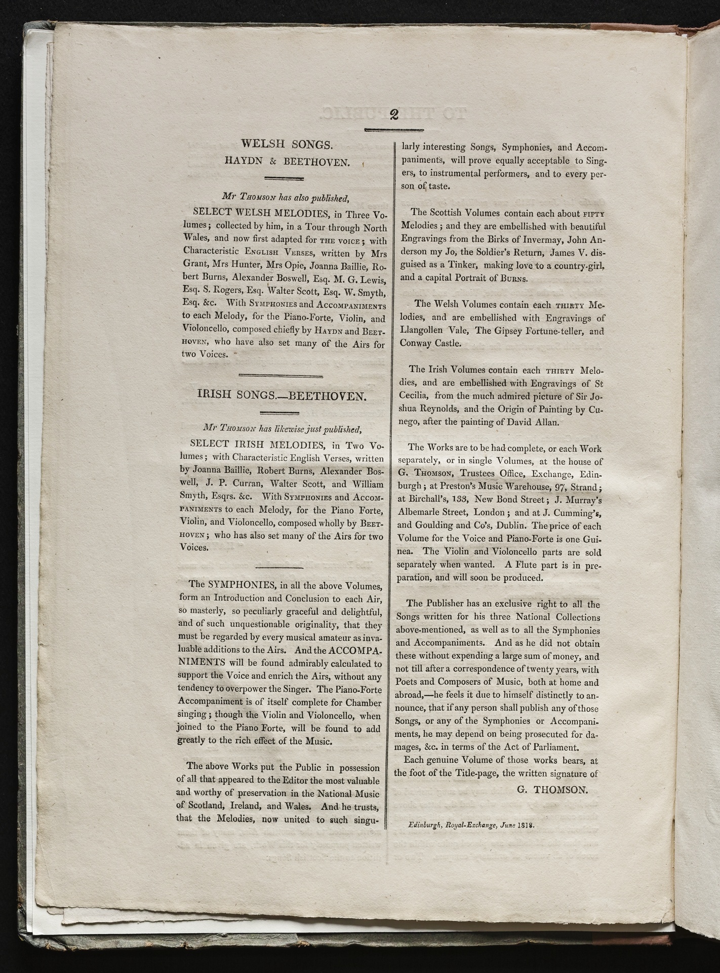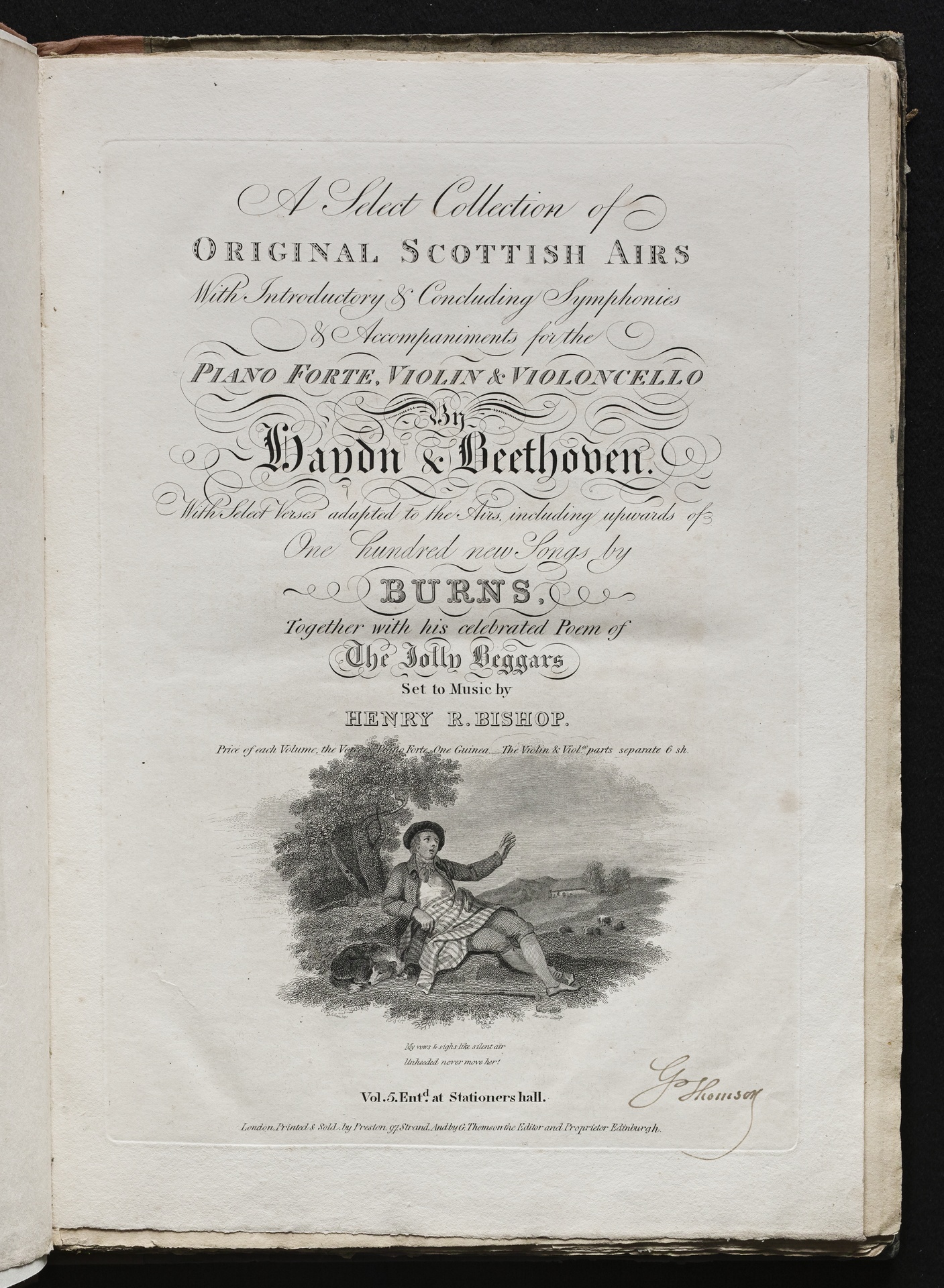 Ludwig van Beethoven, "Schottische Lieder" für eine oder mehrere Singstimmen, Violine, Violoncello und Klavier op. 108, 1-25 und von Haydn, Partitur, Stimmen, Thomson