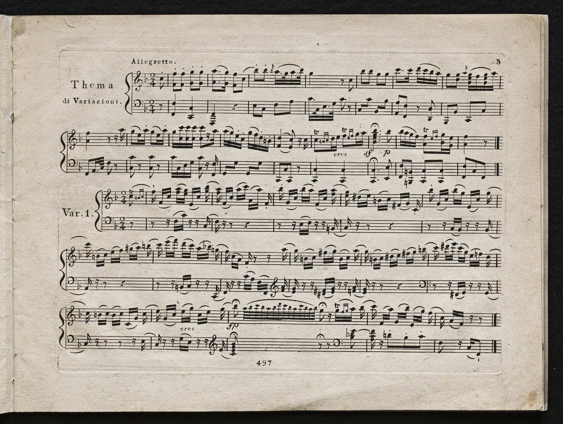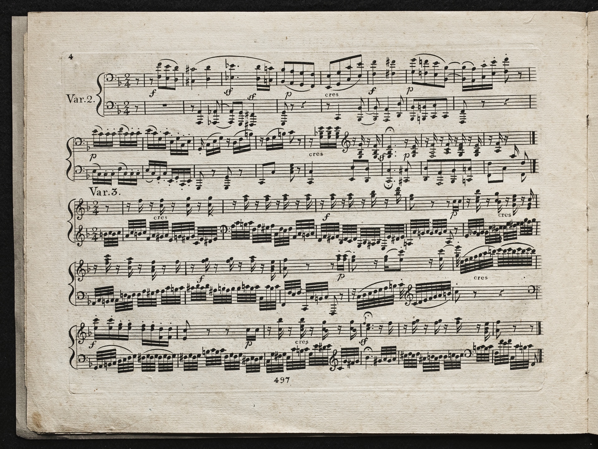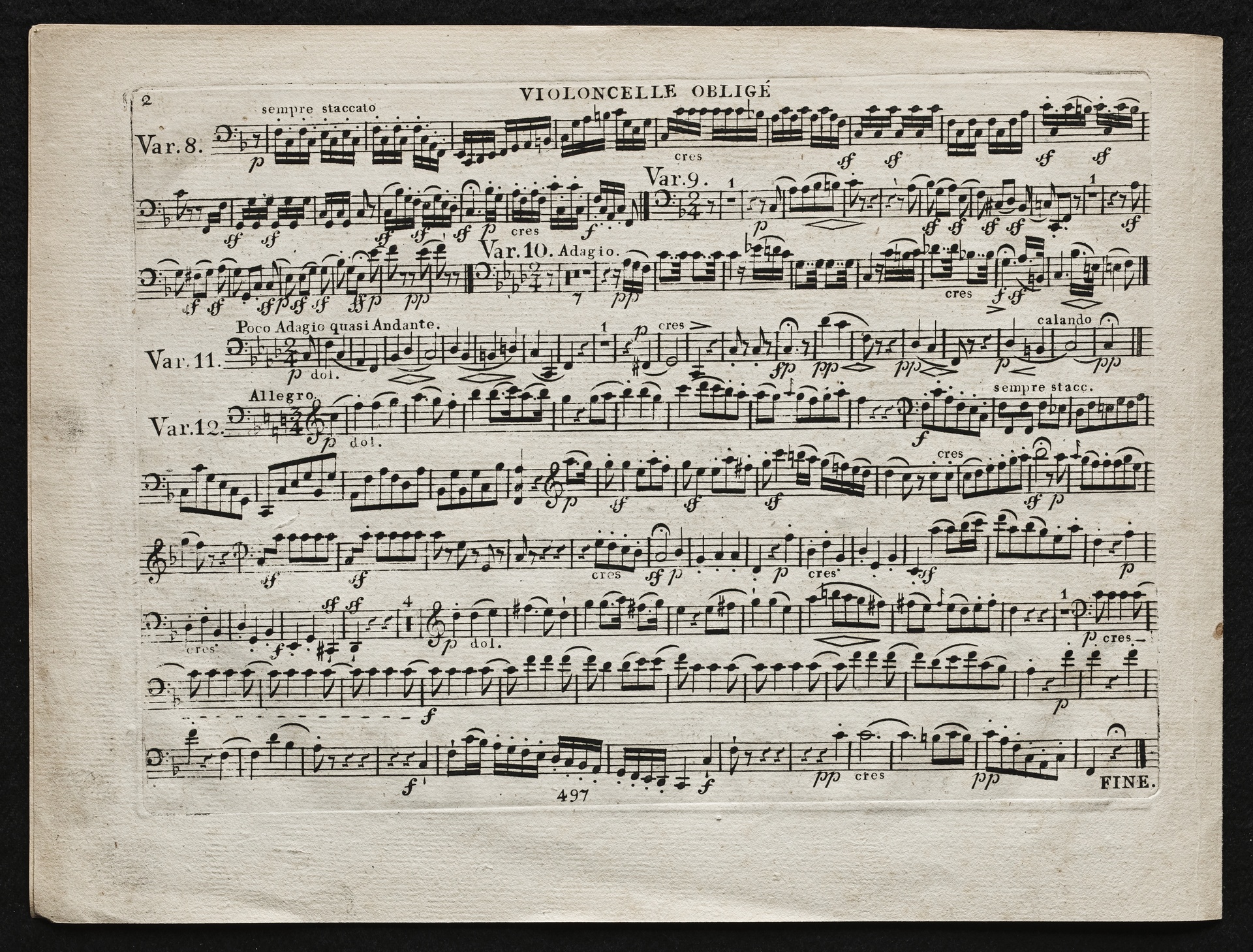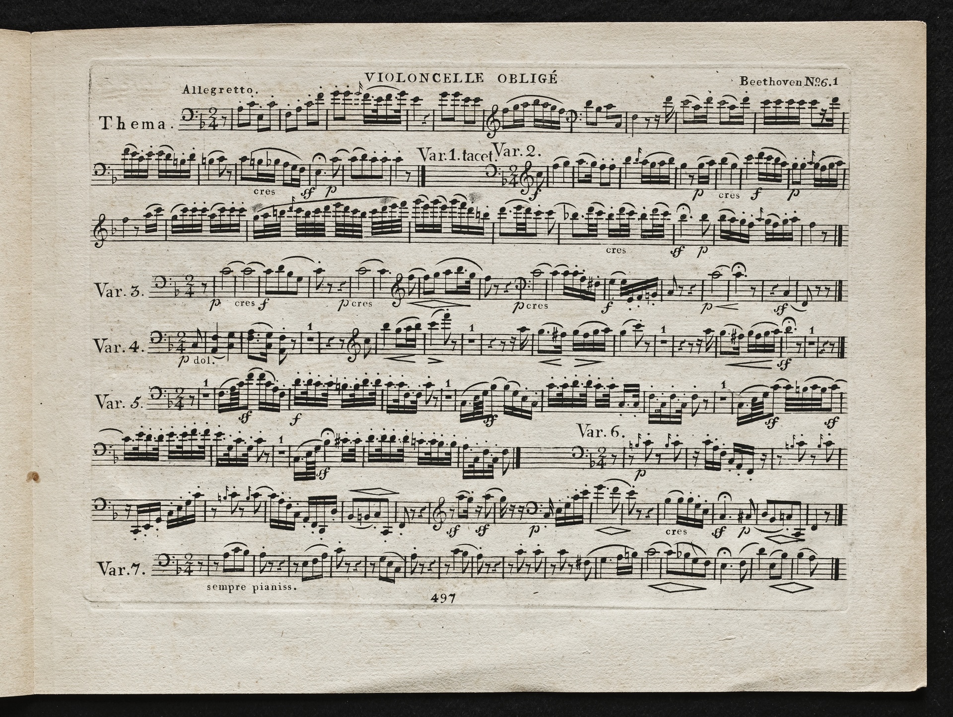 Ludwig van Beethoven, Variationen über "Ein Mädchen oder Weibchen" aus Wolfgang Amadeus Mozarts Oper "Die Zauberflöte" für Klavier und Violoncello (F-Dur) op. 66, Stimmen, Kühnel, 497