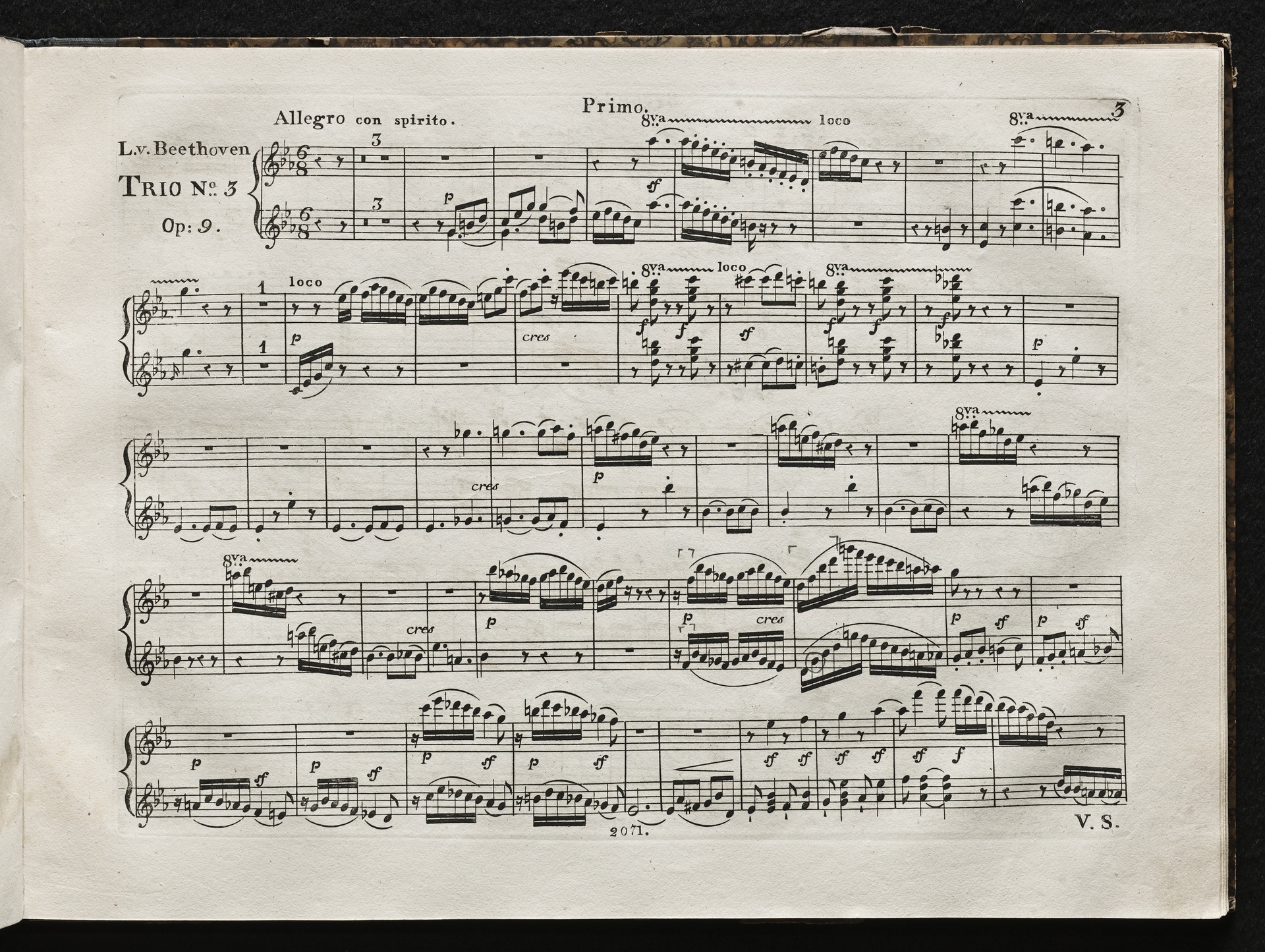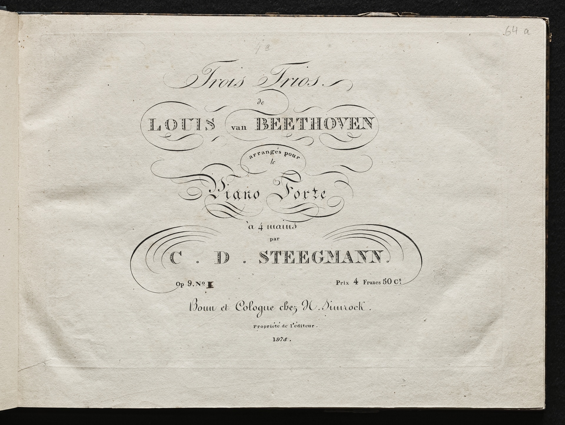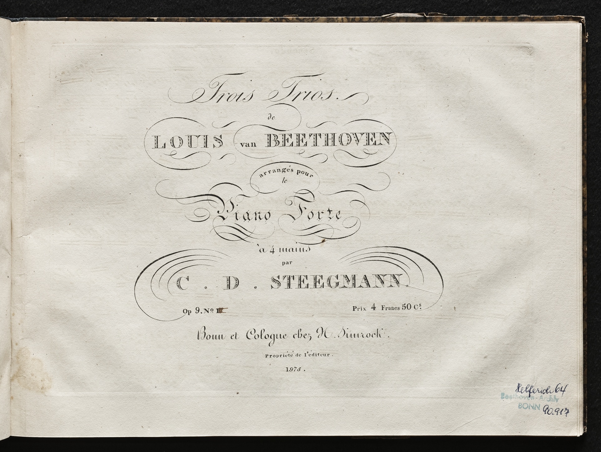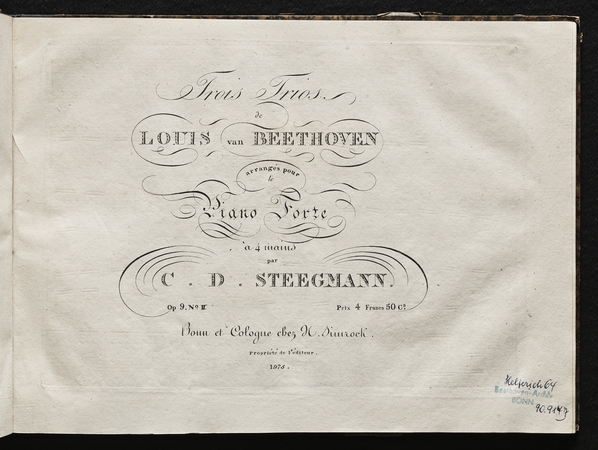 Ludwig van Beethoven, Trios für Violine, Viola, Violoncello (G-Dur, D-Dur, c-Moll) op. 9, 1-3, Bearbeitung für Klavier zu 4 Händen von Carl David Stegmann, Simrock 1975, 2012, 2071