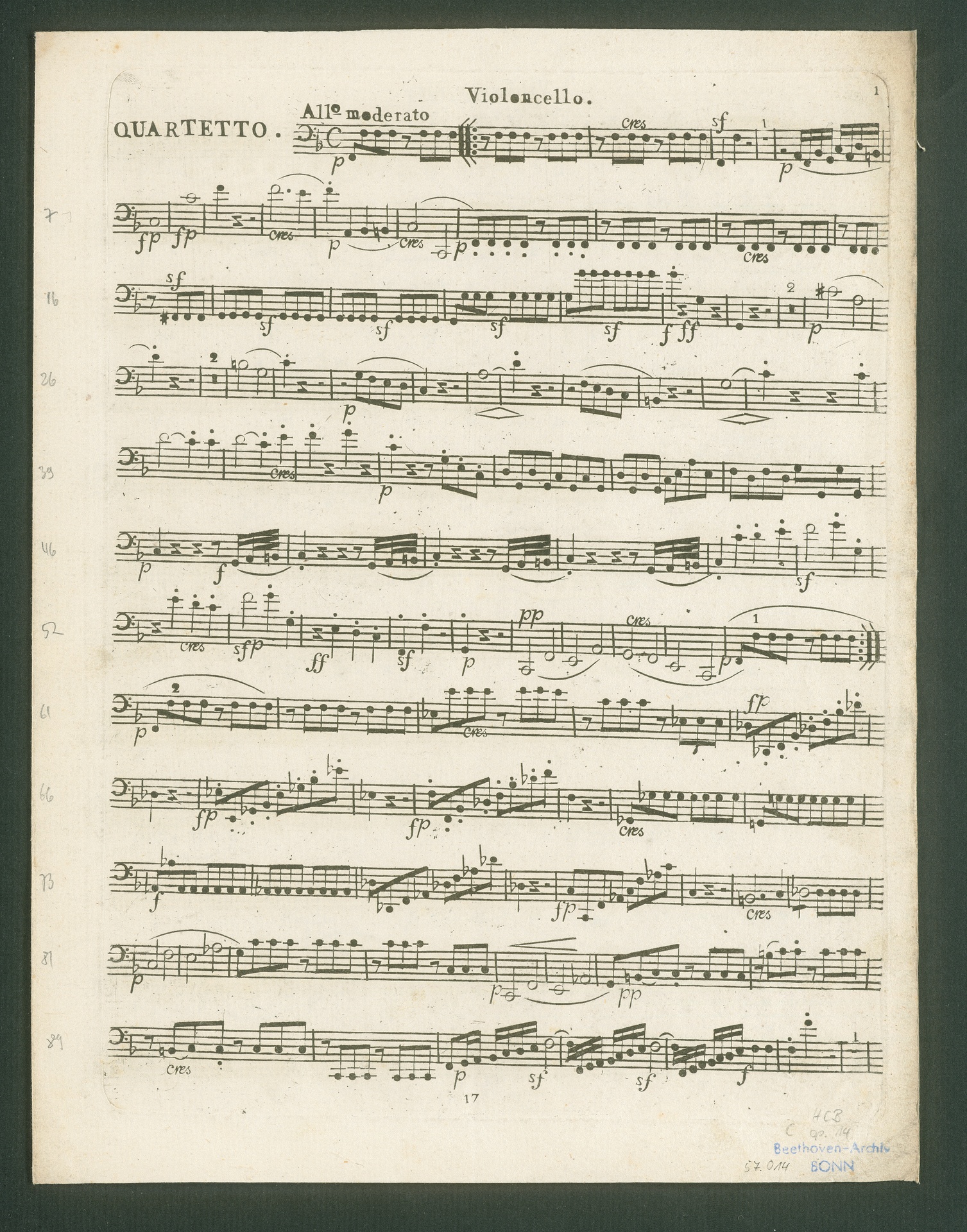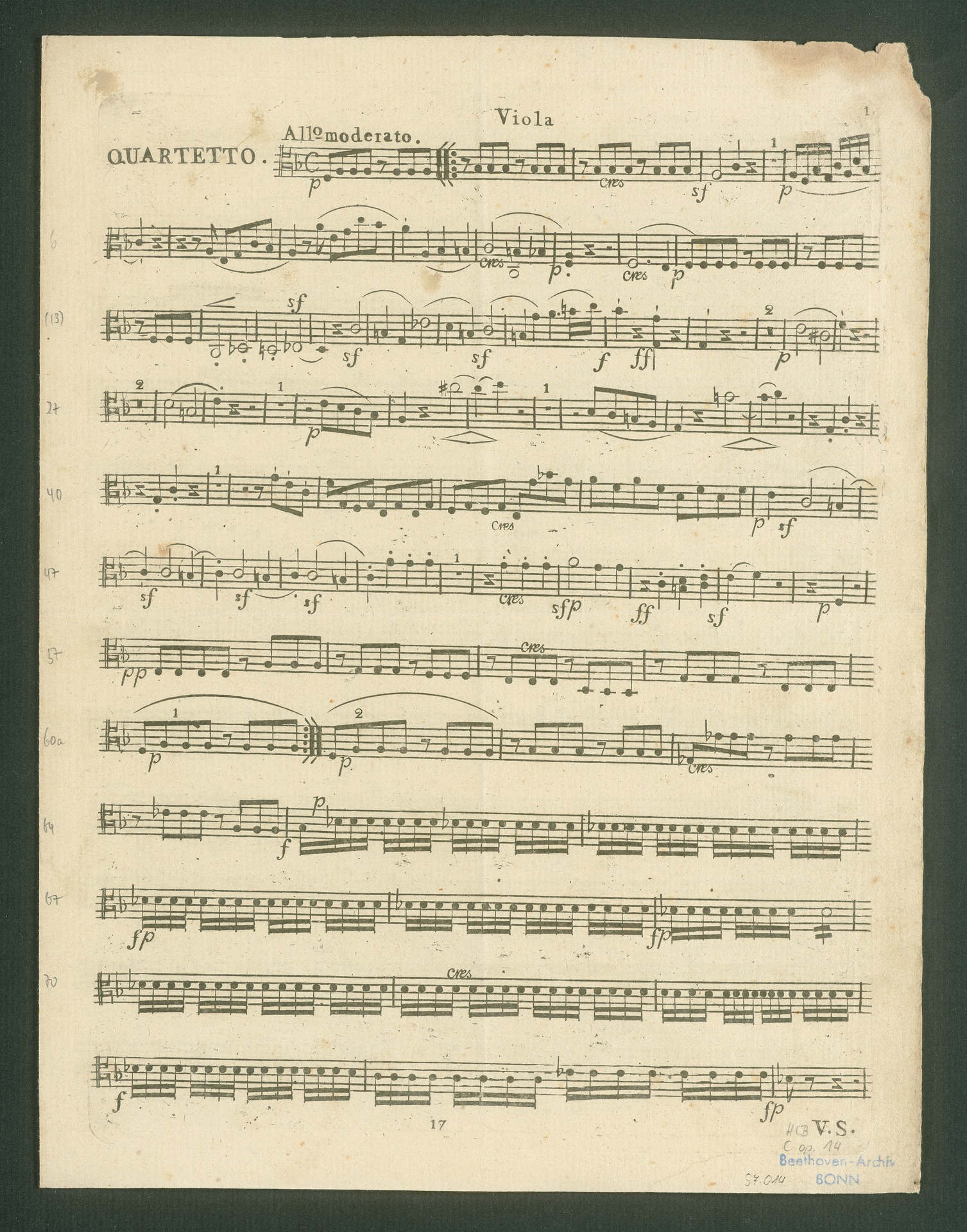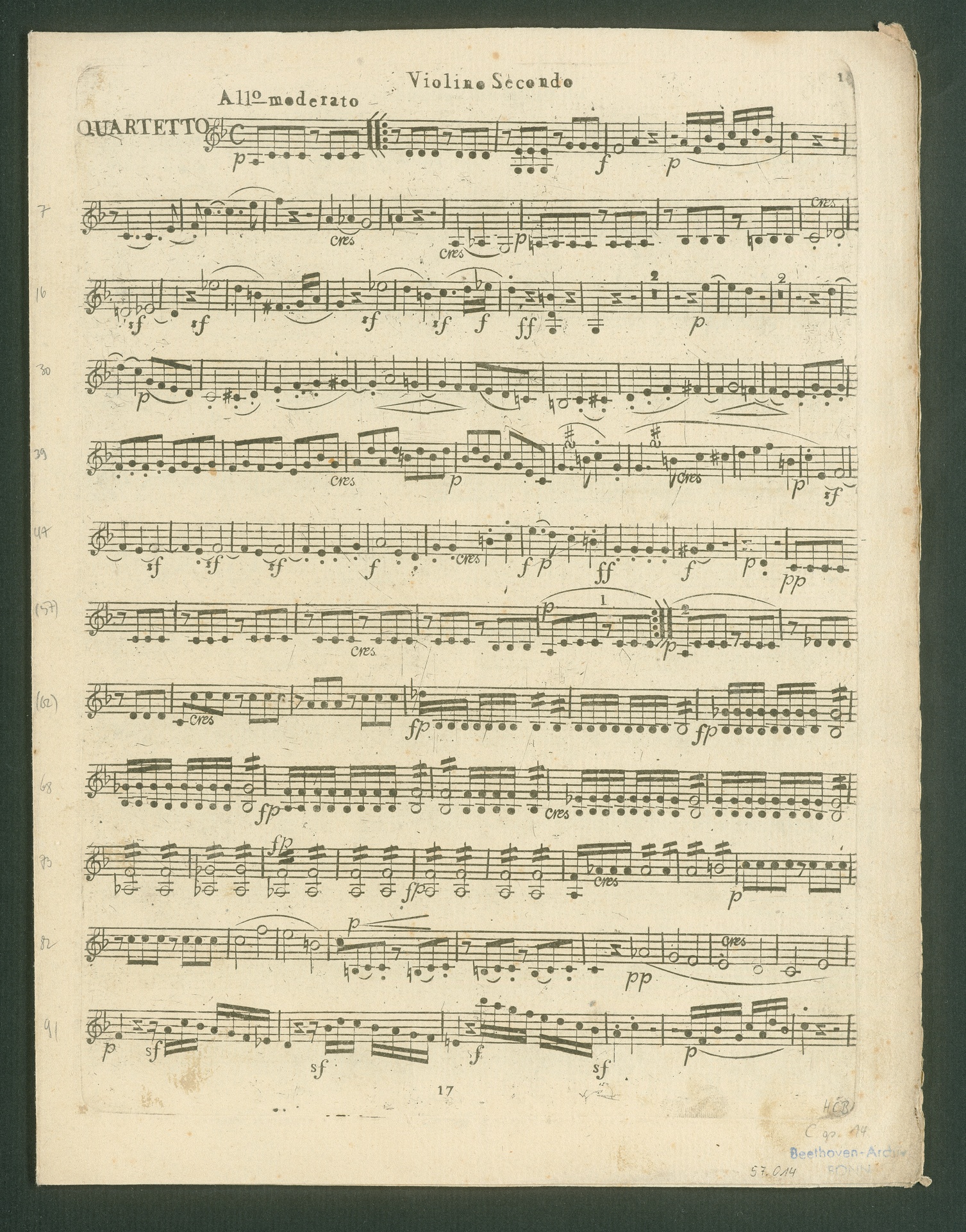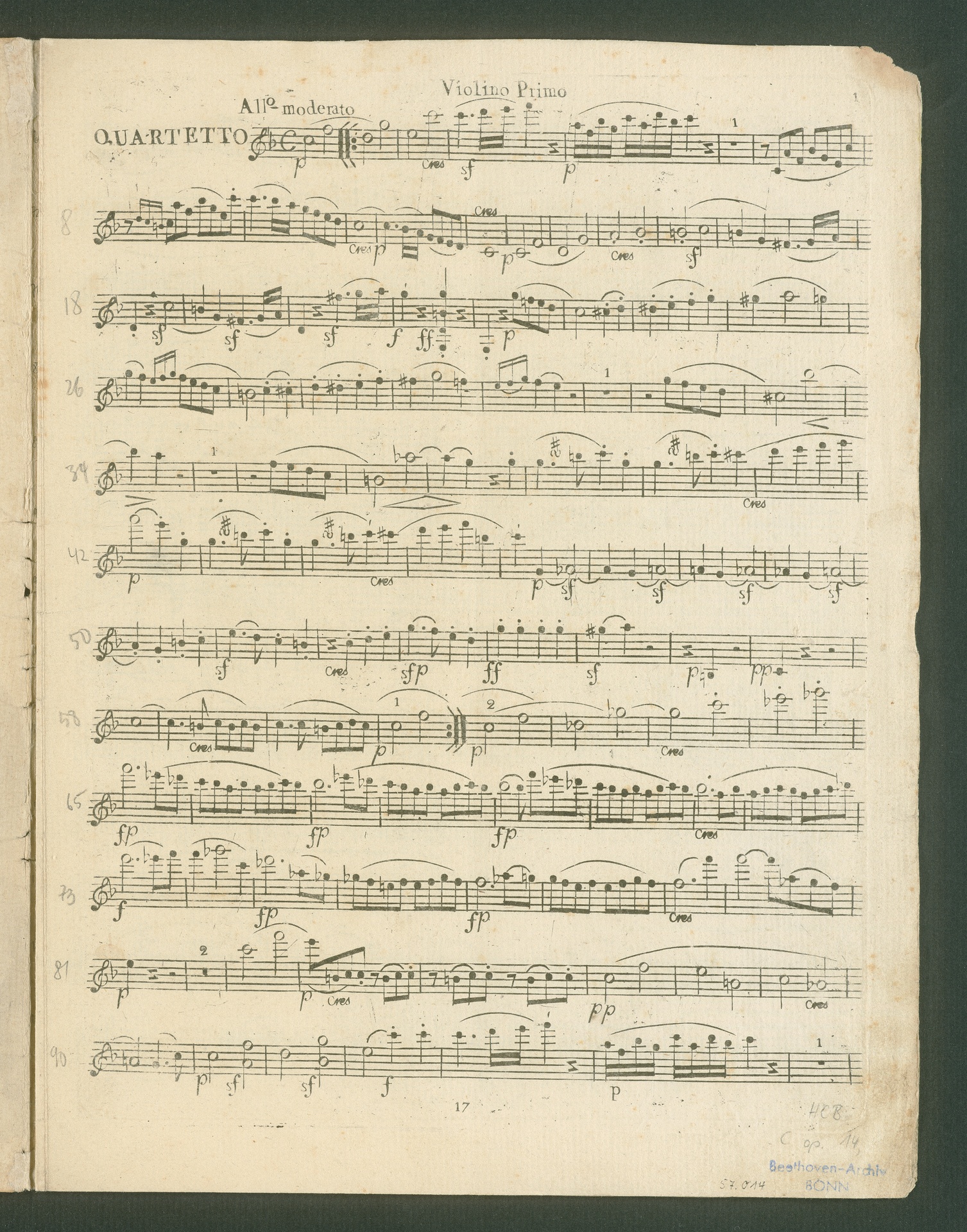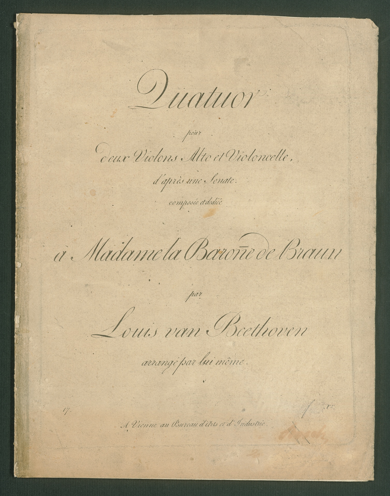 Ludwig van Beethoven, Sonate für Klavier (E-Dur) op. 14, 1, Fassung für 2 Violinen, Viola, Violoncello, Stimmen, Bureau des Arts et d'Industrie, 17