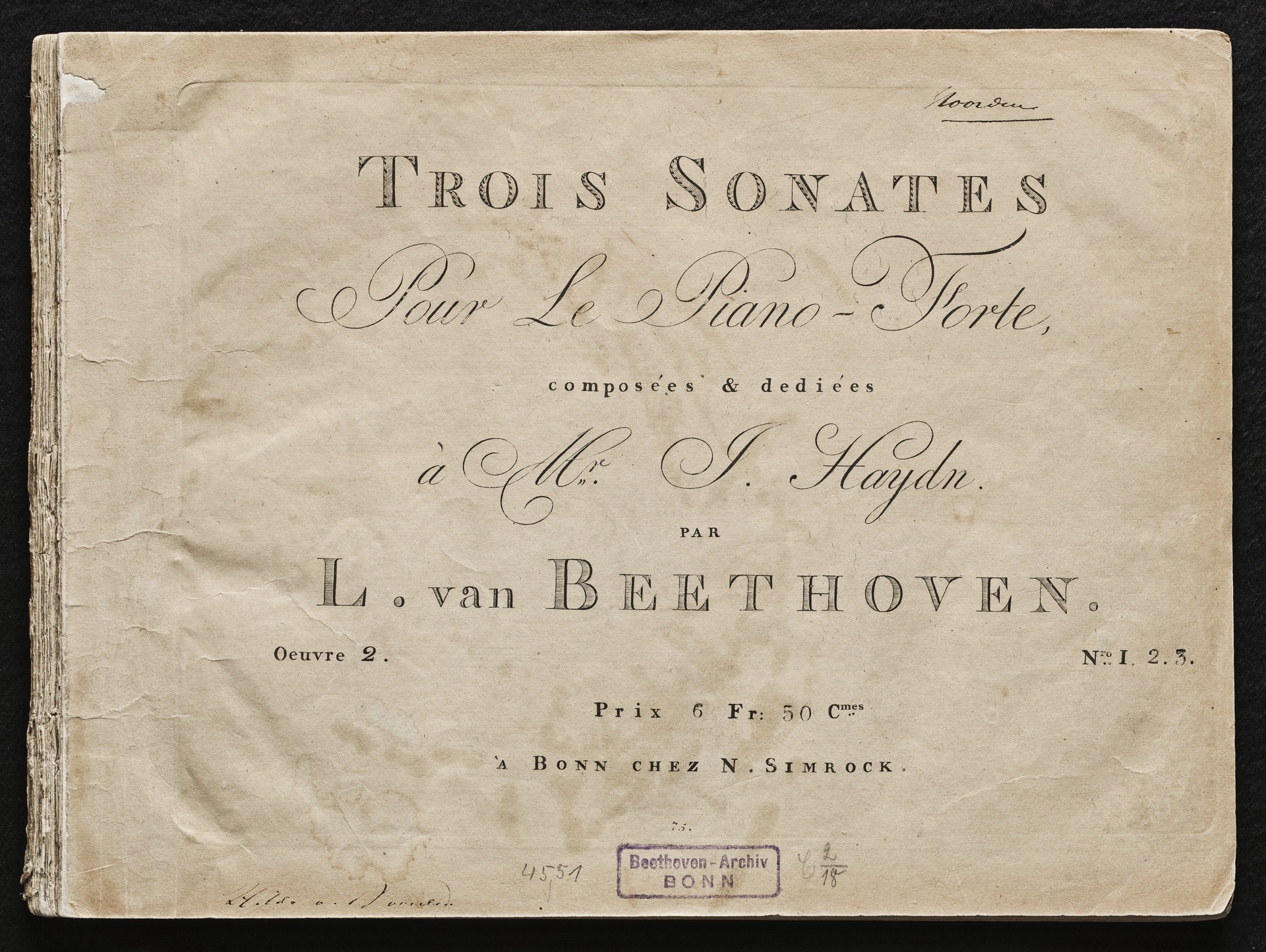 Ludwig van Beethoven, Sonaten für Klavier (f-Moll, A-Dur, C-Dur) op. 2, 1-3, Simrock 75