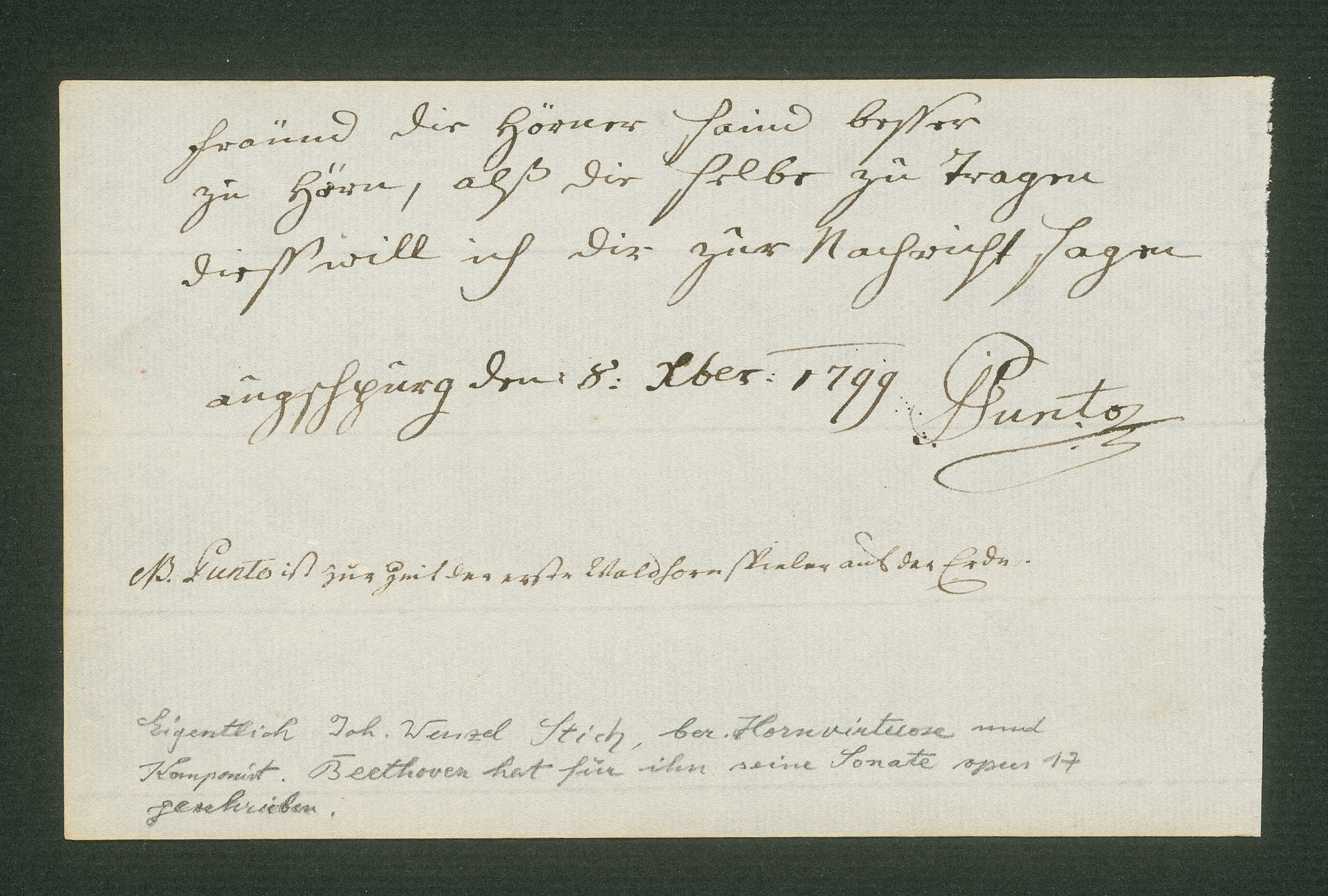 Giovanni Punto, Stammbuchblatt, Augsburg, 8. Dezember 1799, Autograph
