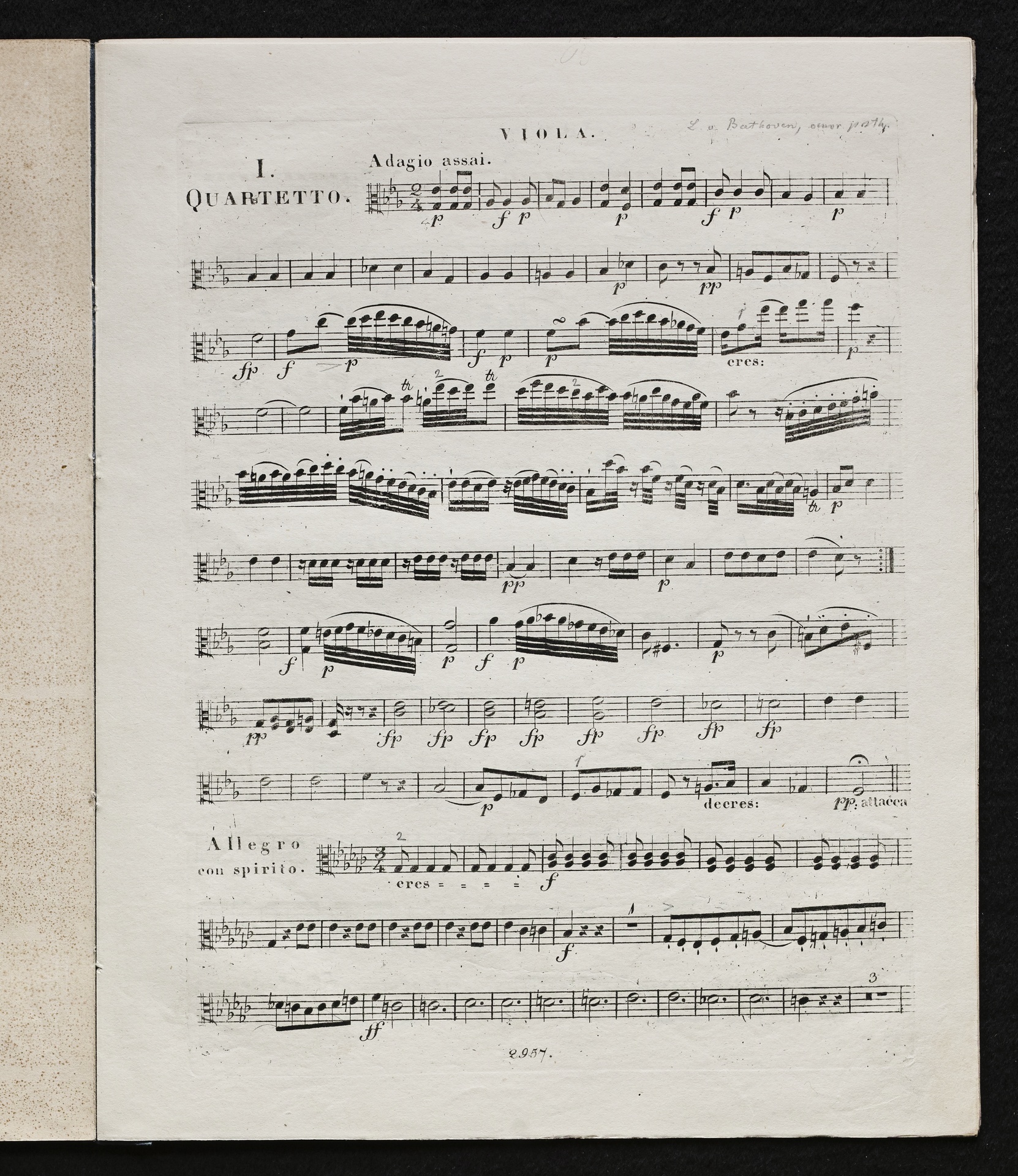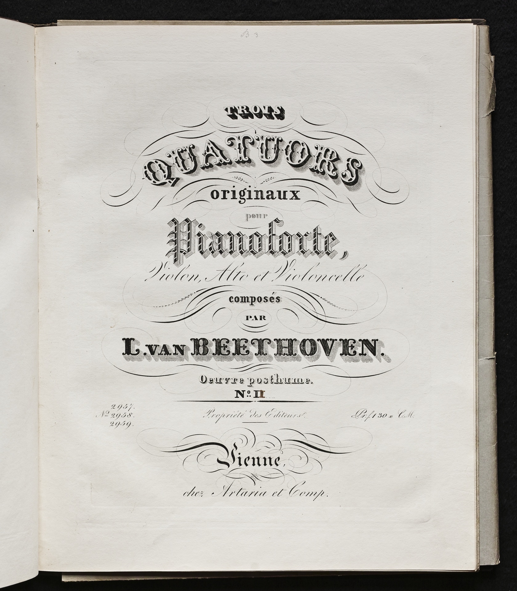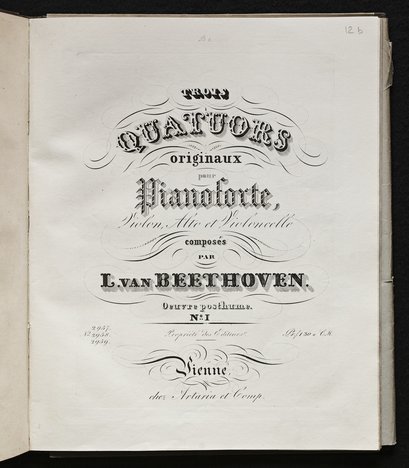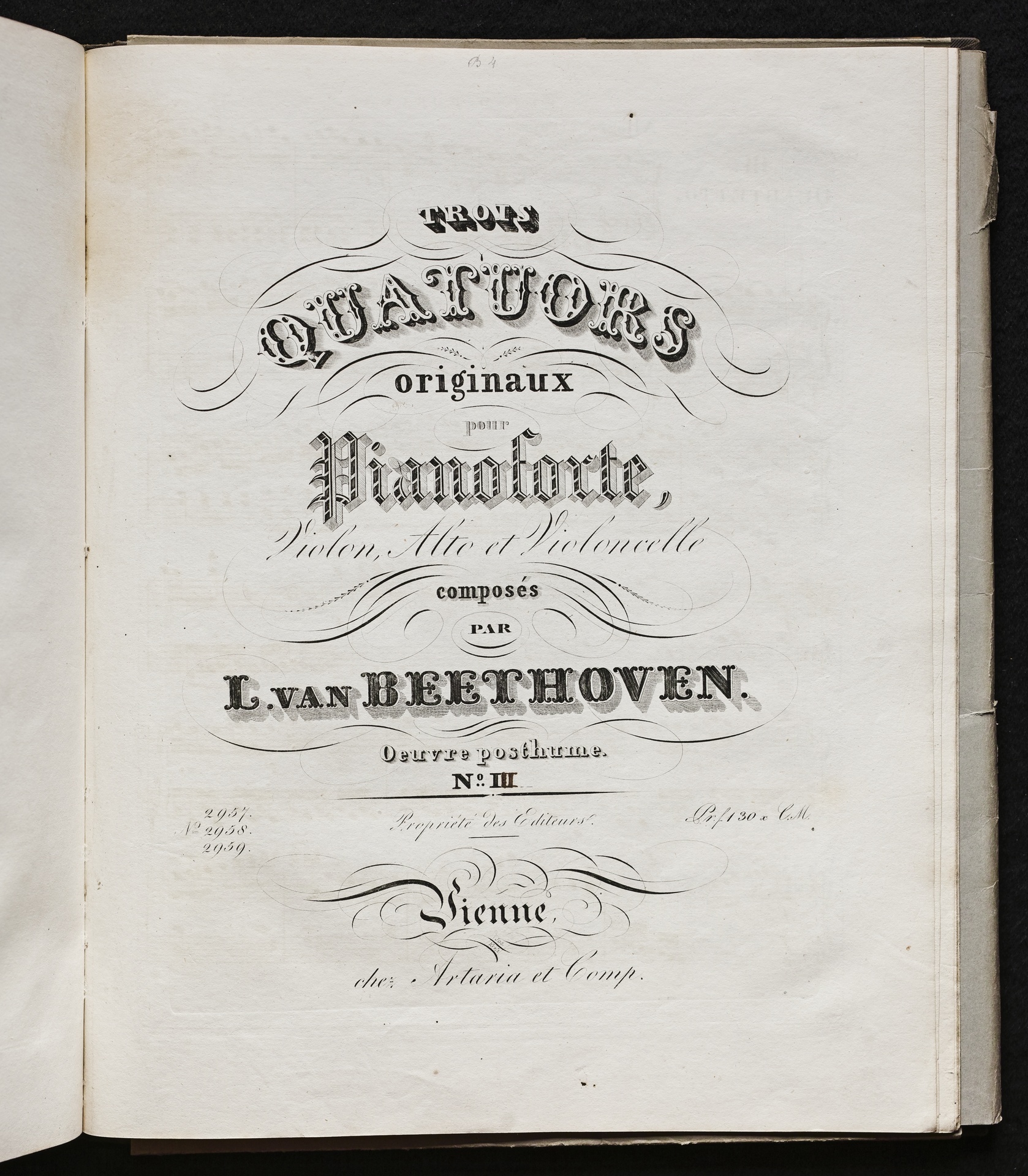Ludwig van Beethoven, Quartette für Klavier, Violine, Viola, Violoncello (Es-Dur, D-Dur, C-Dur) WoO 36, 1-3, Stimmen, Artaria, 2957-2959