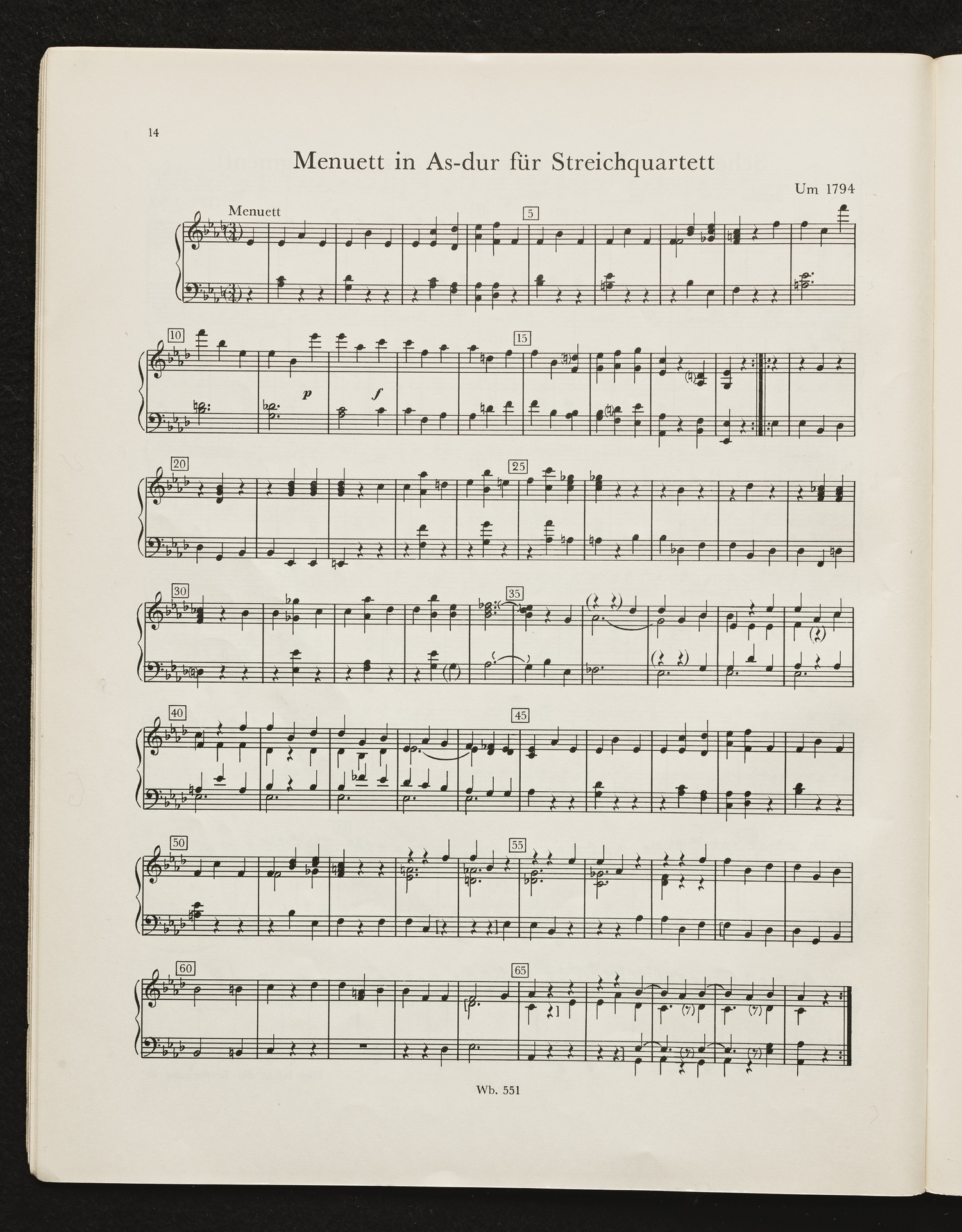 Ludwig van Beethoven, Menuett für zwei Violinen, Viola und Violoncello (As-Dur) WoO 209, Fassung für Klavier, Breitkopf und Härtel, 551