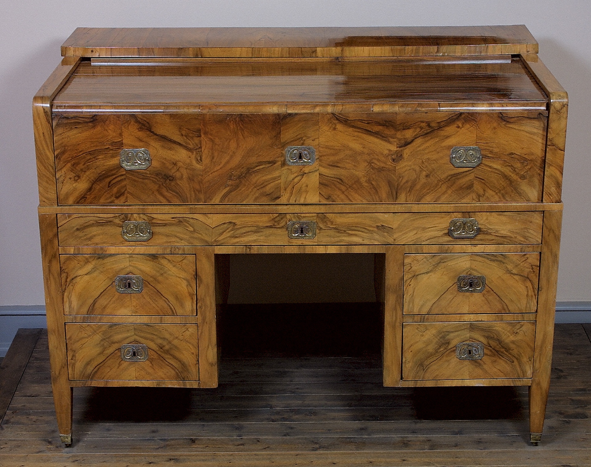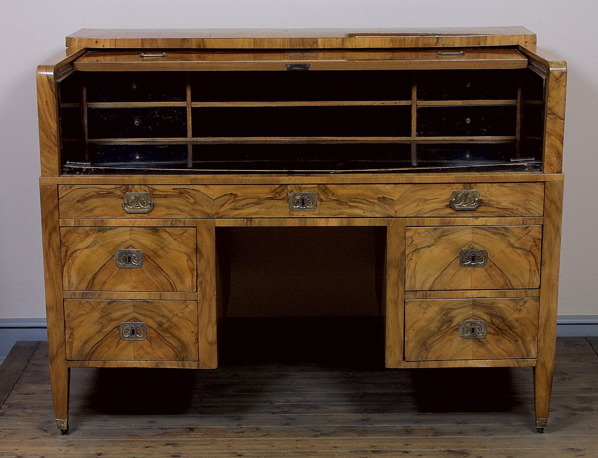 This big desk from the estate of Ludwig van Beethoven originates from the composer's last apartment in the "House of the Black-robed Spaniards". According to Gerhard von Breuning's memories of his youth, which he published in 1874, this piece of furniture was standing in the so-called "notes room". This room was a small room next to the apartment, where Beethoven kept his drafts, his notes and sketches. The room was a total chaos.