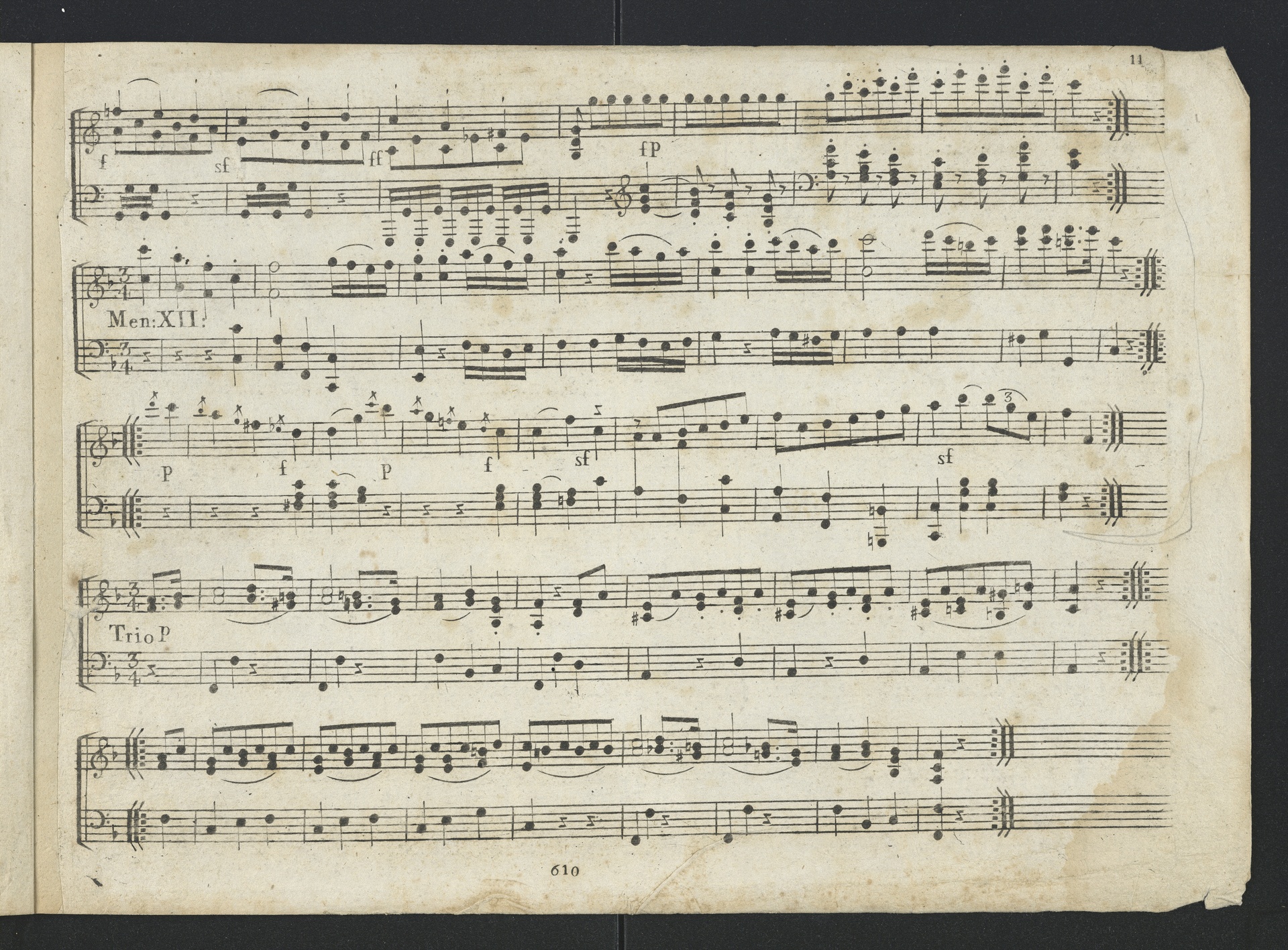 Ludwig van Beethoven, Menuette für Orchester WoO 7, 1-12, Fassung für Klavier, Artaria, 610