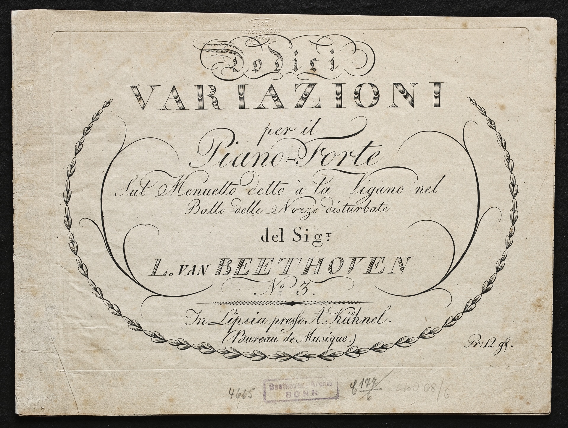 Ludwig van Beethoven, Variationen über das "Menuett à la Viganò" aus dem Ballett "Le nozze disturbate" von Jakob Haibel für Klavier (C-Dur) WoO 68, Kühnel, 791