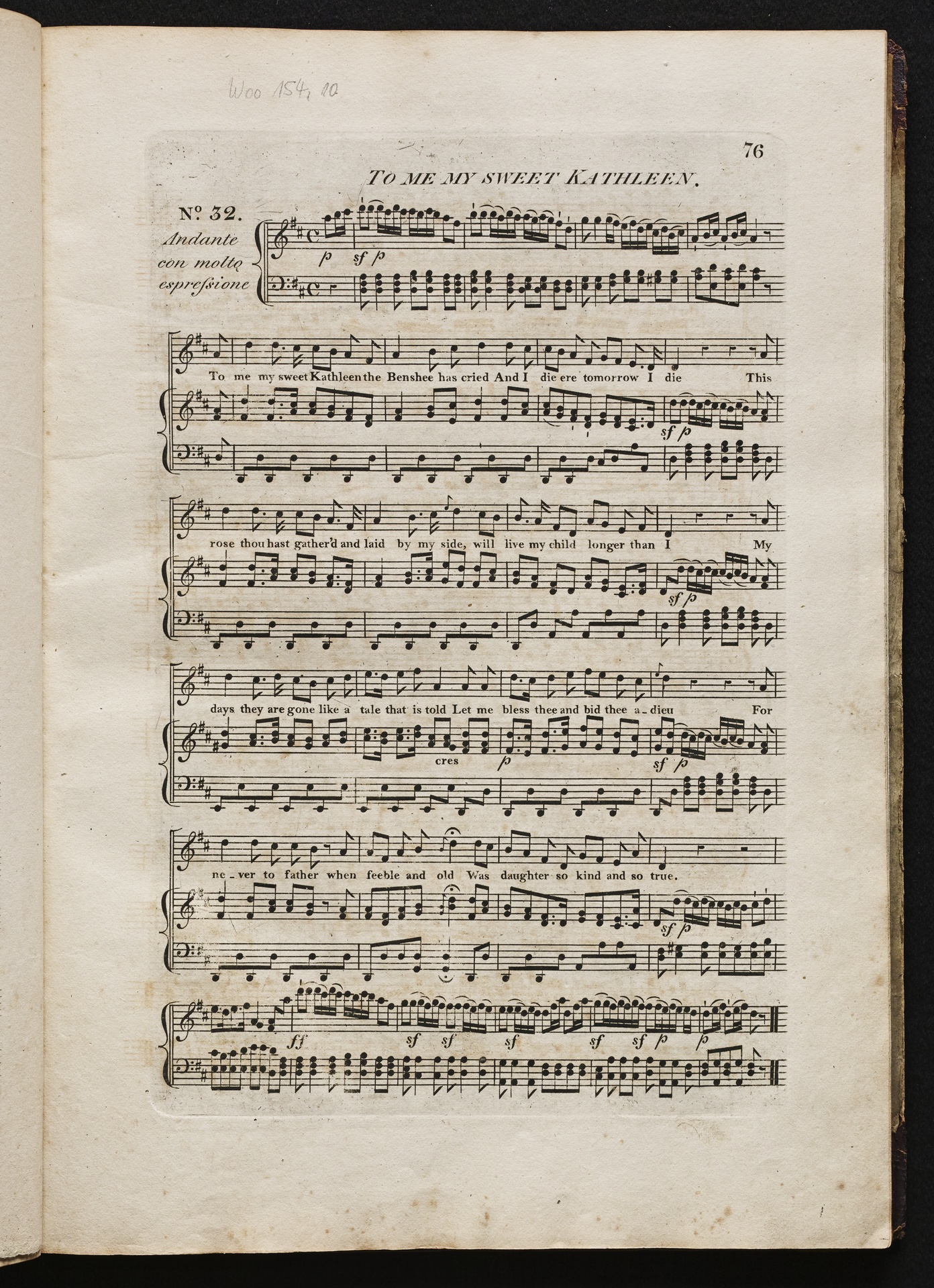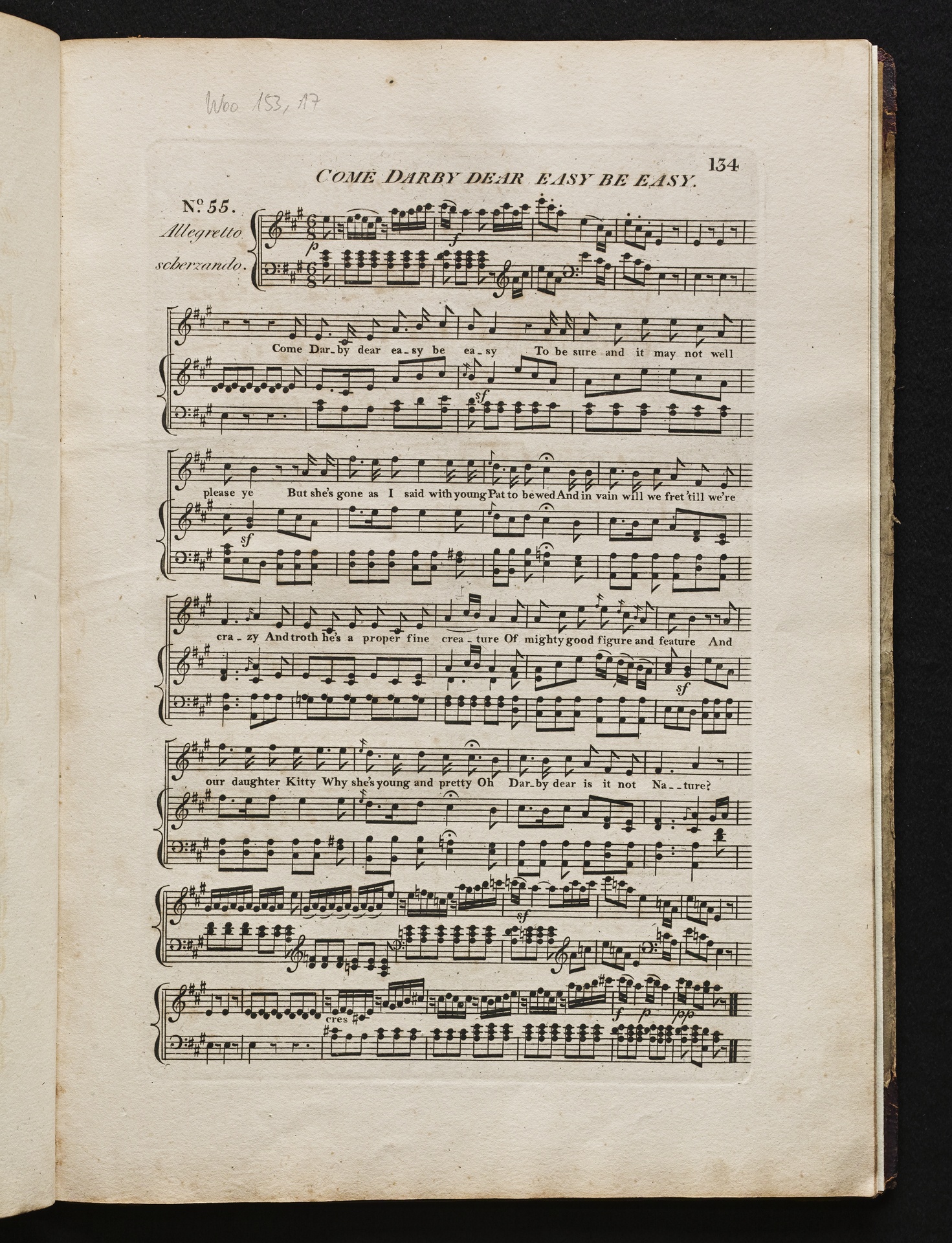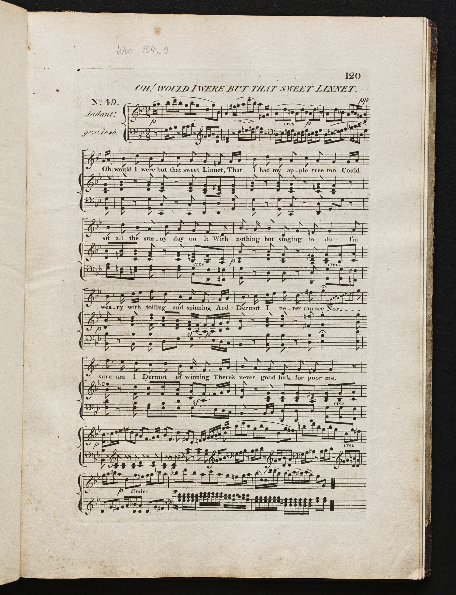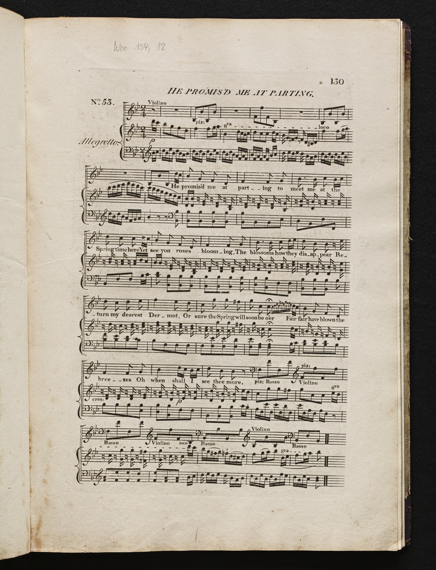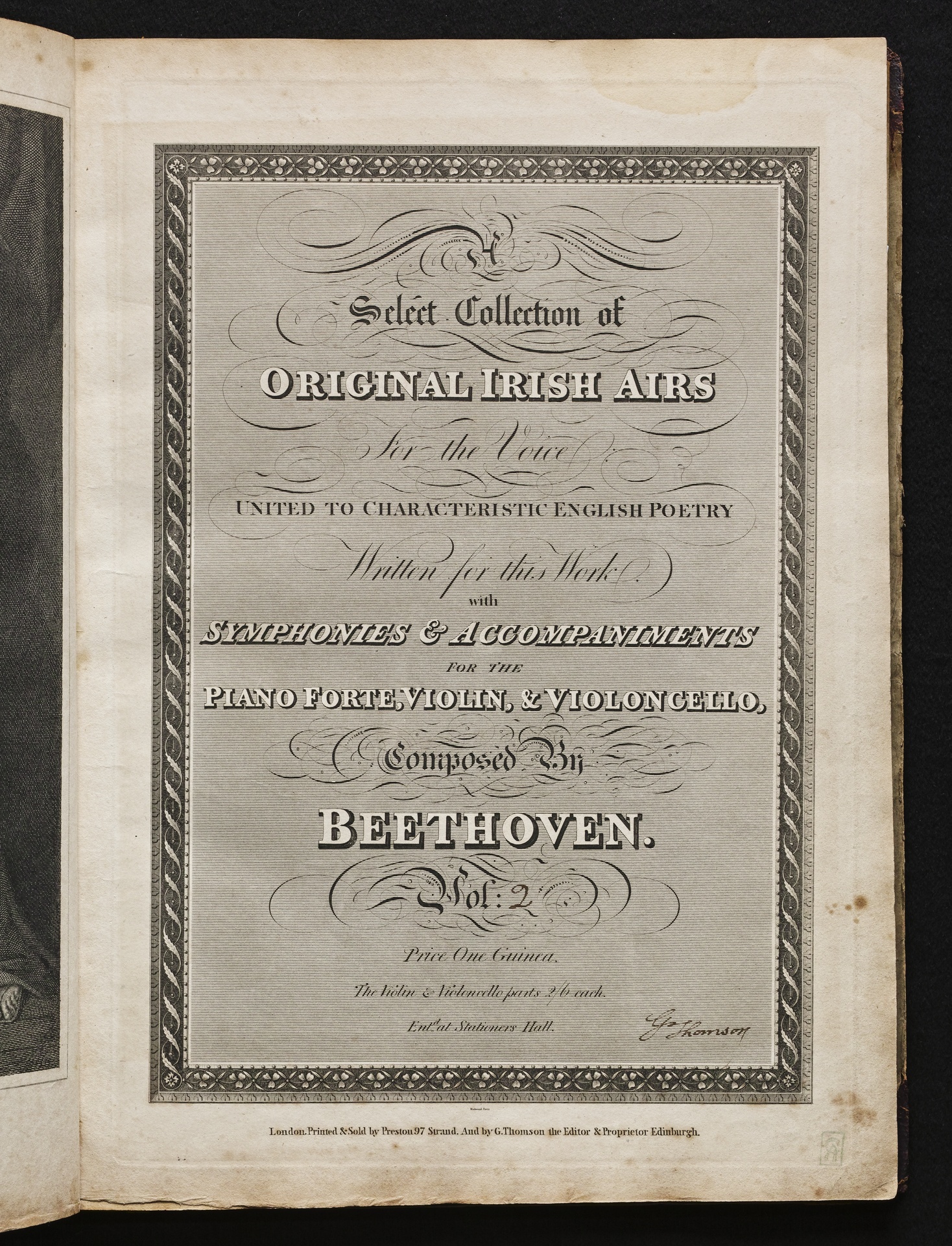 Ludwig van Beethoven, "Irische Lieder" für eine oder mehrere Singstimmen, Violine, Violoncello und Klavier, WoO 153, Klavierpartitur, Thomson