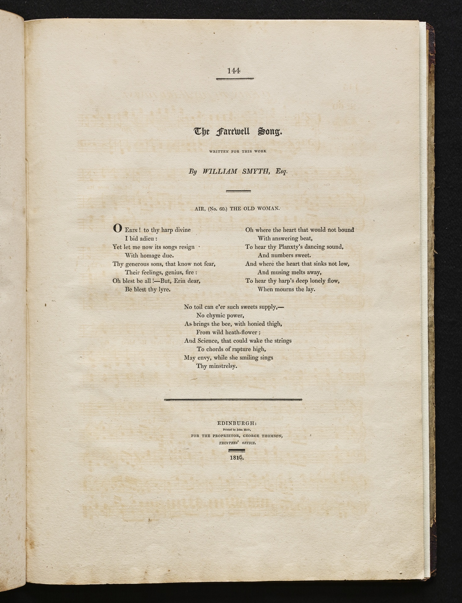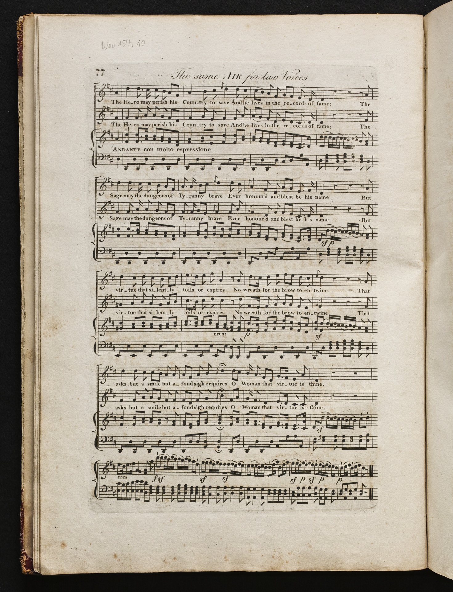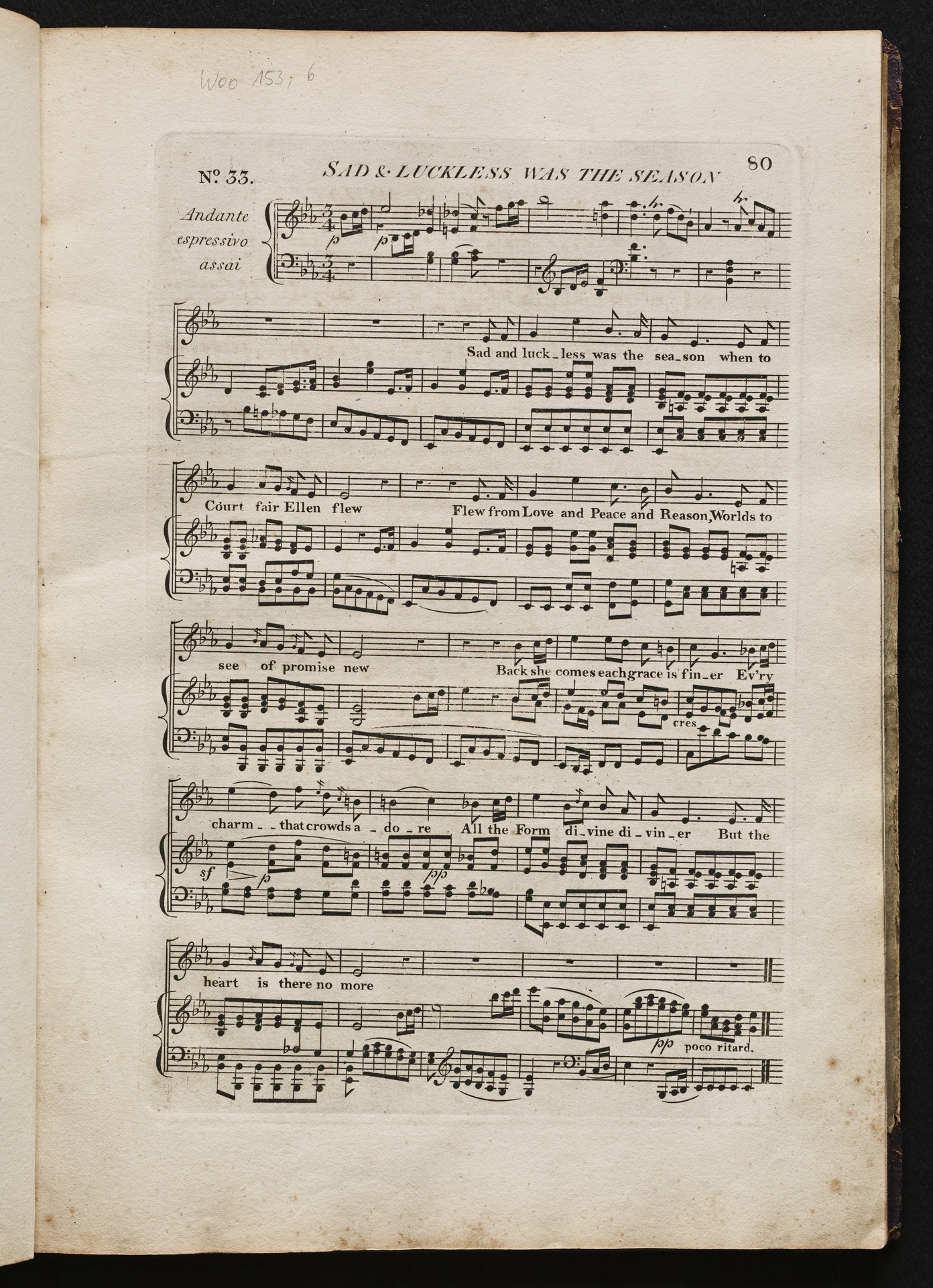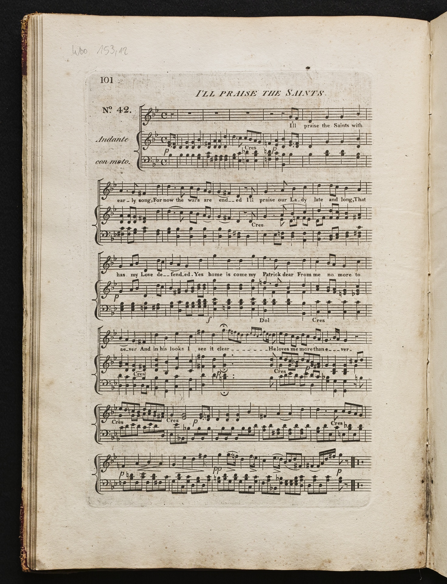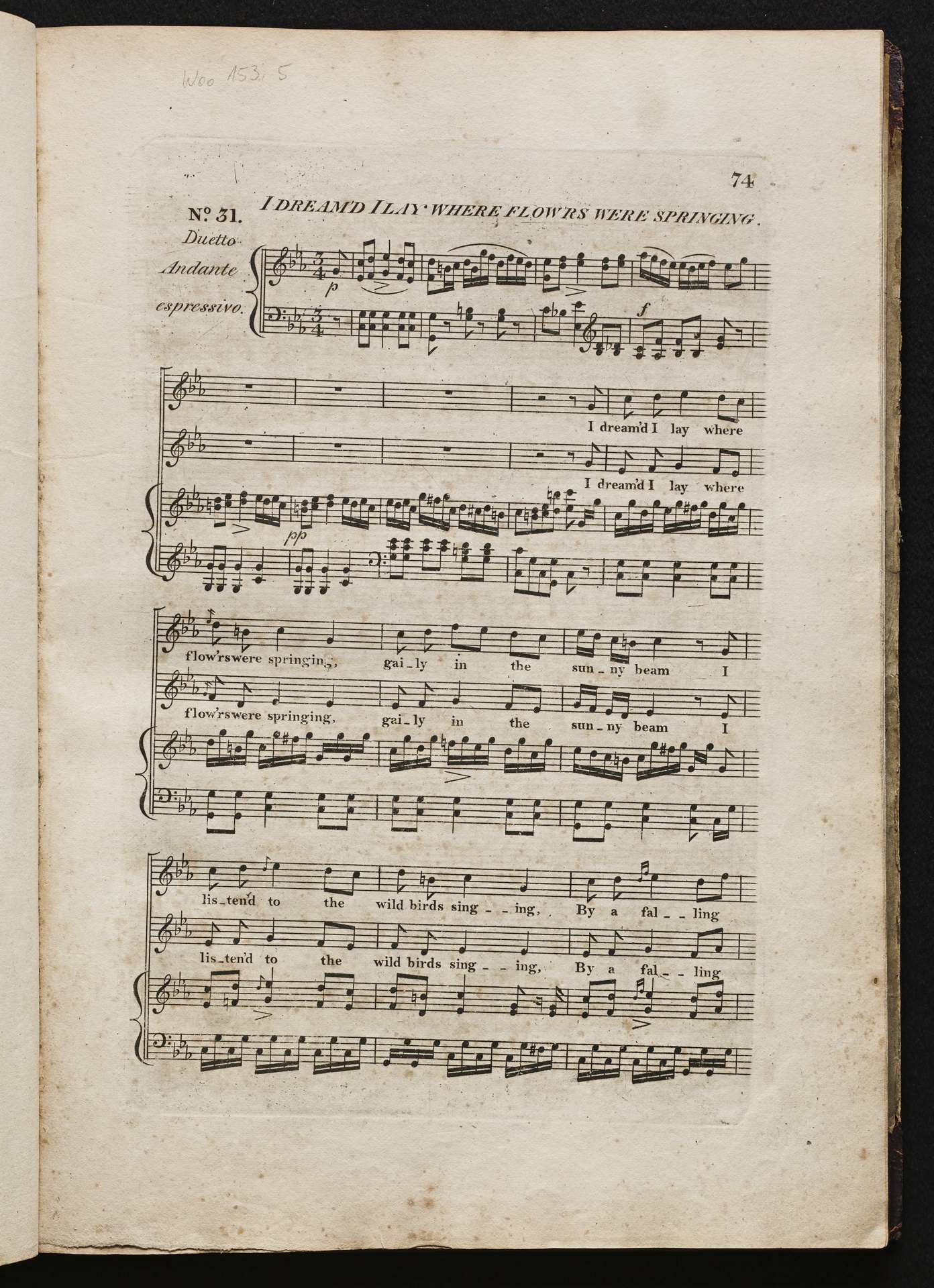 Ludwig van Beethoven, "Irische Lieder" für eine oder mehrere Singstimmen, Violine, Violoncello und Klavier, WoO 153, Klavierpartitur, Thomson