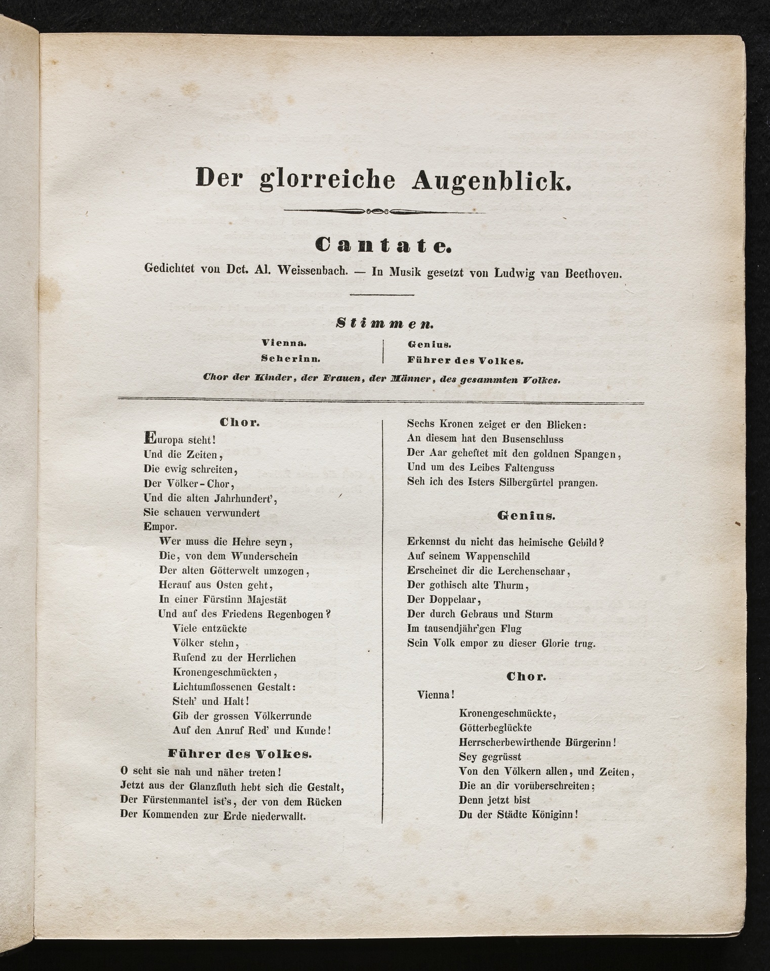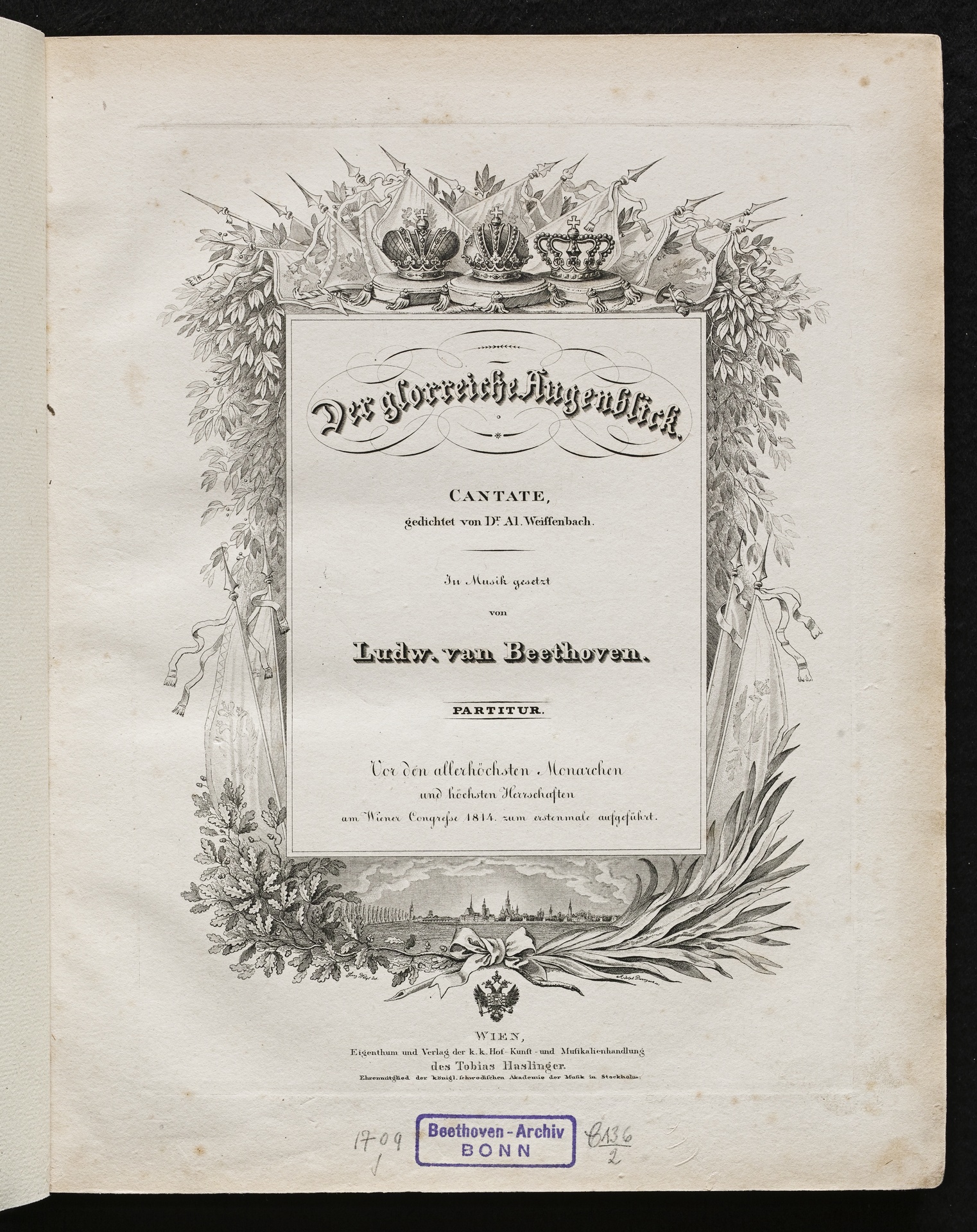 Ludwig van BeethovenAloys Weißenbach, "Der glorreiche Augenblick", Kantate für 4 Solostimmen, Chor und Orchester op. 136, Partitur, Haslinger, 6801