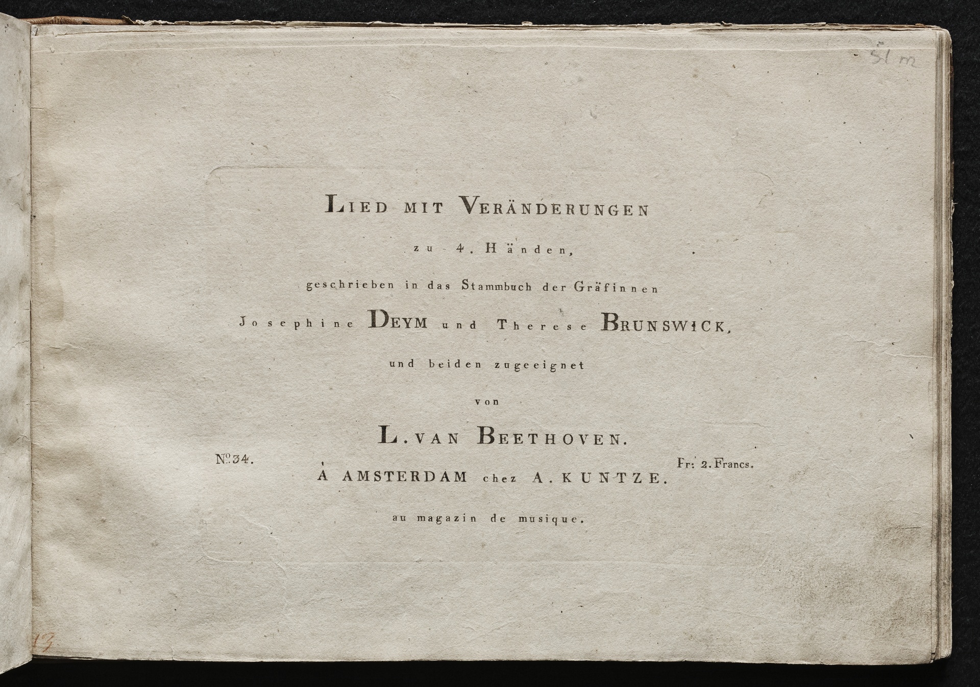 Ludwig van Beethoven, "Ich denke dein", Lied für Singstimme und Klavier zu 4 Händen und Variationen für Klavier zu 4 Händen (D-Dur) WoO 74, Kuntze, 34