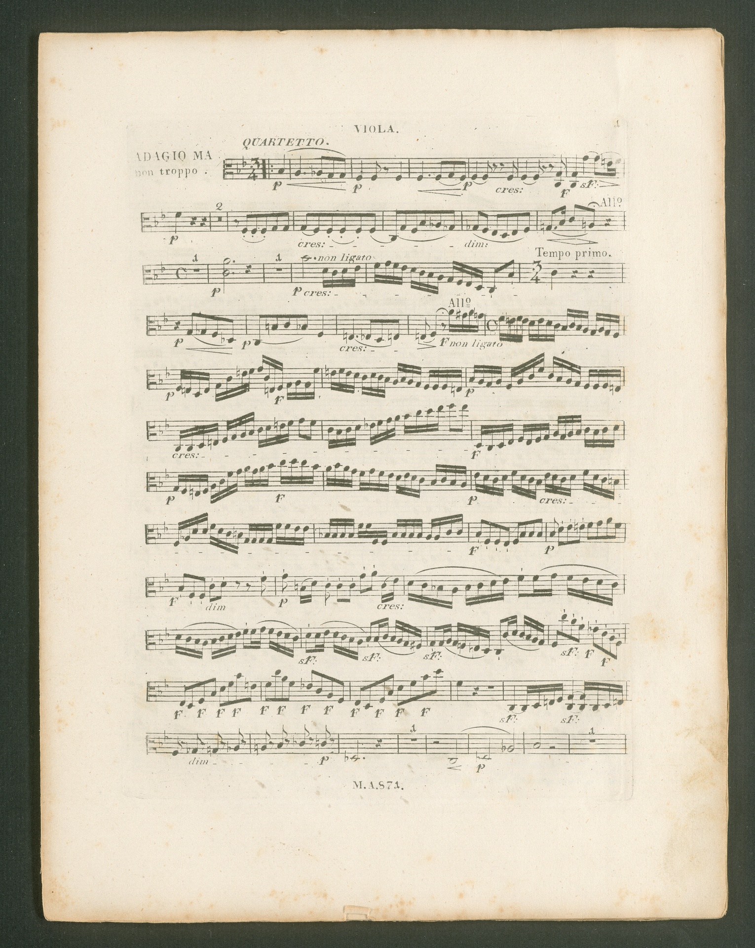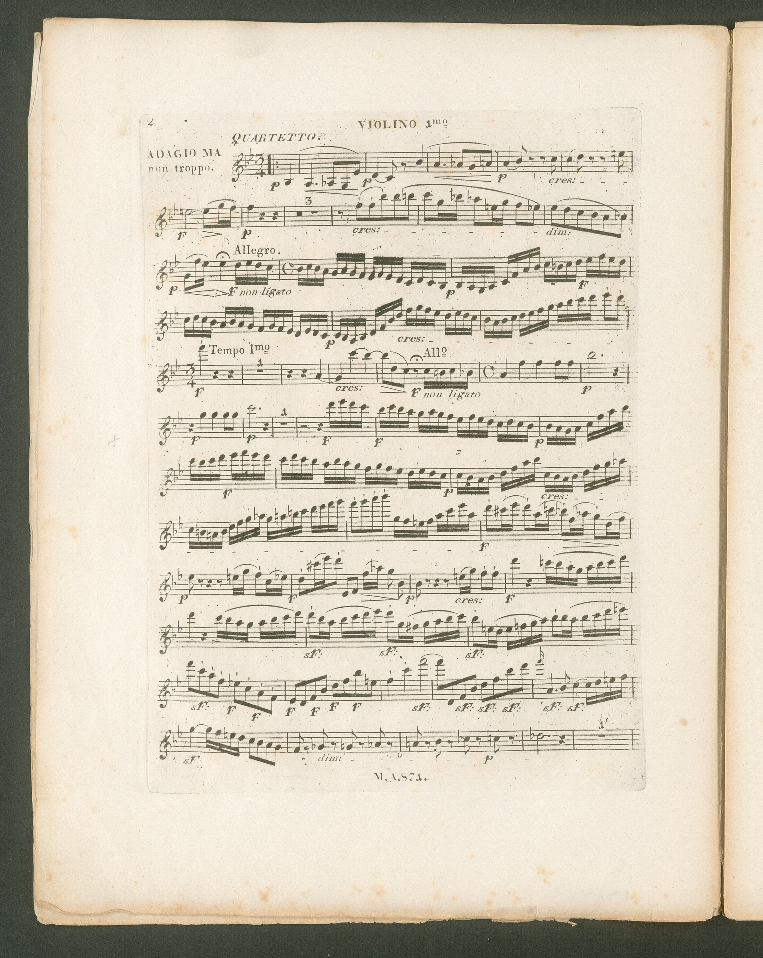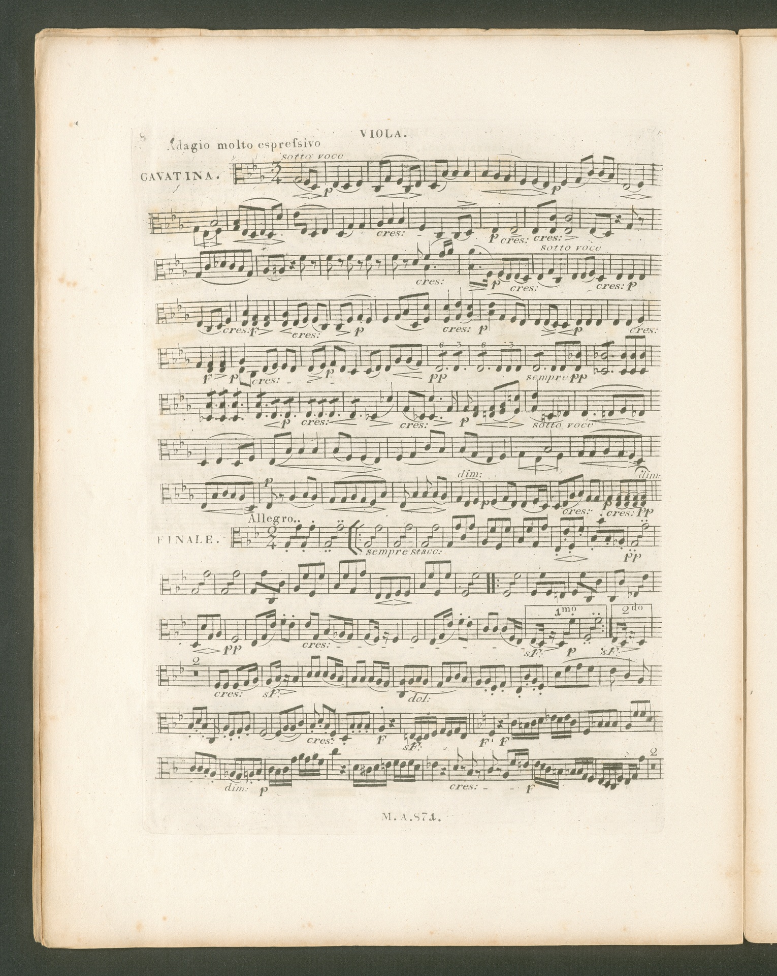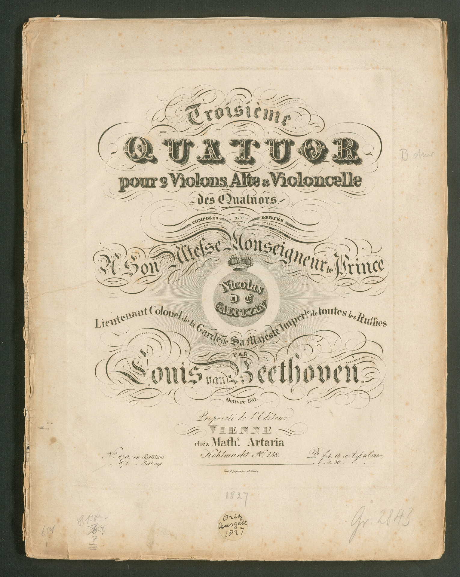 Ludwig van Beethoven, Quartett für 2 Violinen, Viola, Violoncello (B-Dur) op. 130, Stimmen, Artaria, 871