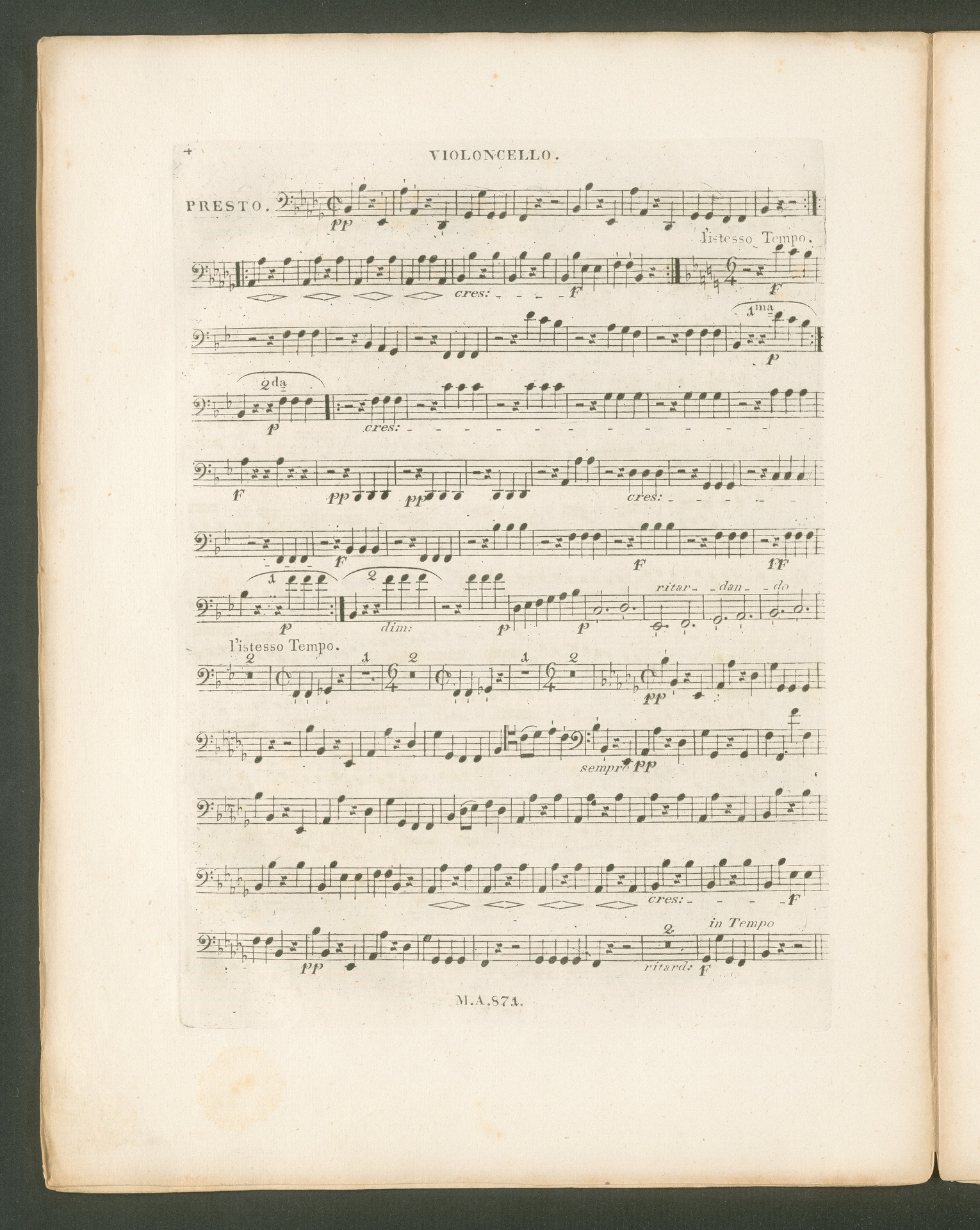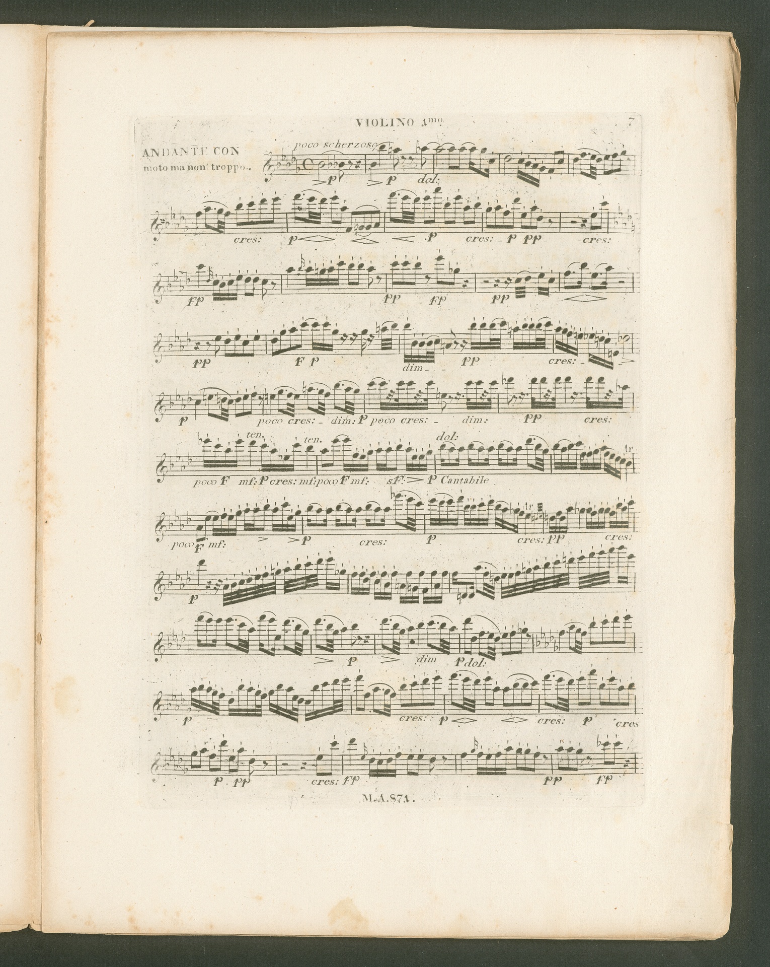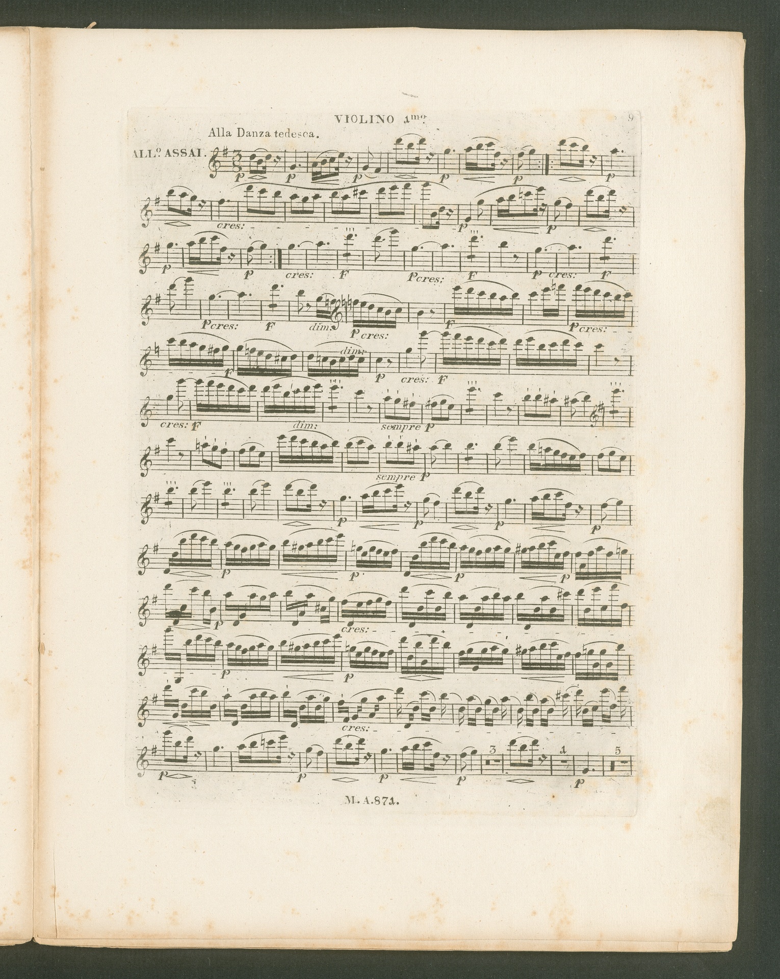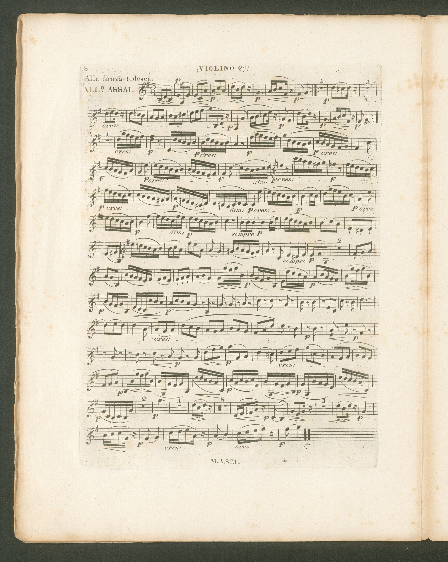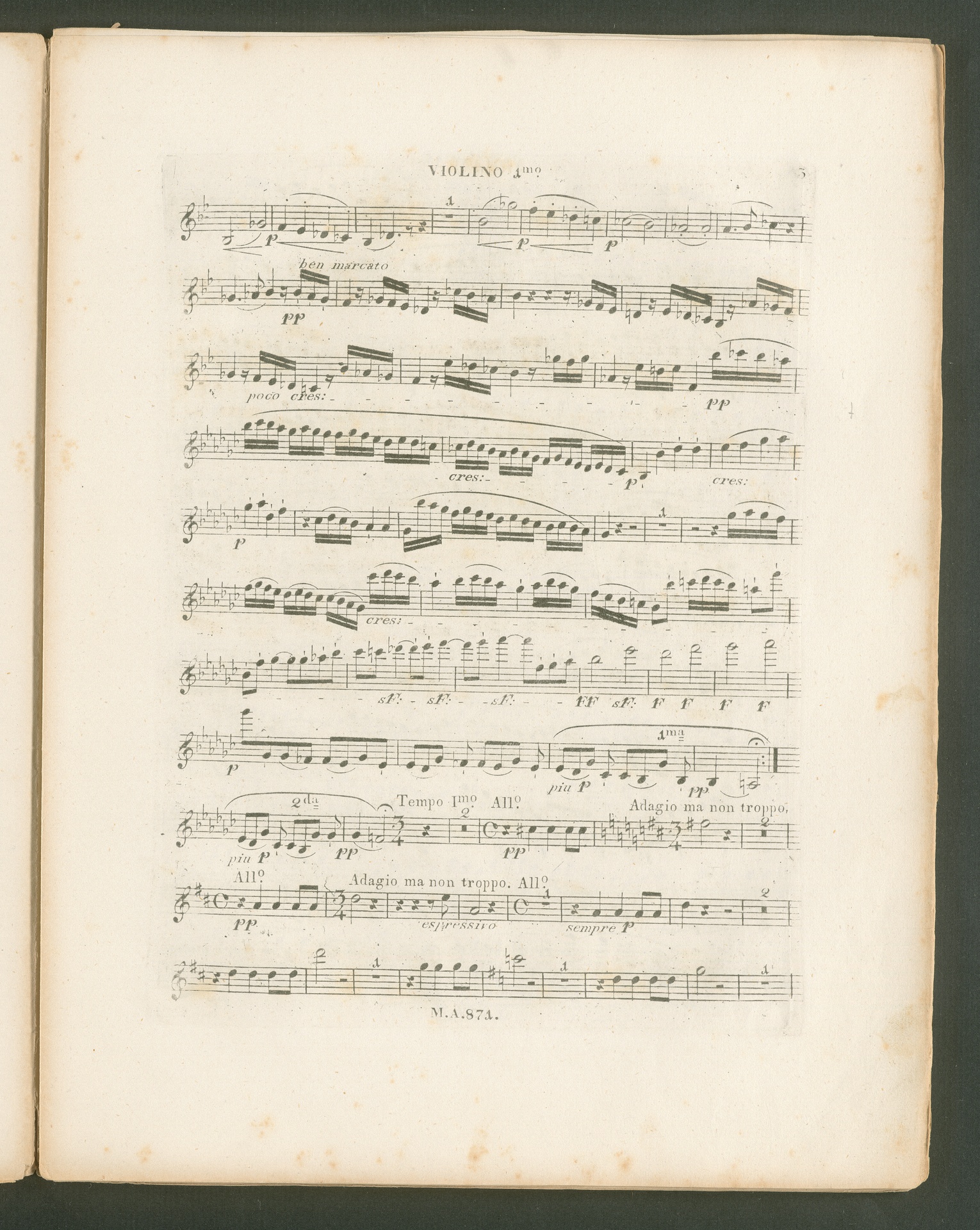 Ludwig van Beethoven, Quartett für 2 Violinen, Viola, Violoncello (B-Dur) op. 130, Stimmen, Artaria, 871