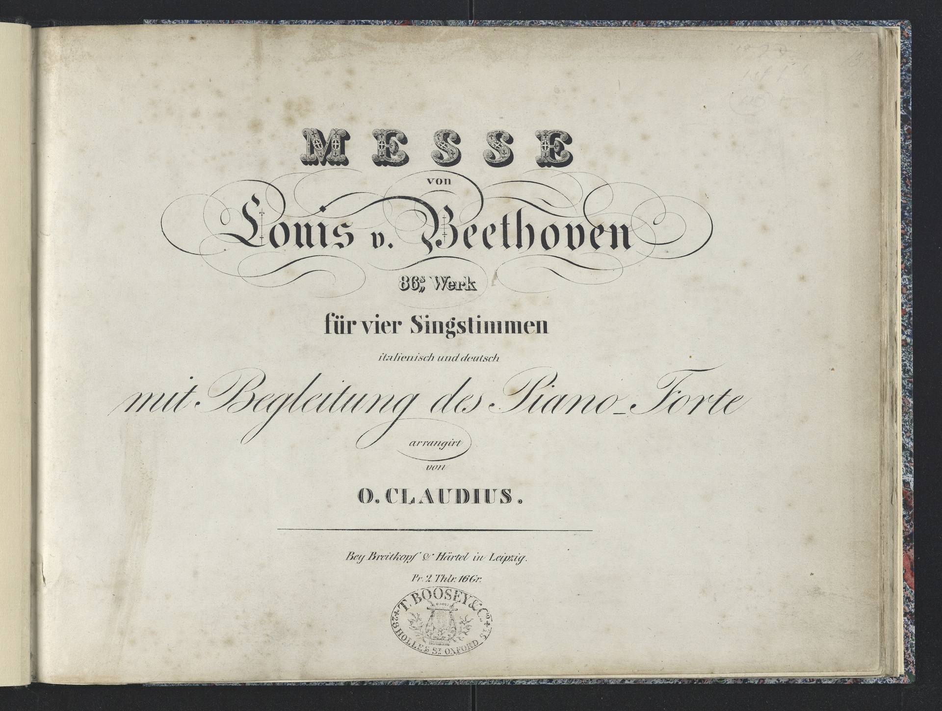 Ludwig van Beethoven, Messe für vier Solostimmen, Chor und Orchester (C-Dur) op. 86, Klavierauszug, Breitkopf und Härtel, 4563
