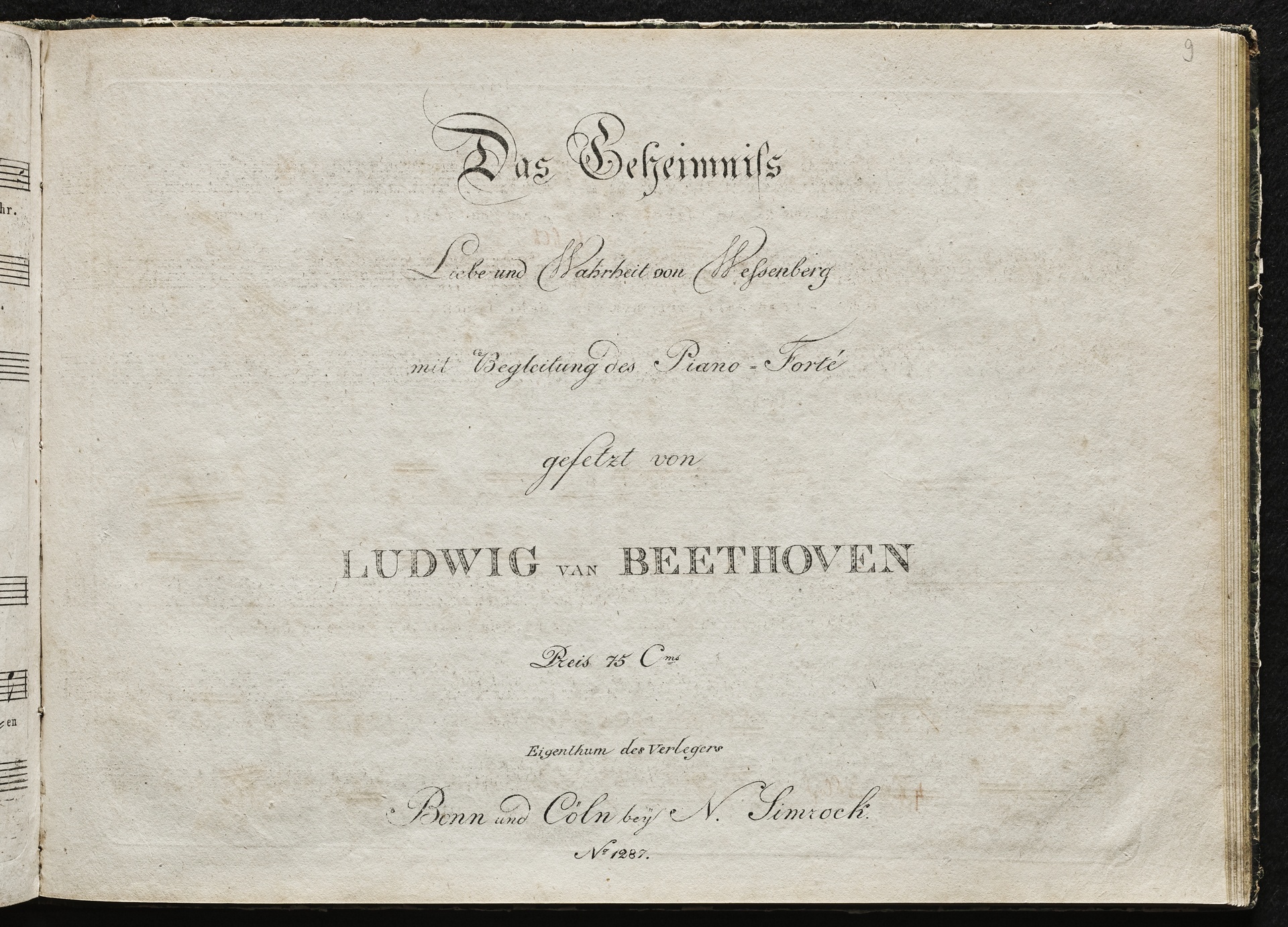 Ludwig van BeethovenIgnaz Heinrich von Wessenberg, "Das Geheimnis", Lied für Singstimme und Klavier WoO 145, Simrock, 1287