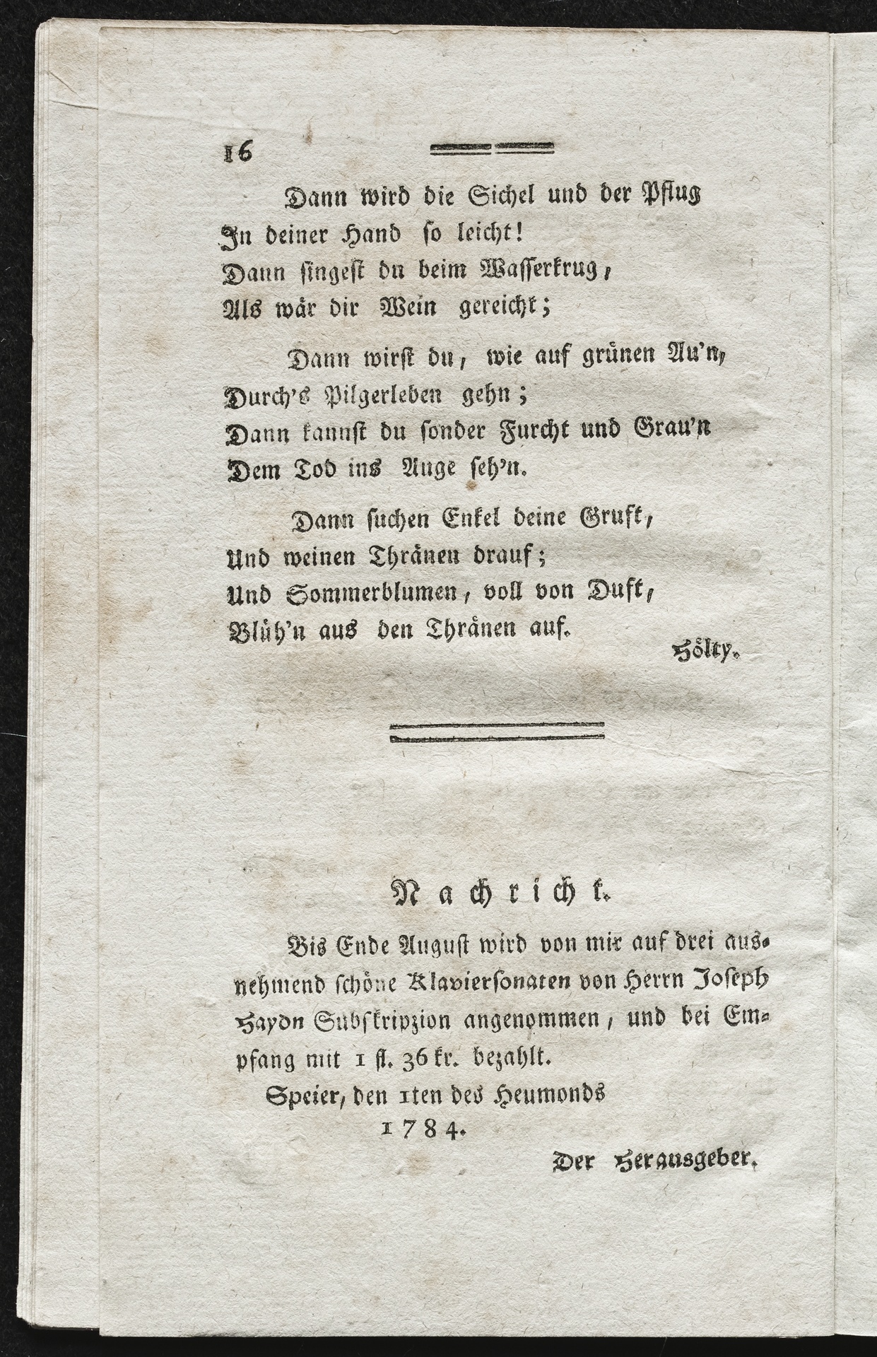 Ludwig van Beethoven, "An einen Säugling", Lied für Singstimme und Klavier WoO 108, Boßler